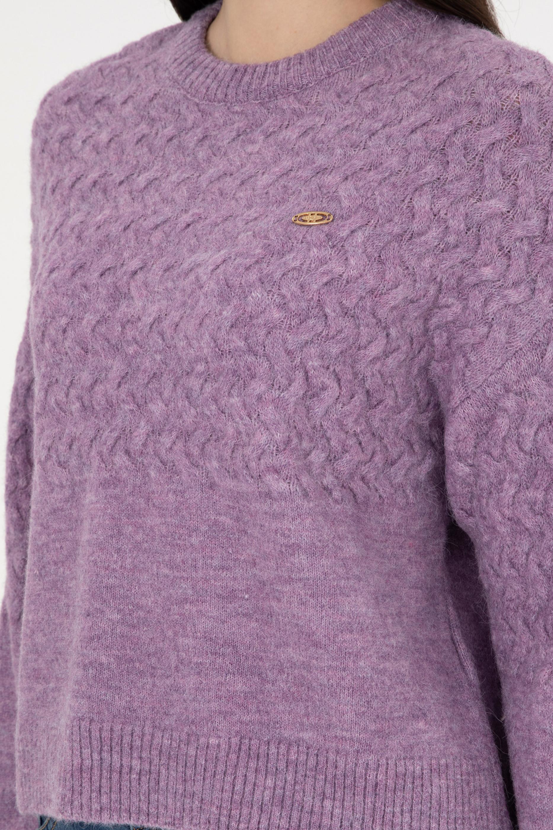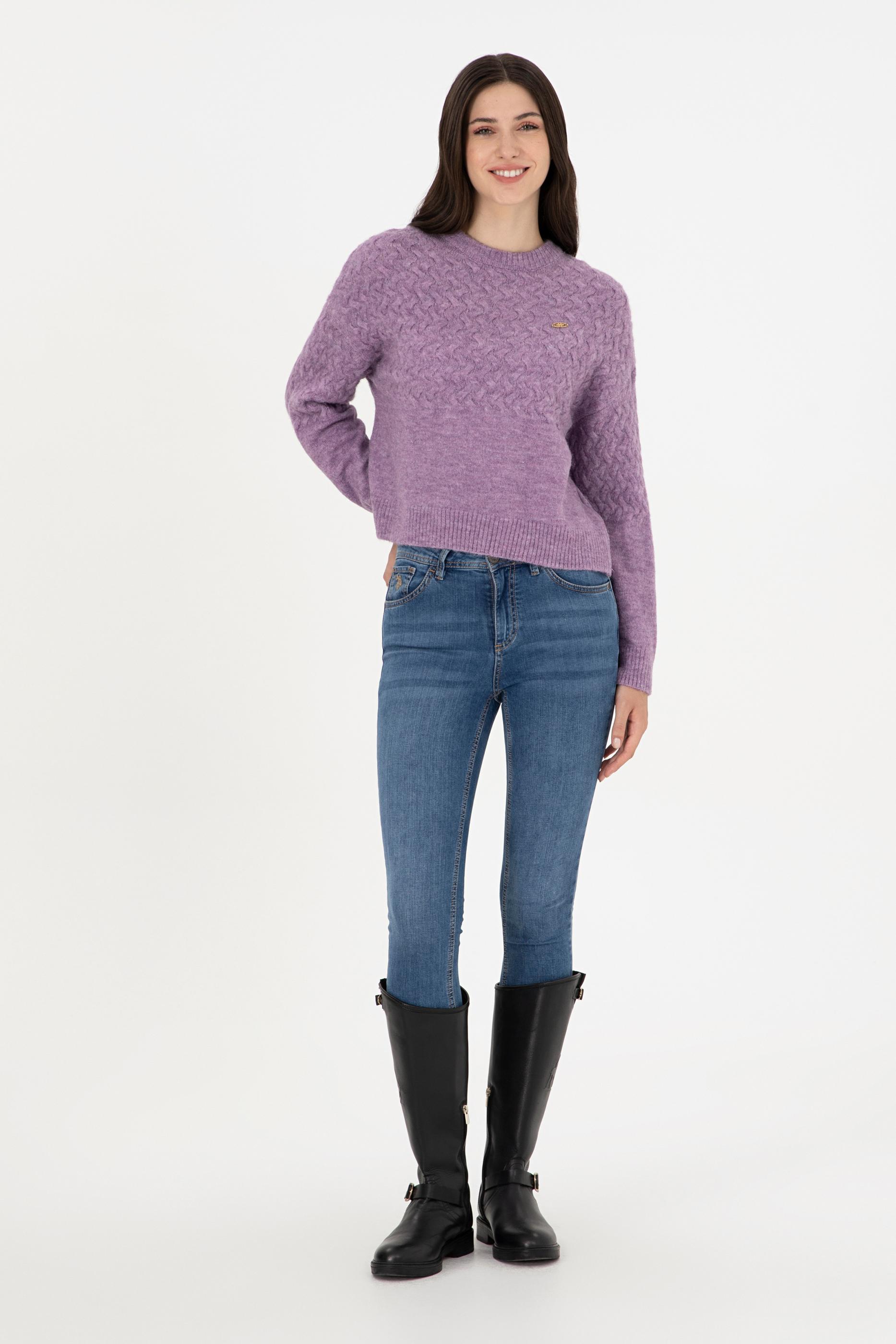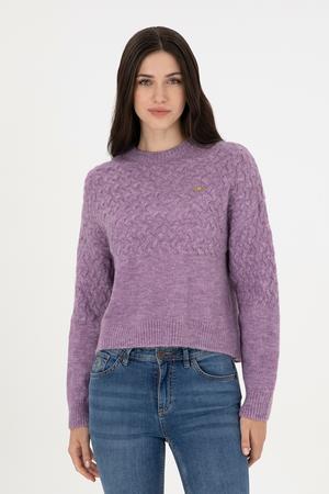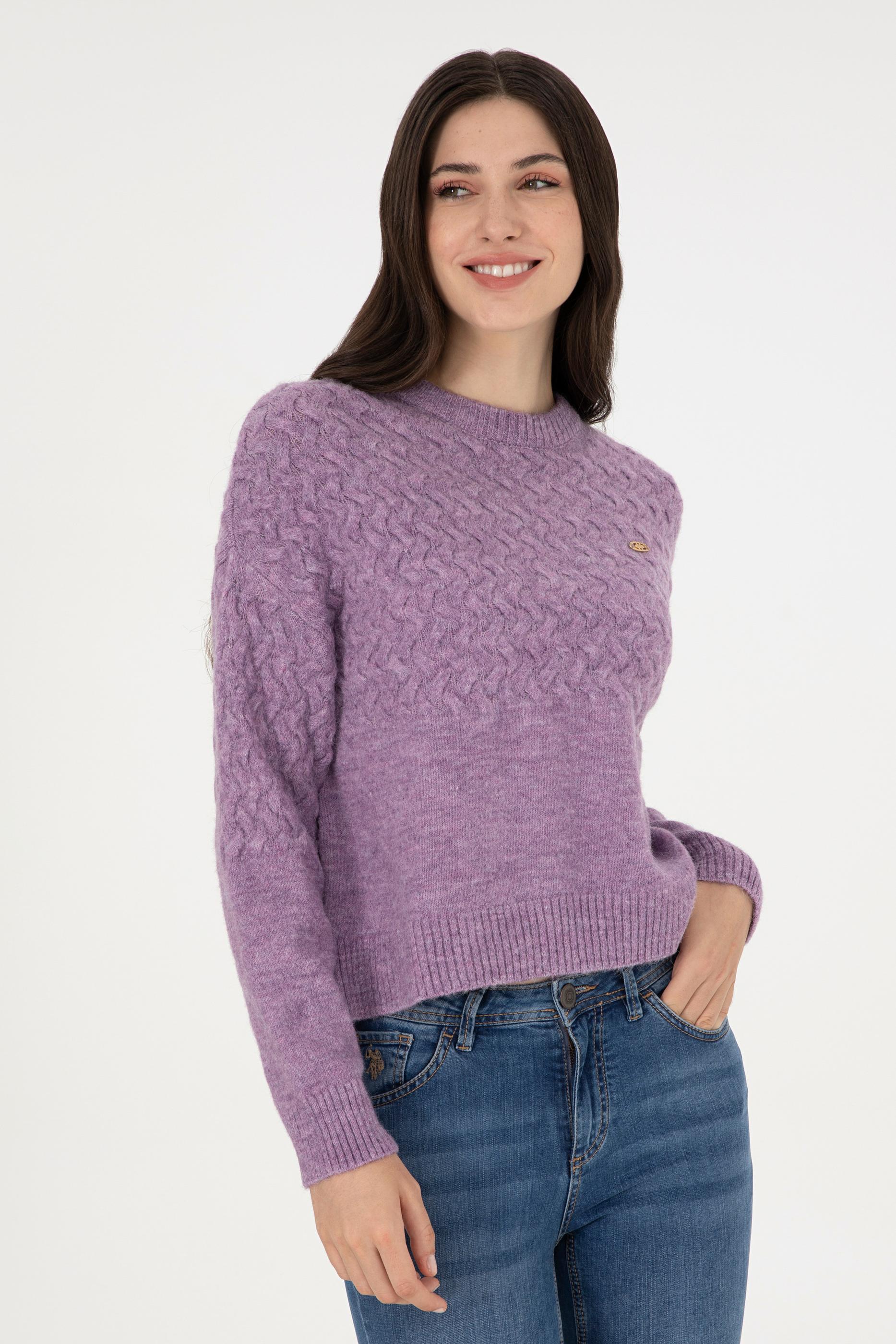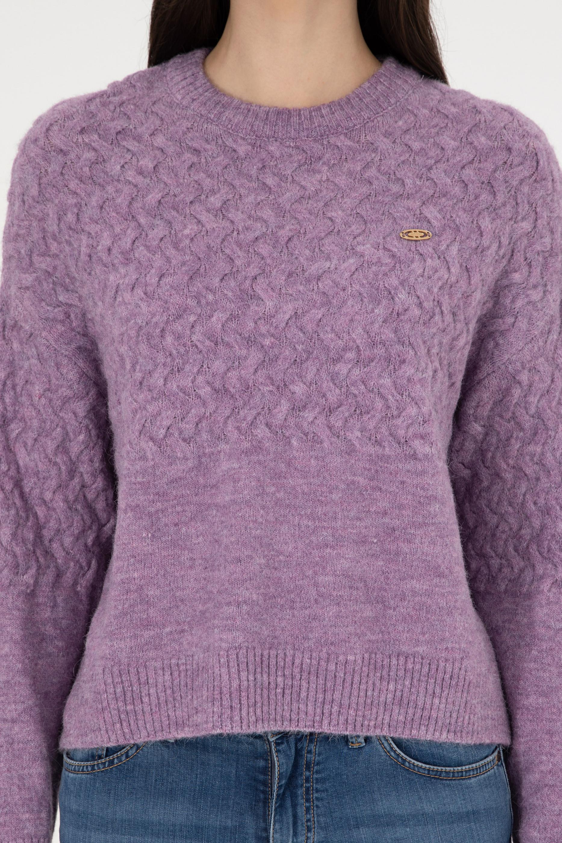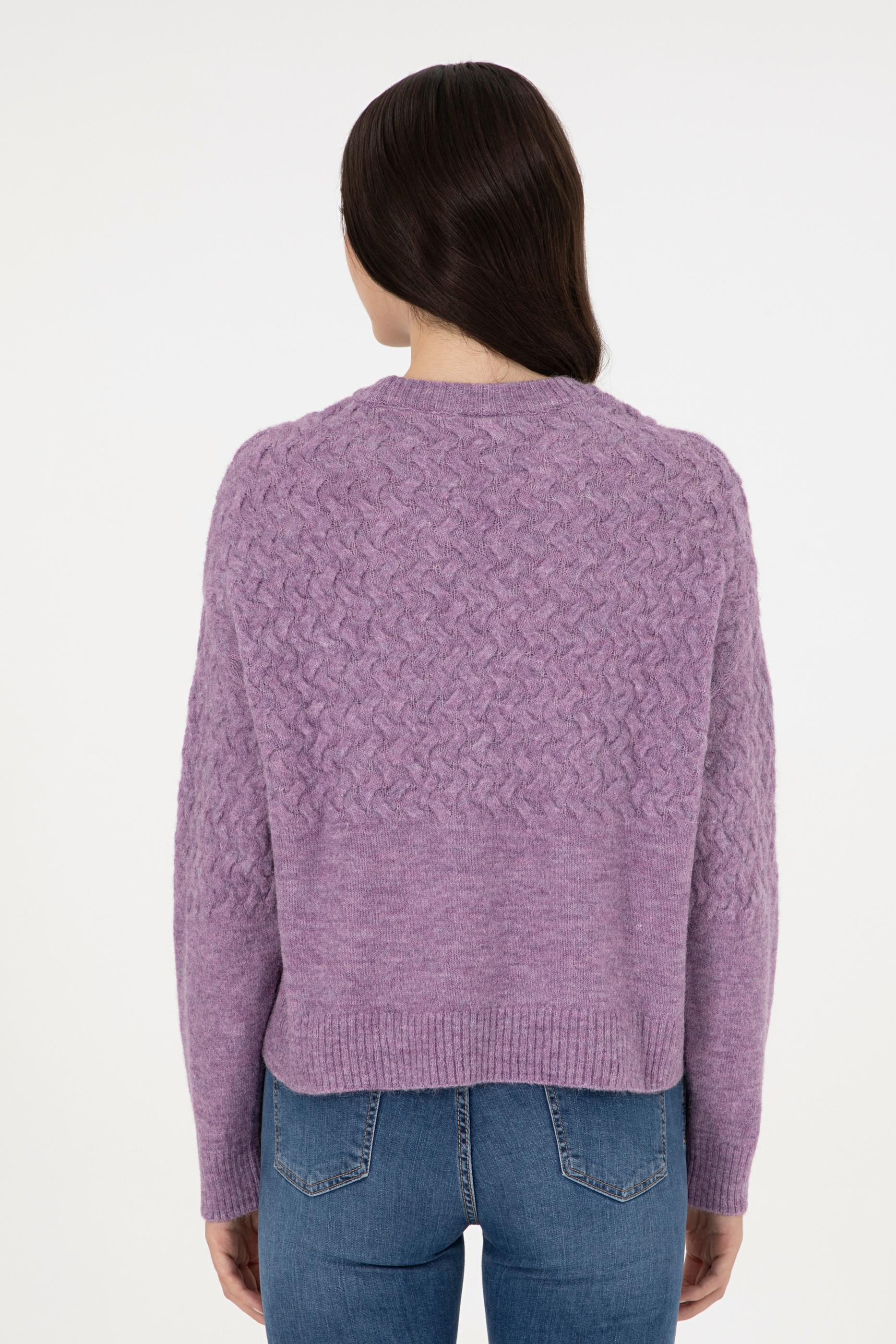Kadın Menekşe Melanj Bisiklet Yaka Kazak