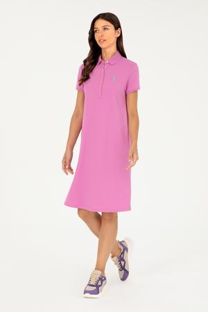 Kadın Pembe Polo Yaka Mini Boy Örme Elbise