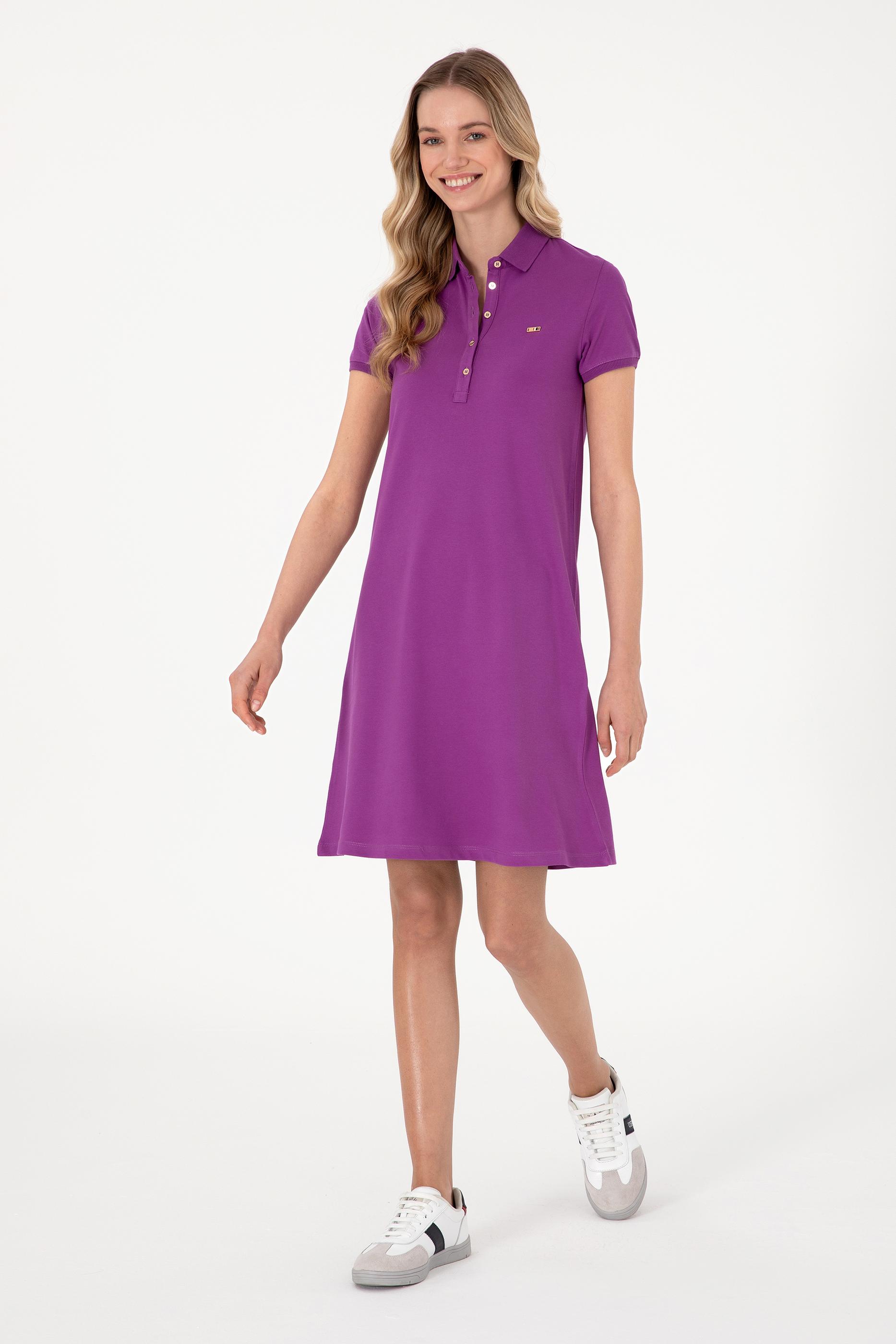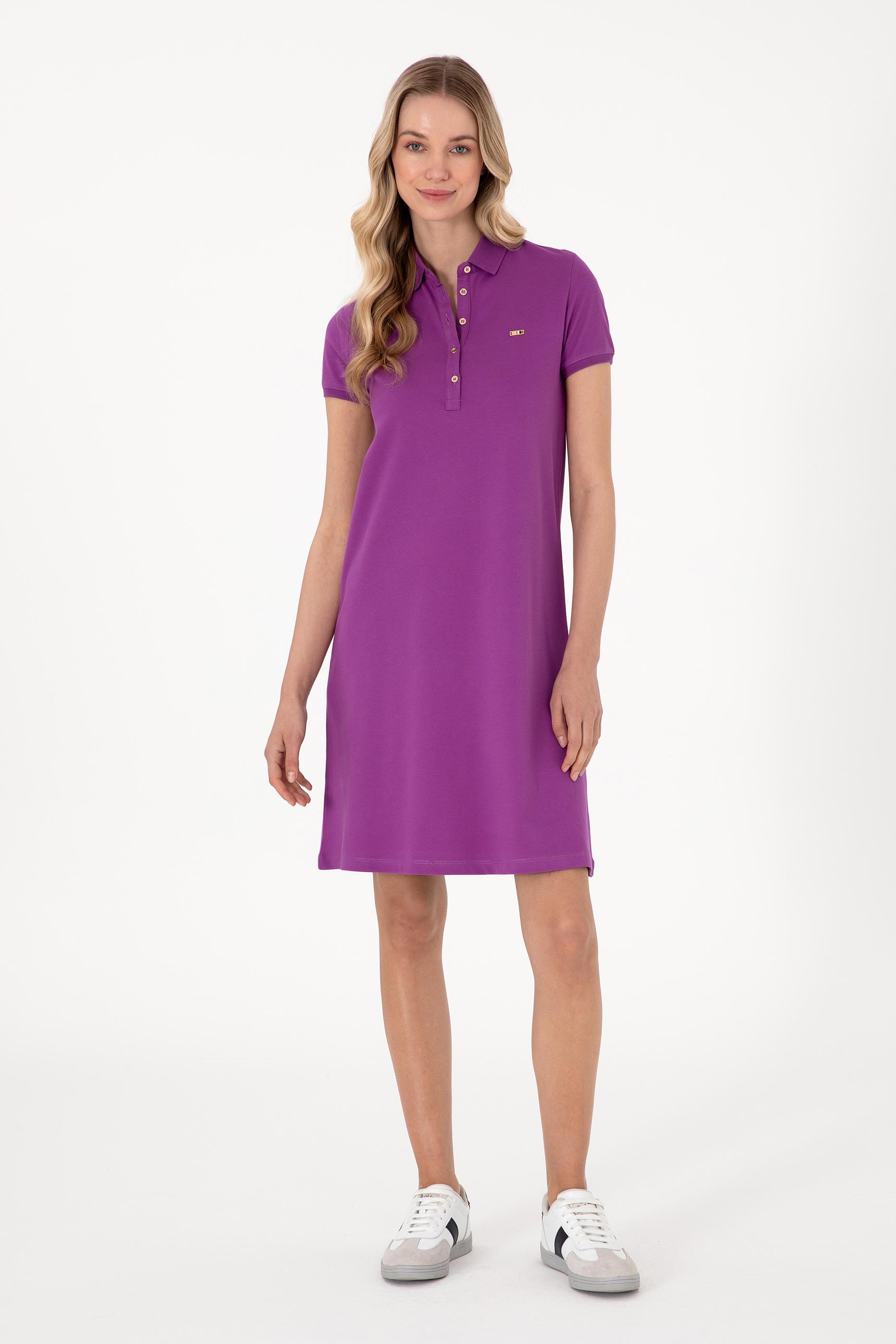 Kadın Menekşe Polo Yaka Mini Boy Örme Elbise