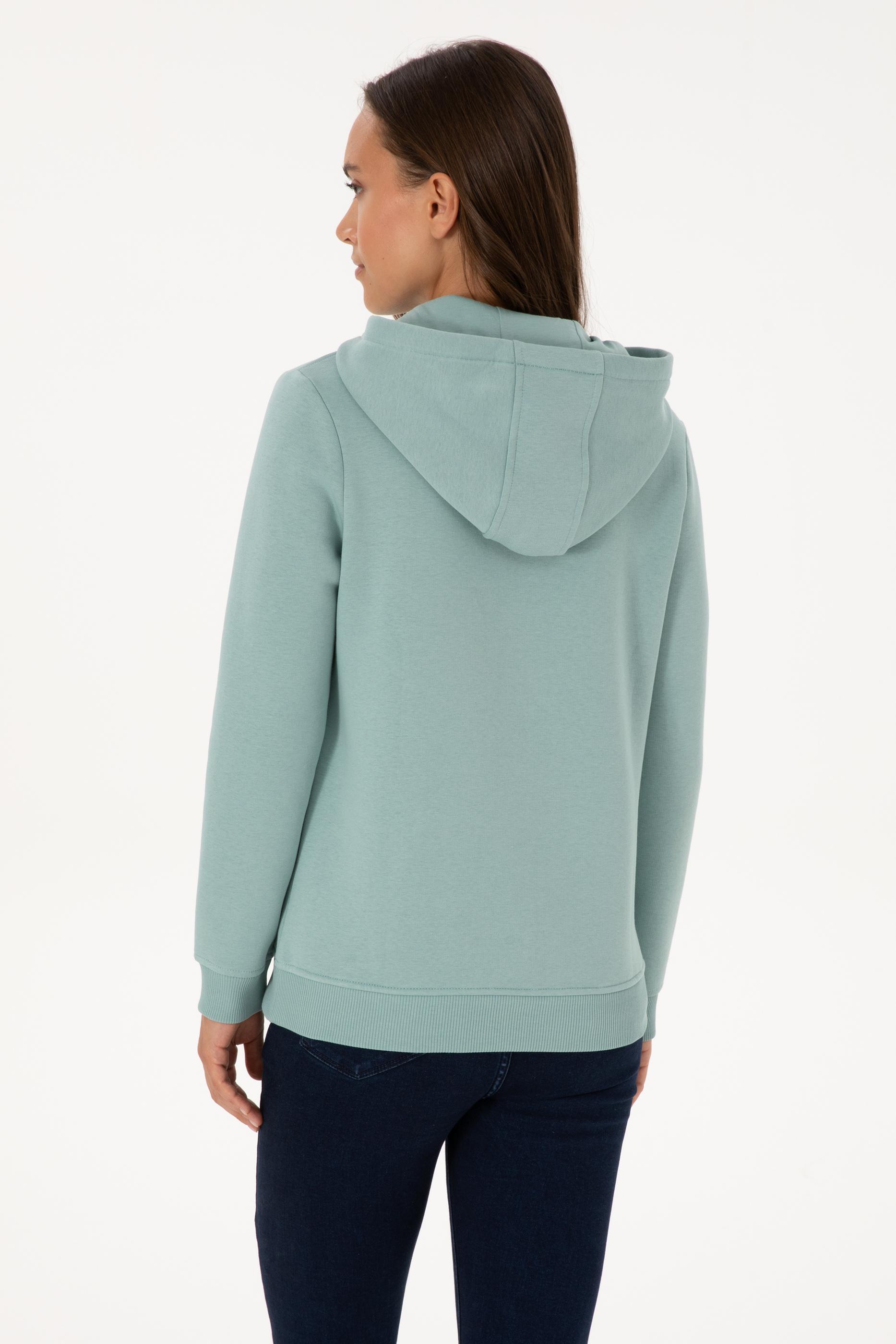 - Kadın Mint Şardonlu Kapüşonlu Basic Sweatshirt