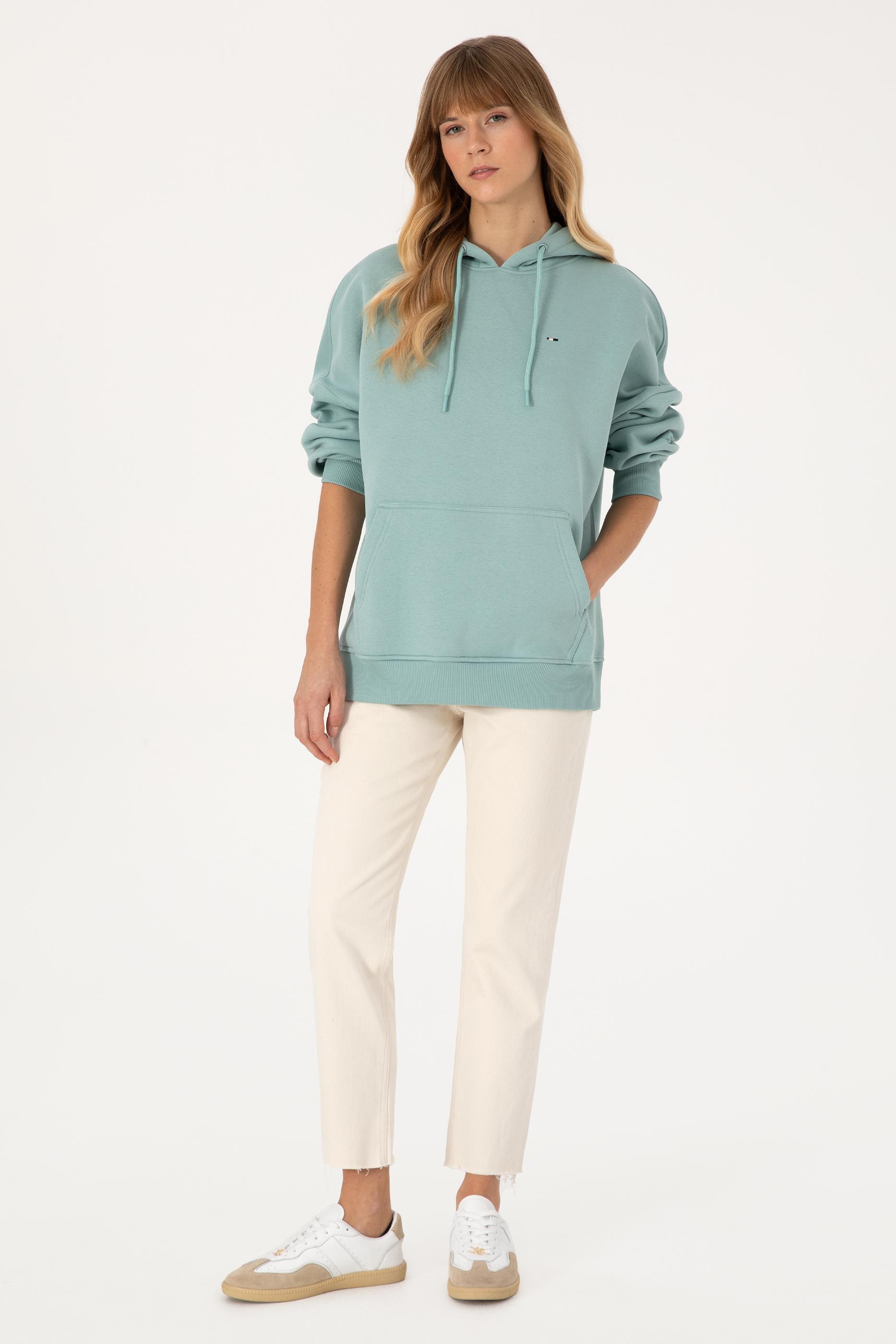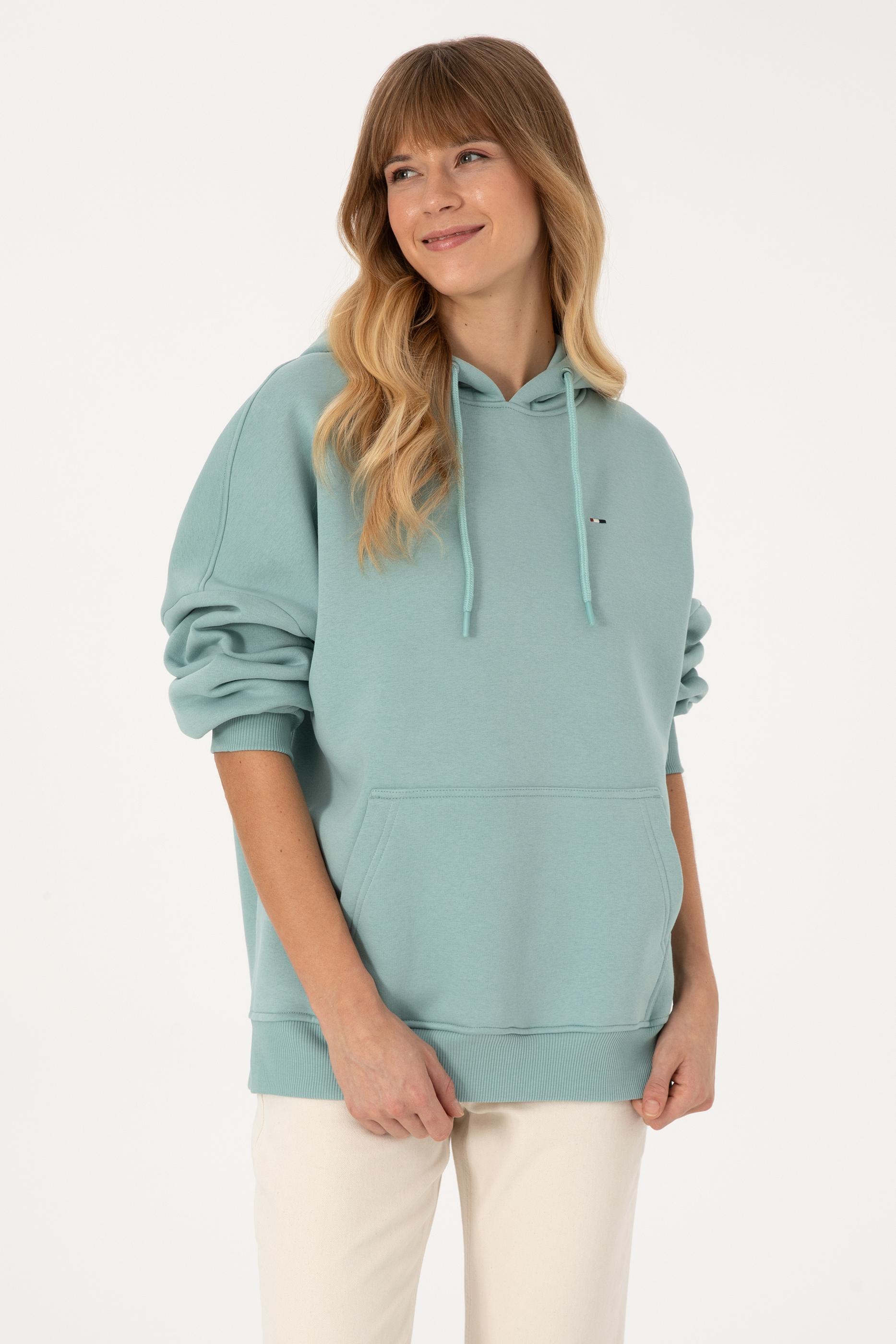 - Kadın Mint Şardonlu Kapüşonlu Sweatshırt