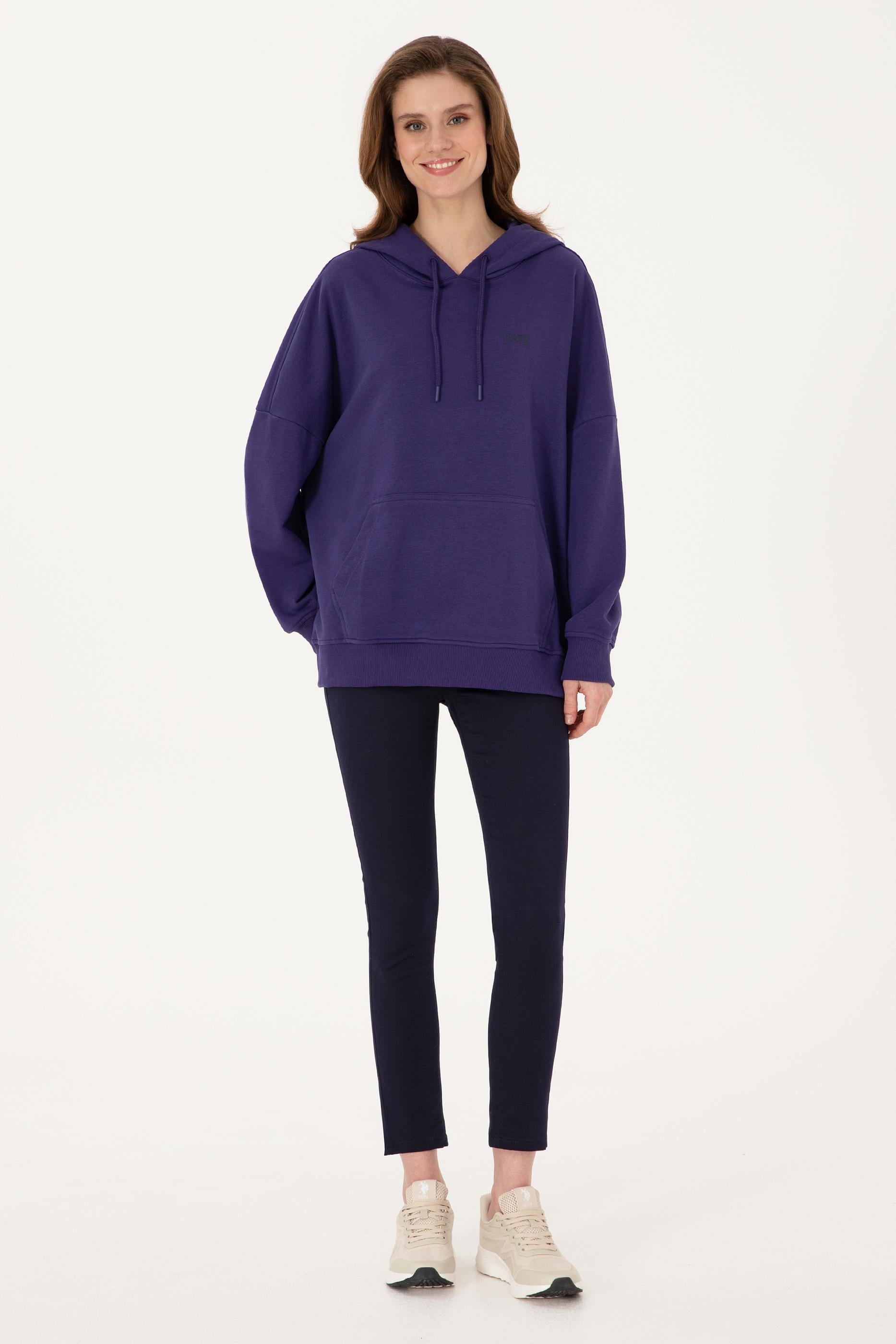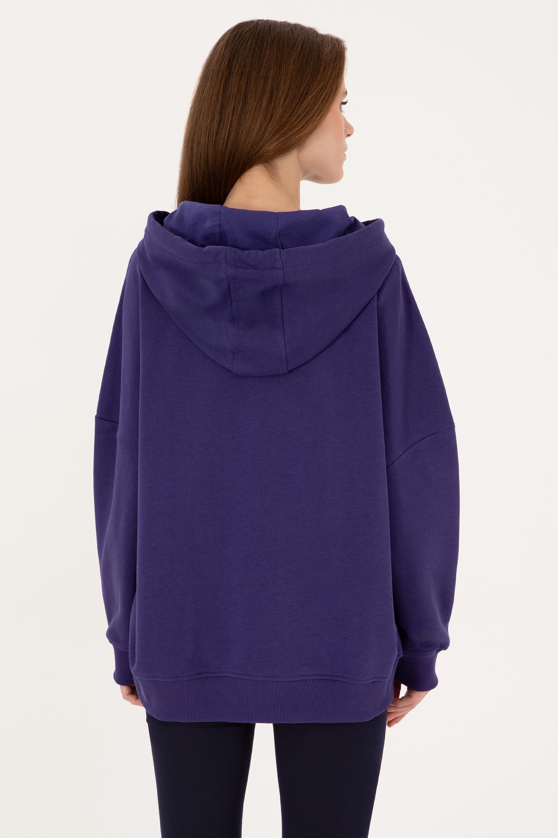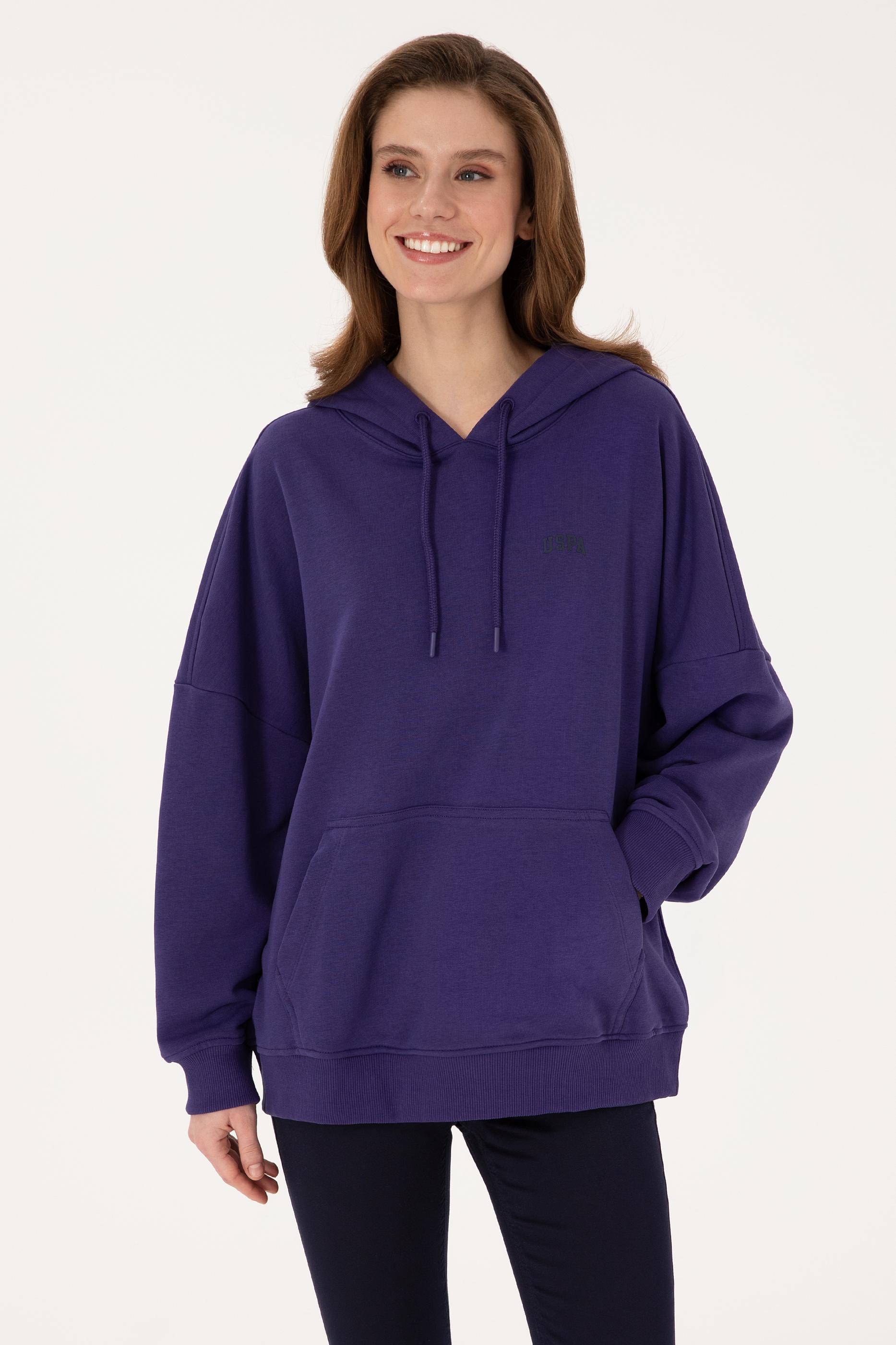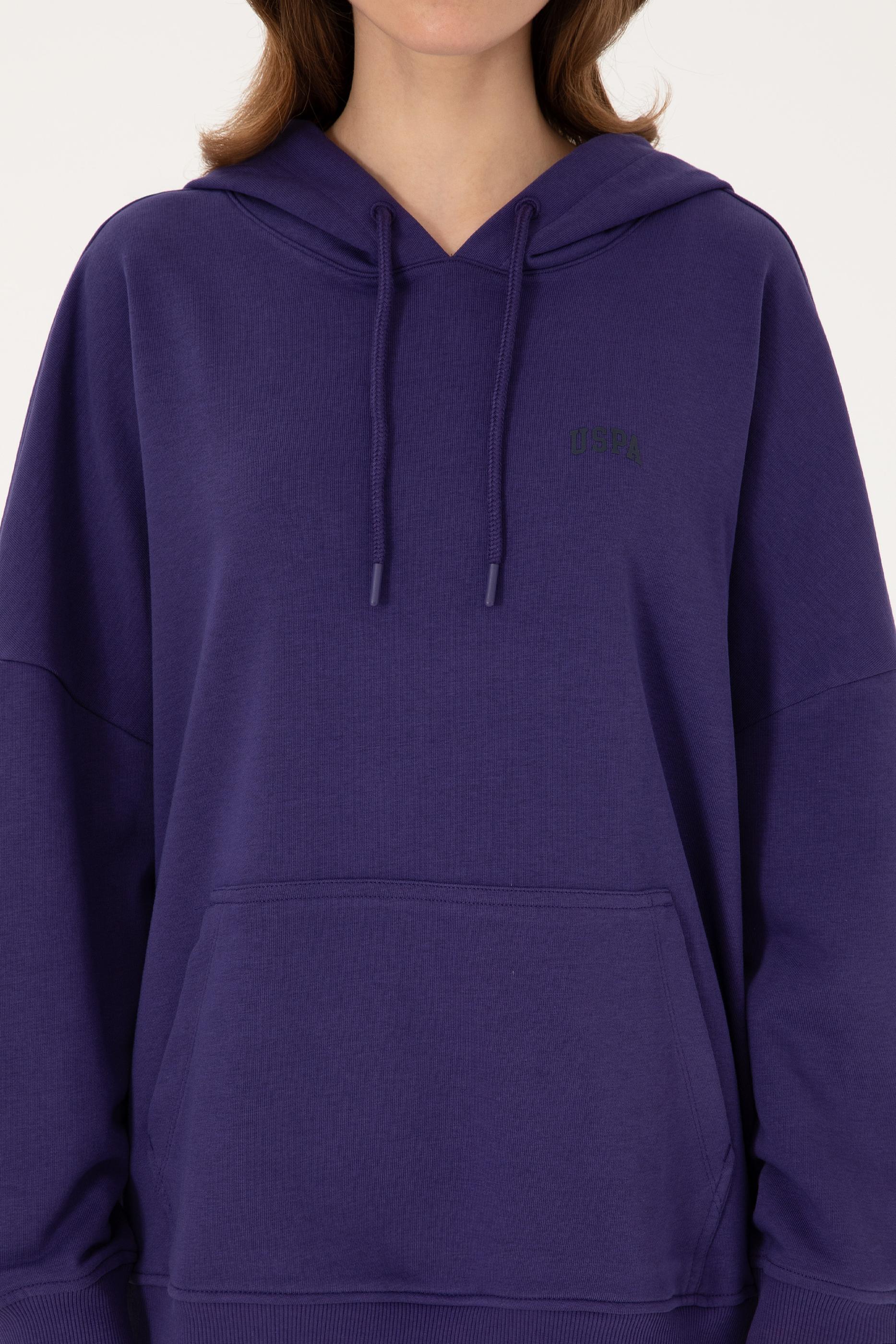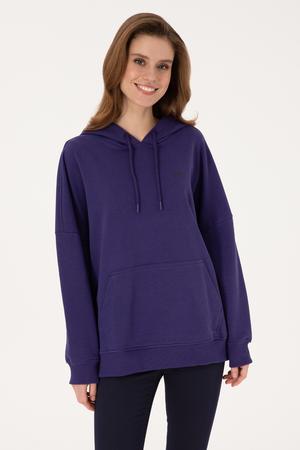 Kadın Mor Kapüşonlu Basic Sweatshirt