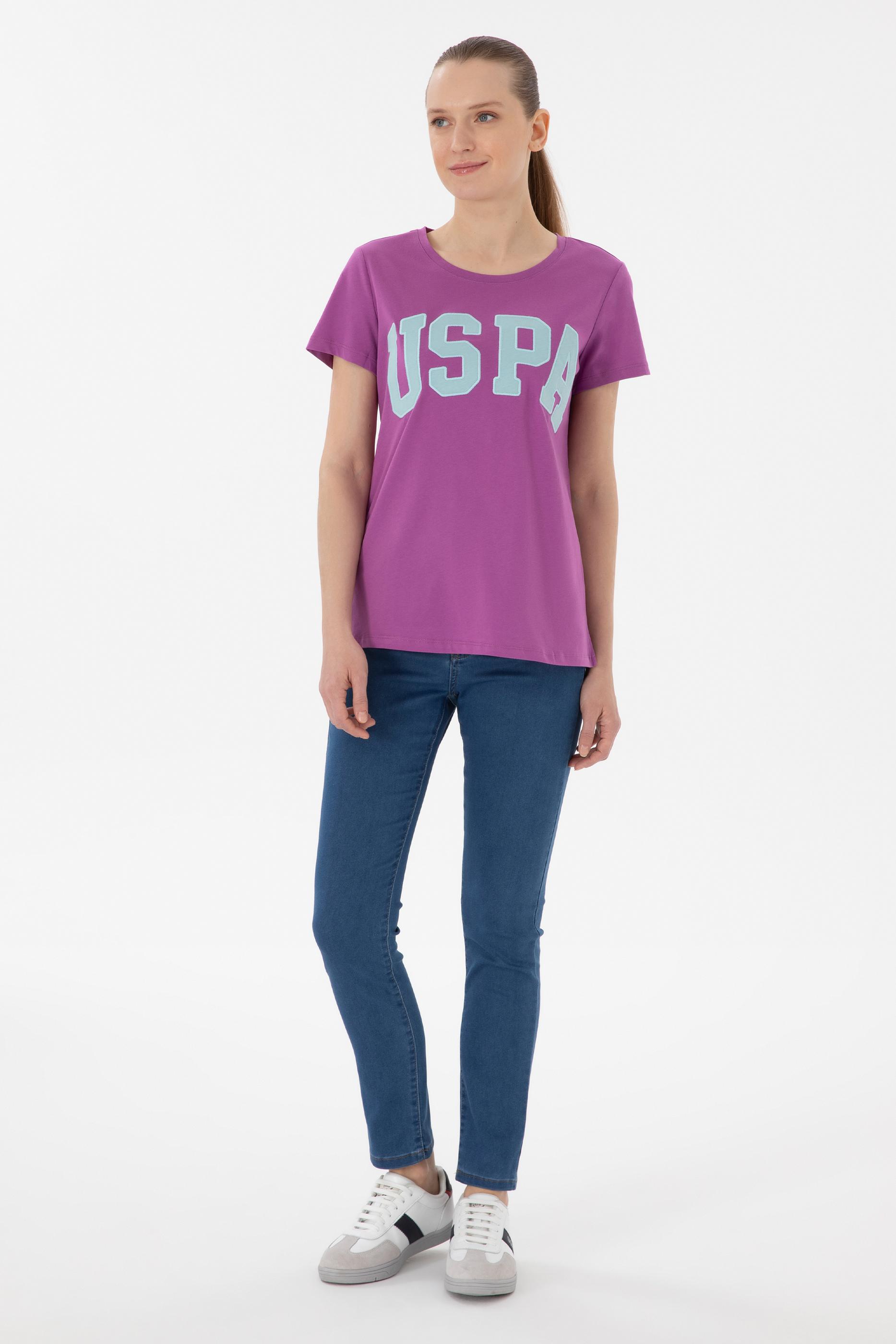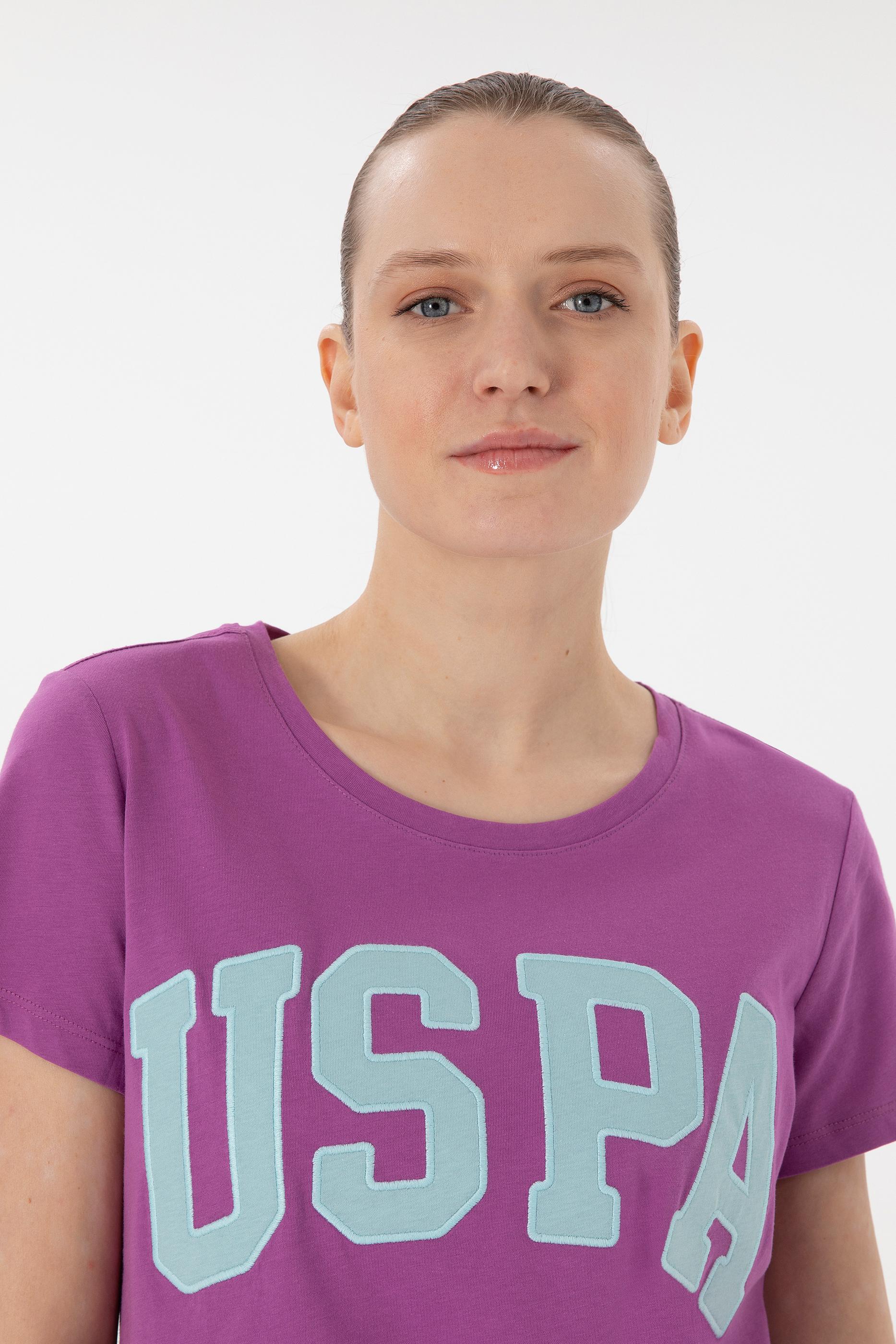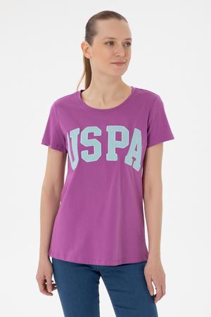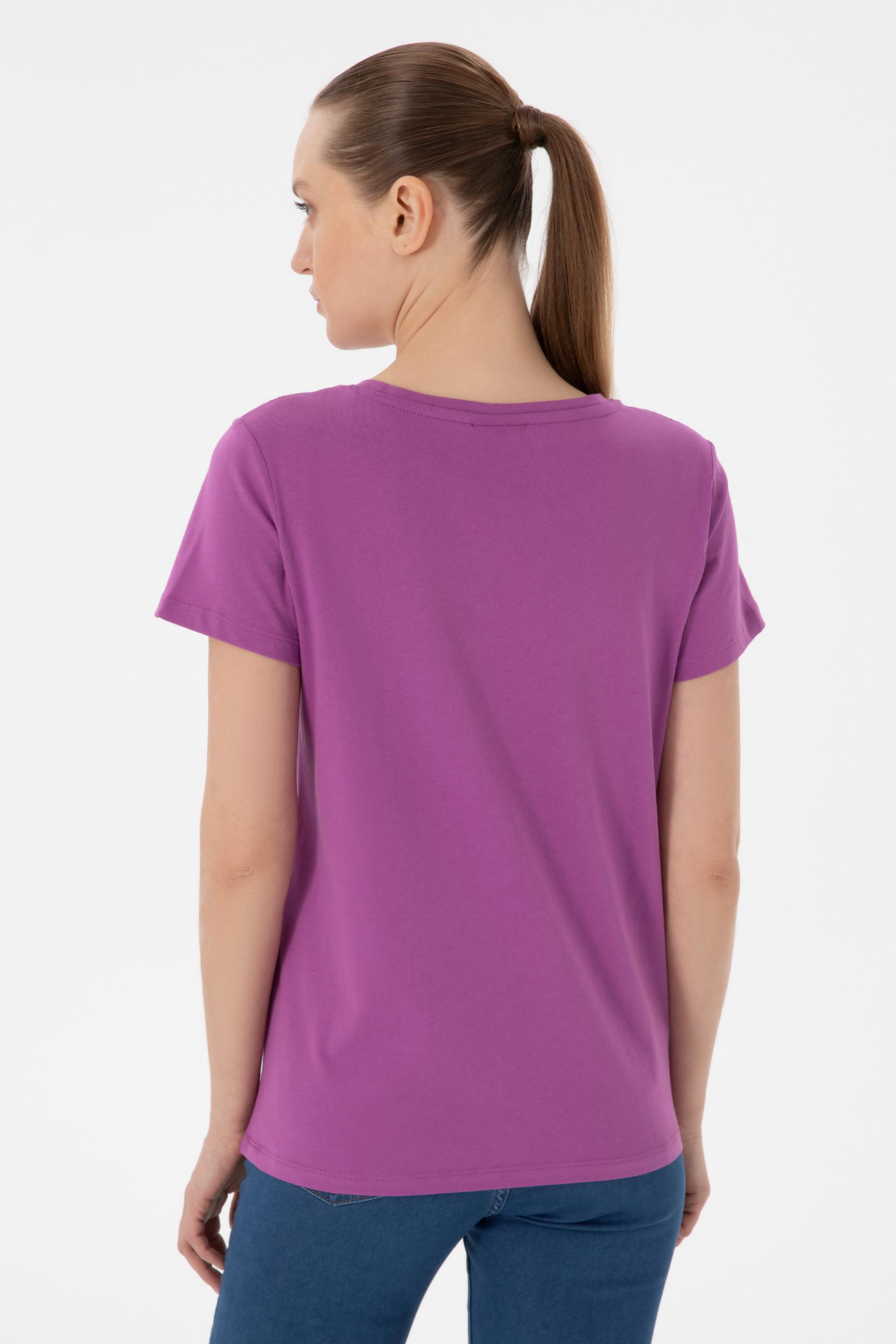 Kadın Mor Bisiklet Yaka Basic Tişört