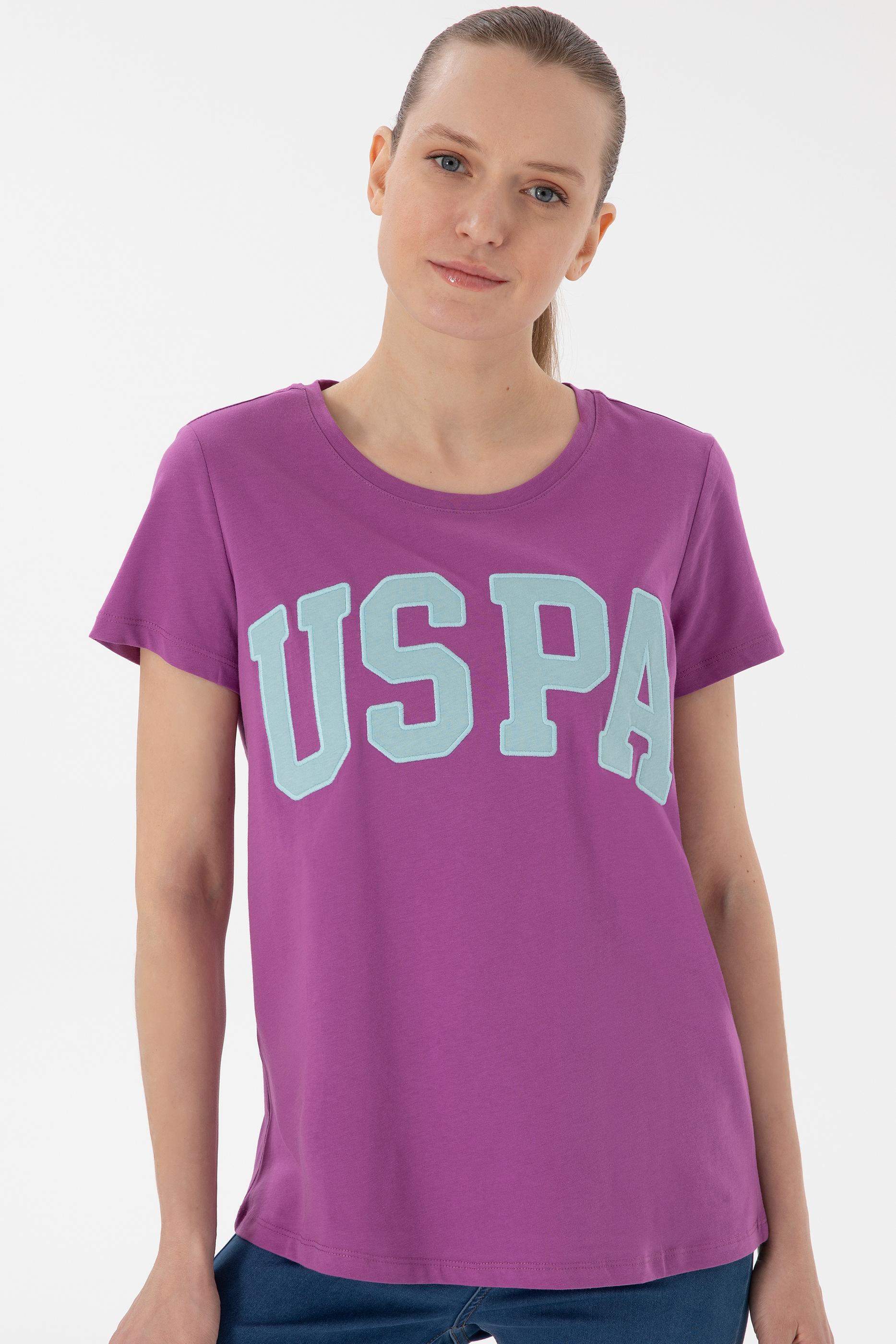 - Kadın Mor Bisiklet Yaka Basic Tişört