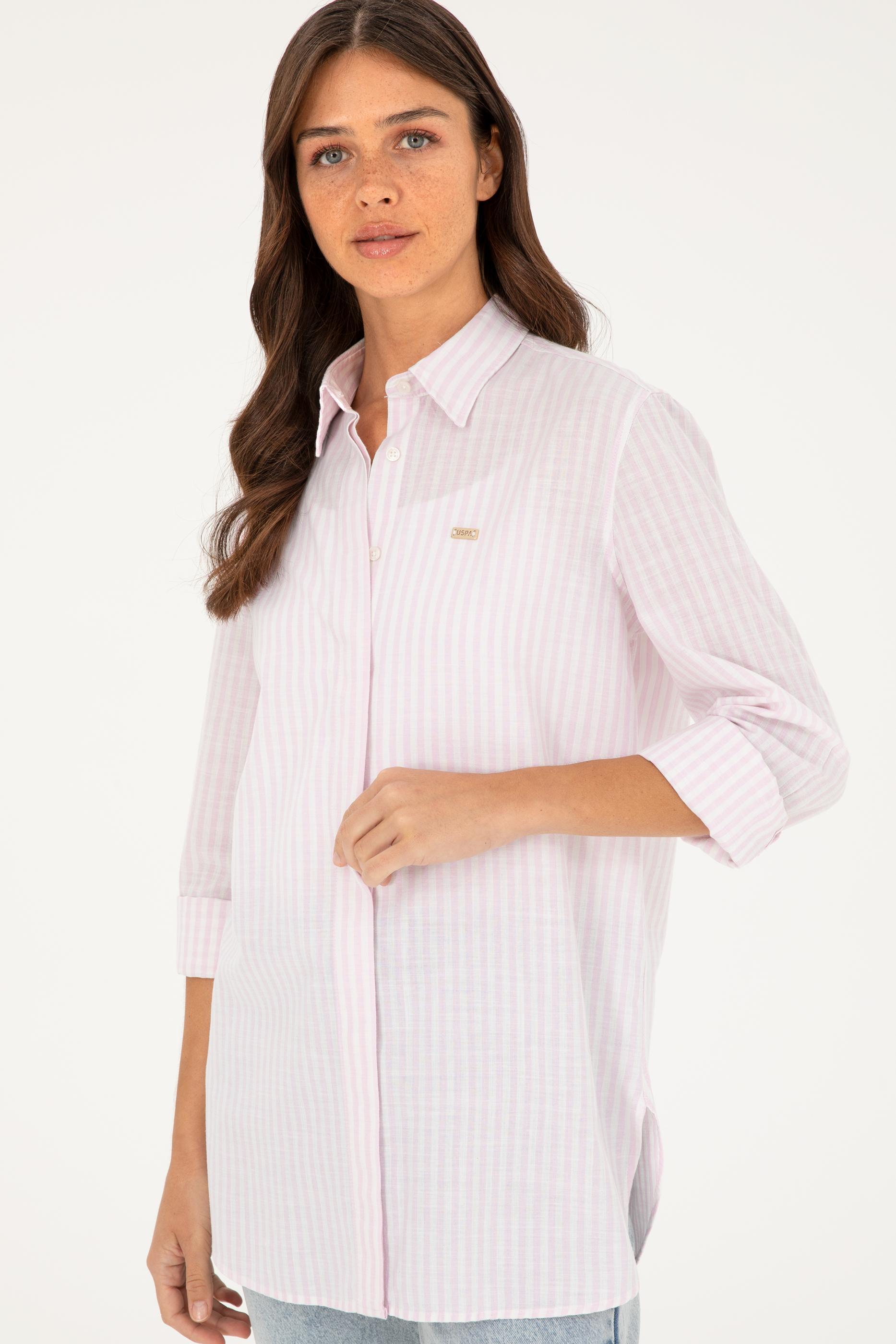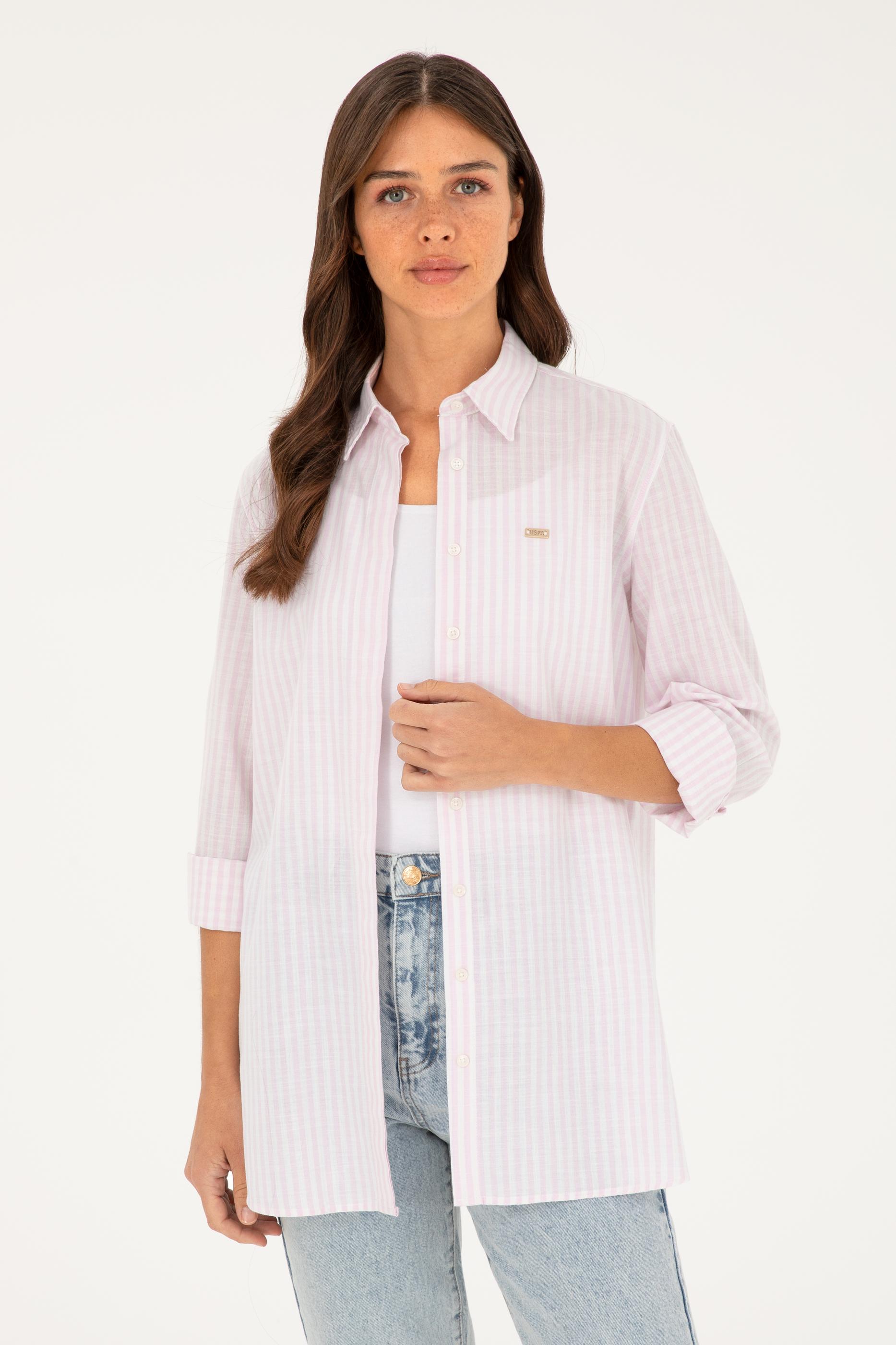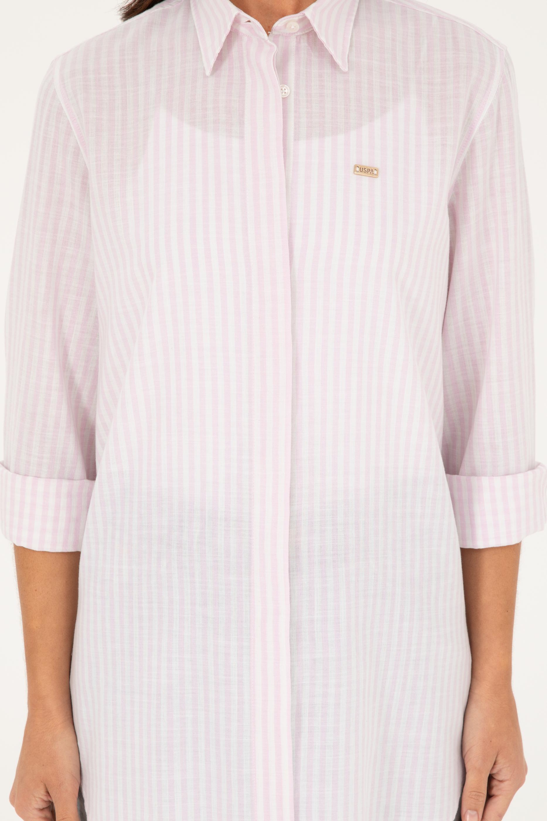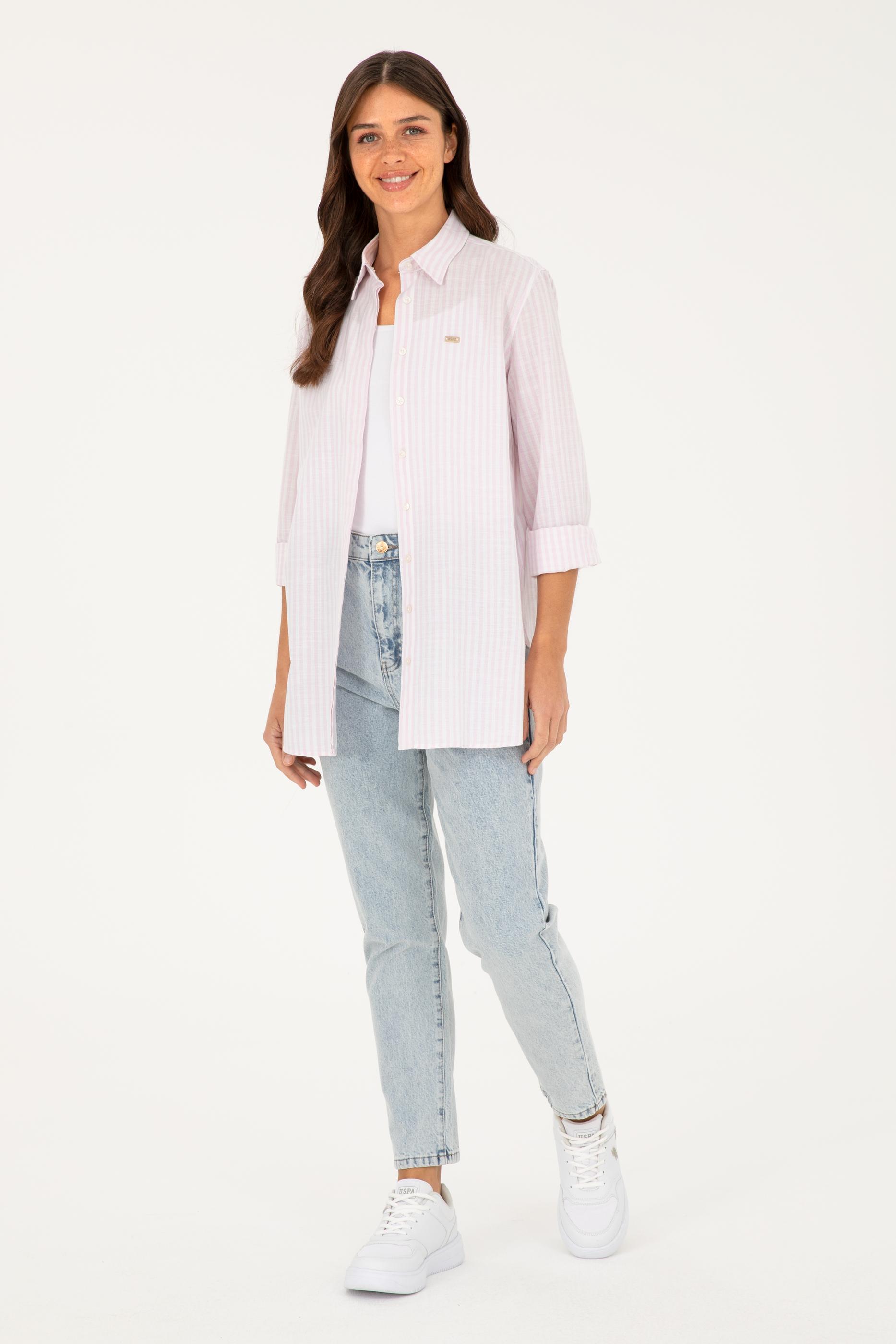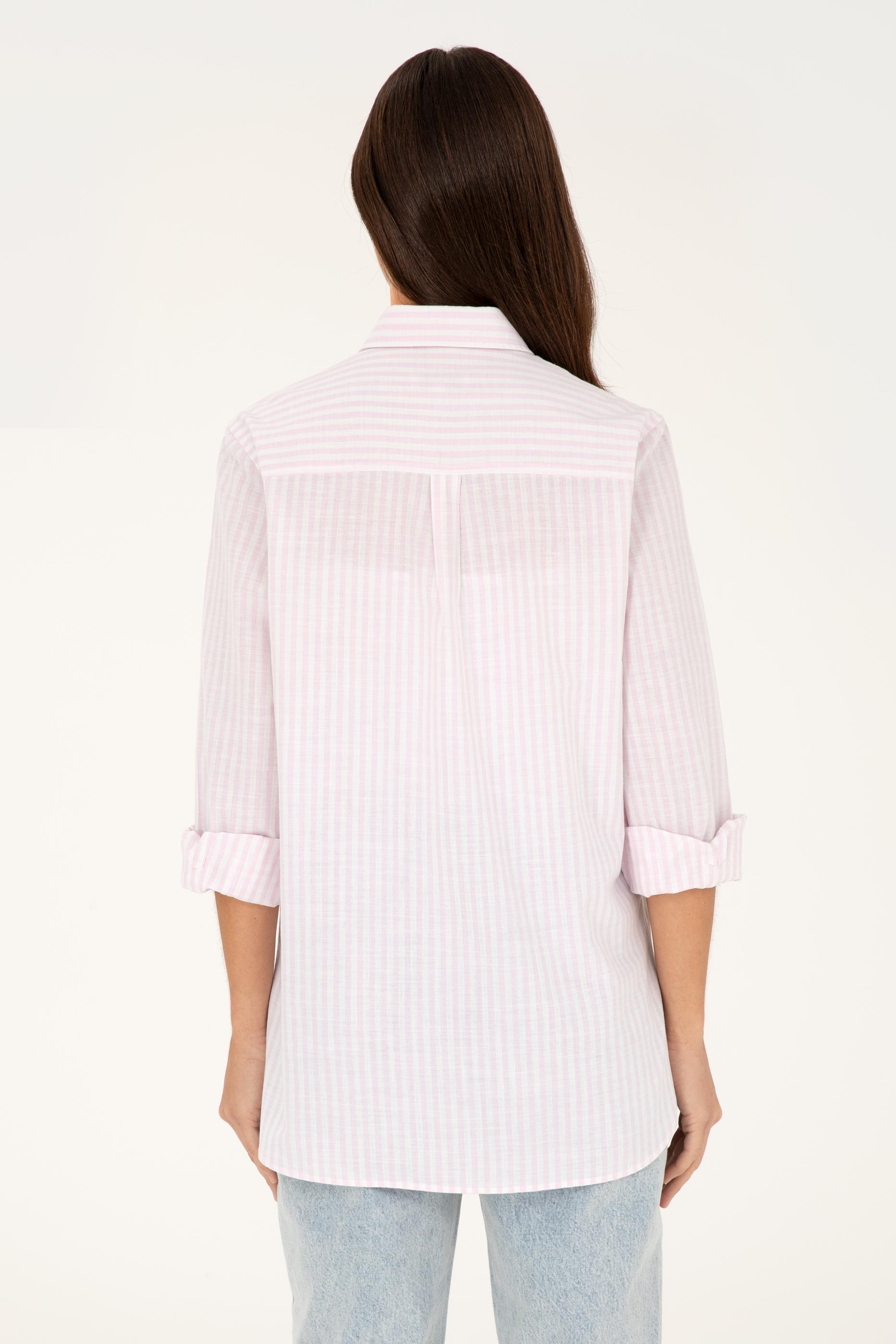 Şık ve rahat bir tarz arayanlar için tasarlanmış olan pembe çizgili gömlek, %100 pamuk kumaşı ile üstün konfor sağlar. Dokuma olan ürün, gün boyu rahatlık sağlayan yumuşak ve nefes alabilir bir yapıya sahiptir. Uzun kollu tasarımı serin havalarda bile sıcak tutar ve bileğe kadar inen kol boyu ile klasik bir görünüm sunar.