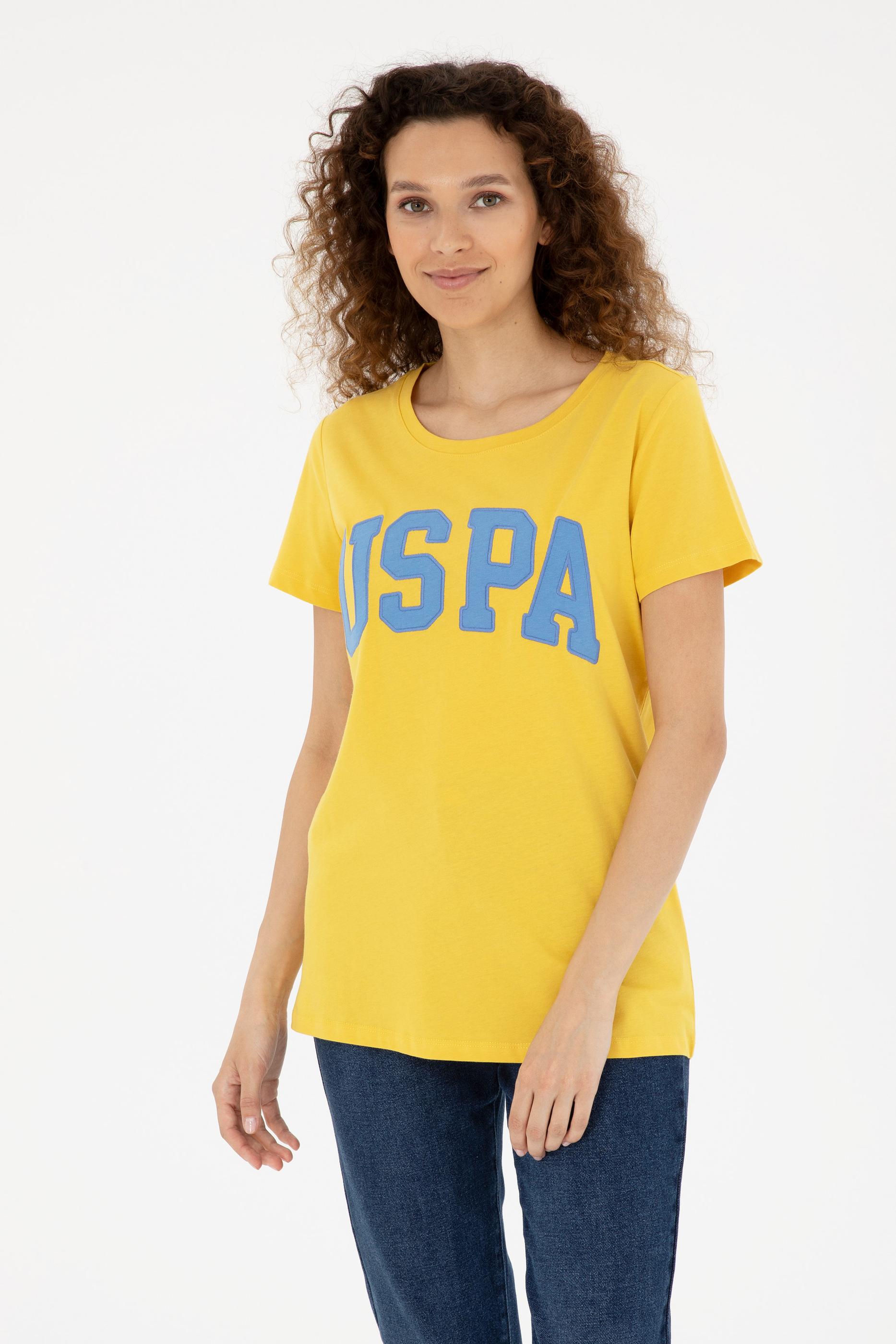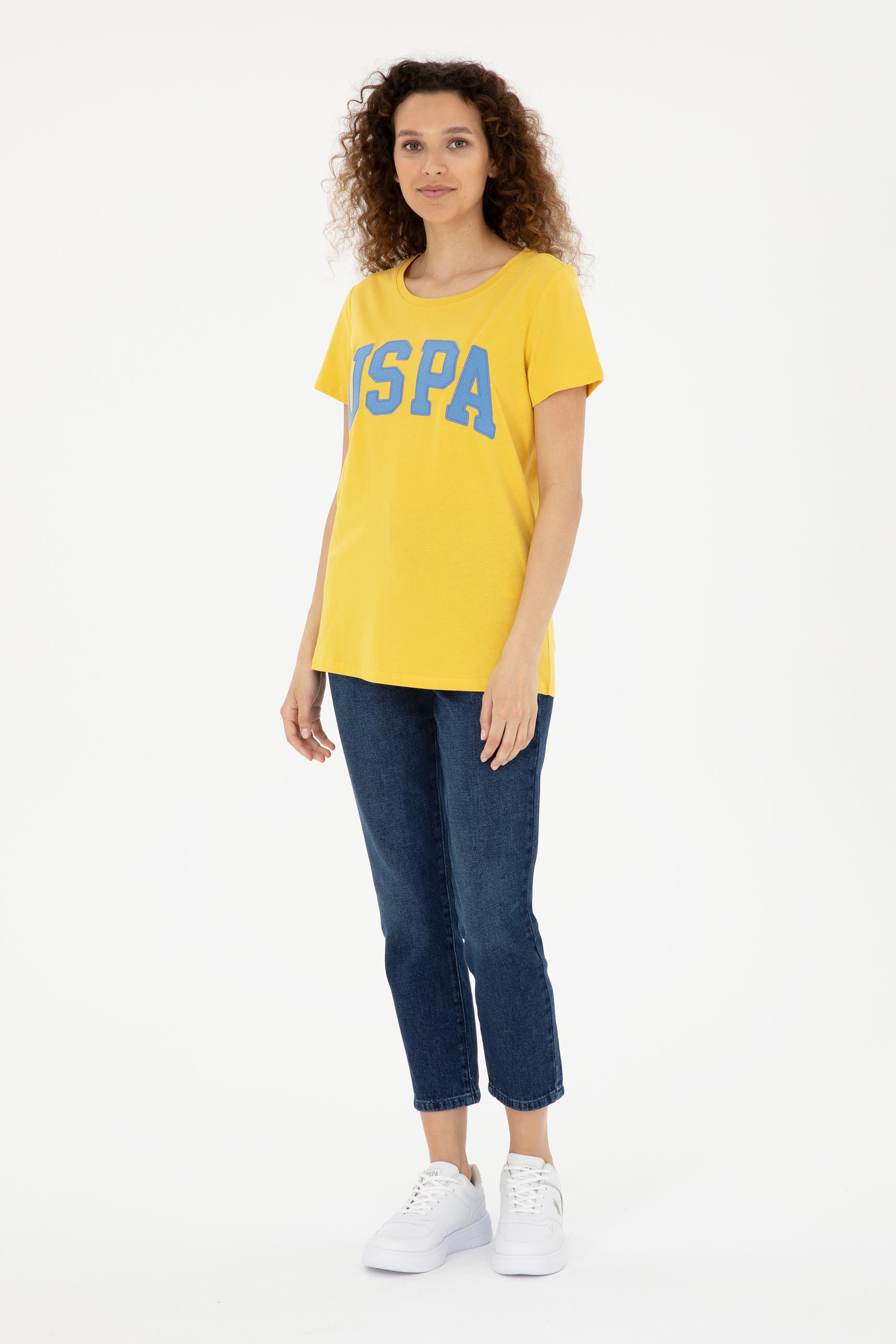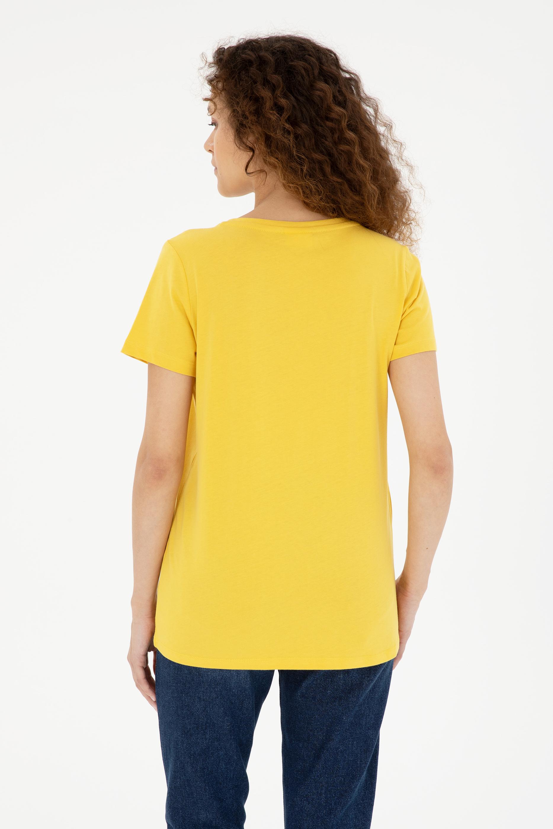 Kadın Safran Bisiklet Yaka Basic Tişört
