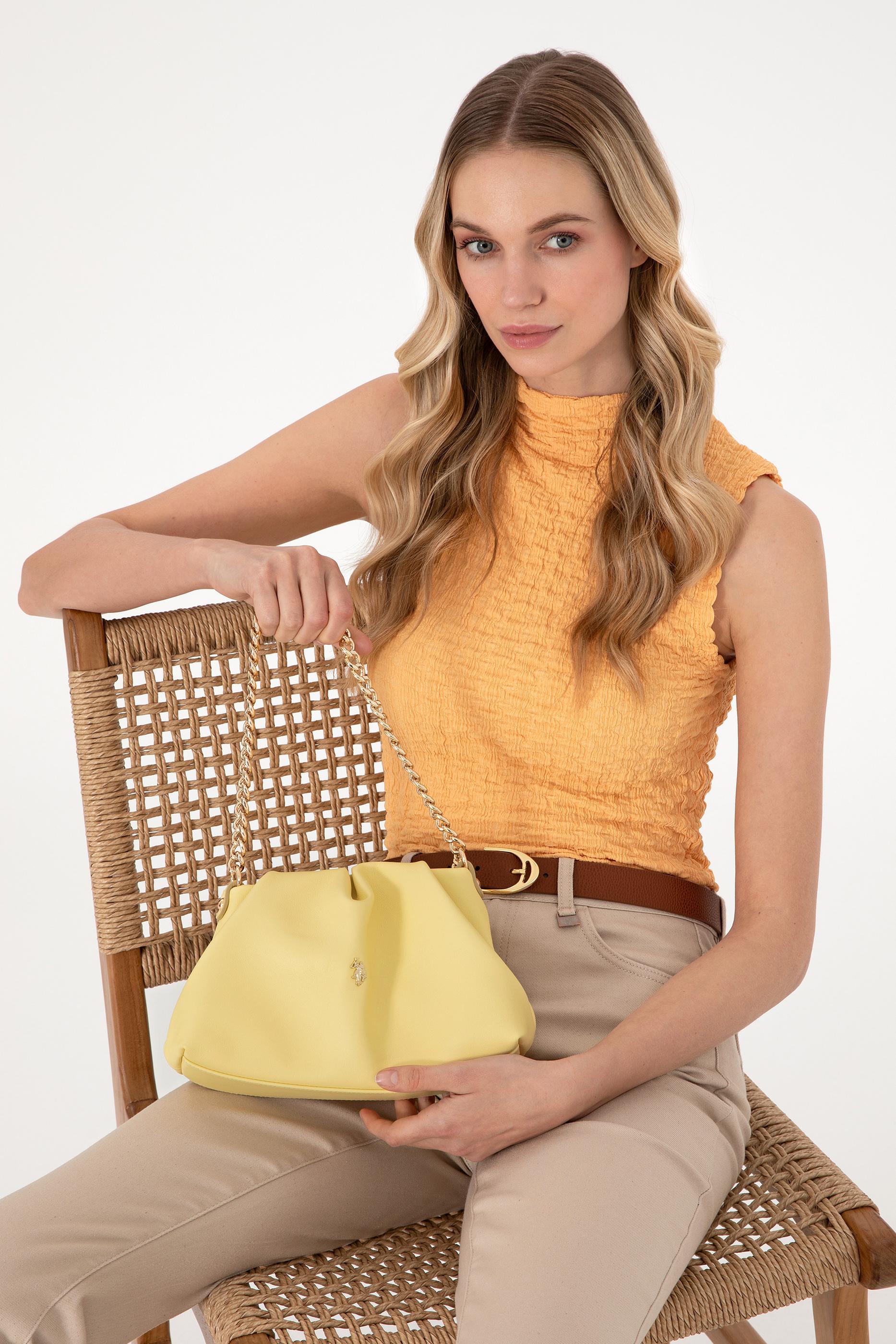 Şıklığı ve fonksiyonelliği bir araya getiren bu Kadın Sarı Zincir Detaylı Deri Kol Çantası, stil sahibi kadınlar için özenle tasarlandı. Canlı sarı rengiyle enerjik ve iddialı bir duruş sergilerken, altın tonlardaki zincir askı detayı modern bir şıklık katıyor. Yumuşak dokusuyla dikkat çeken kuzu derisinden üretilmiş bu kol çantası, clutch model görünümüyle hem gündüz hem de gece kombinlerinizde zarif bir tamamlayıcı oluyor. Mıknatıslı kapama detayı sayesinde kullanım kolaylığı sunan model, geniş iç hacmiyle günlük ihtiyaçlarınızı pratik şekilde taşımanızı sağlıyor. Sadece online satışa özel olarak sunulan bu çanta, 11 farklı renk alternatifiyle her zevke hitap ediyor. Günlük şehir hayatında veya özel davetlerde fark yaratmak isteyenler için ideal bir seçim olan bu clutch model zincir detaylı kol çantası, tarzınıza sofistike bir dokunuş katmak için sizi bekliyor.