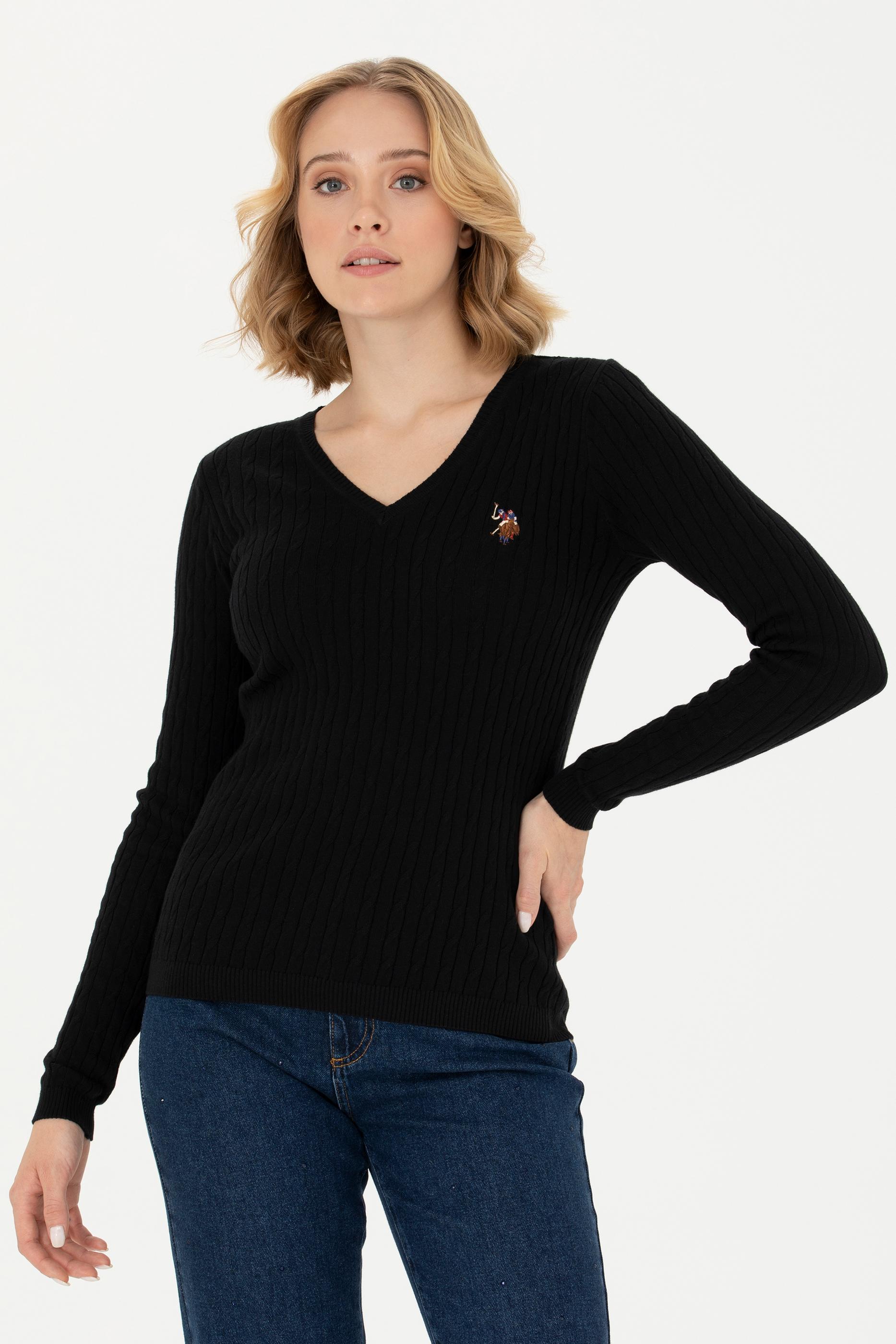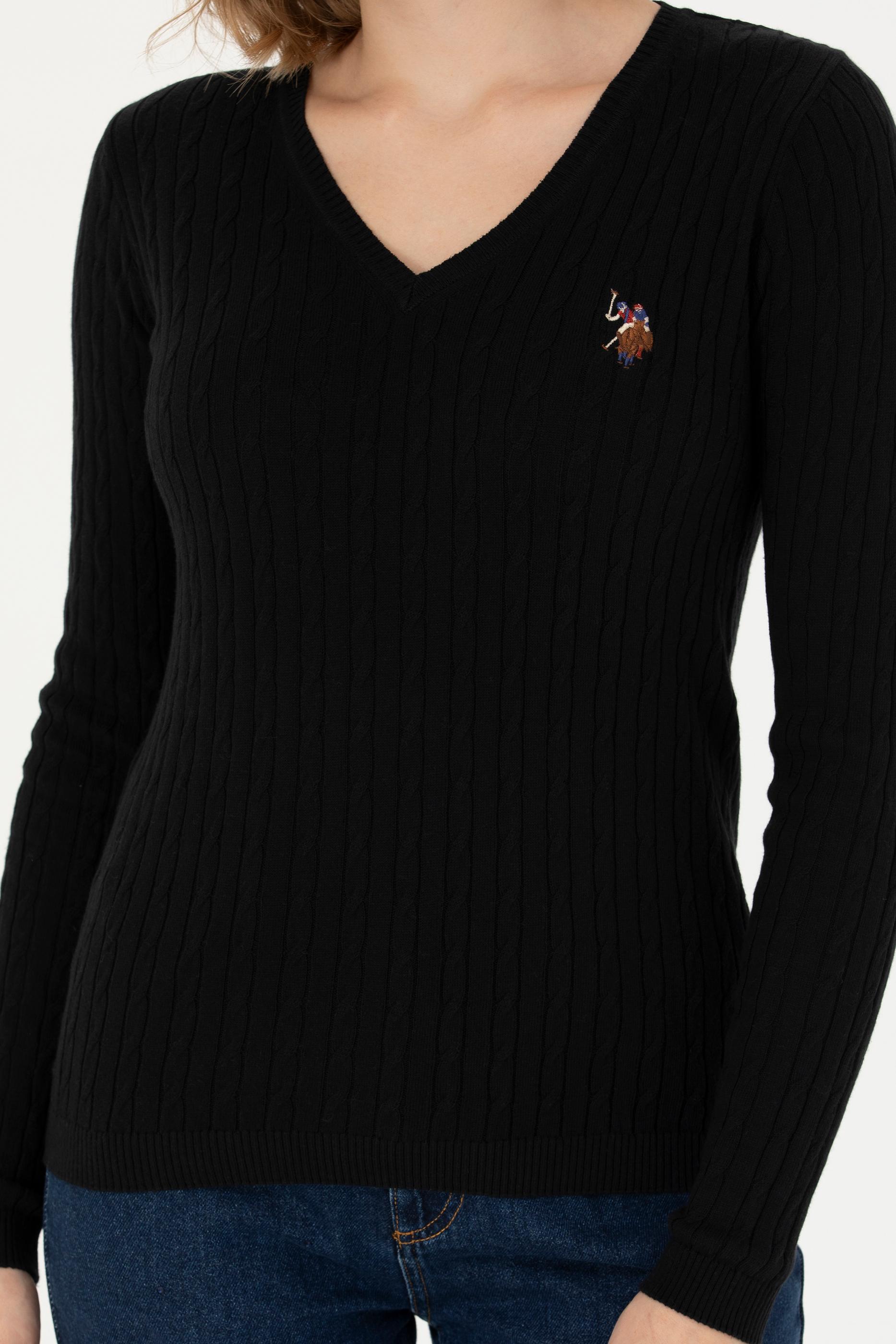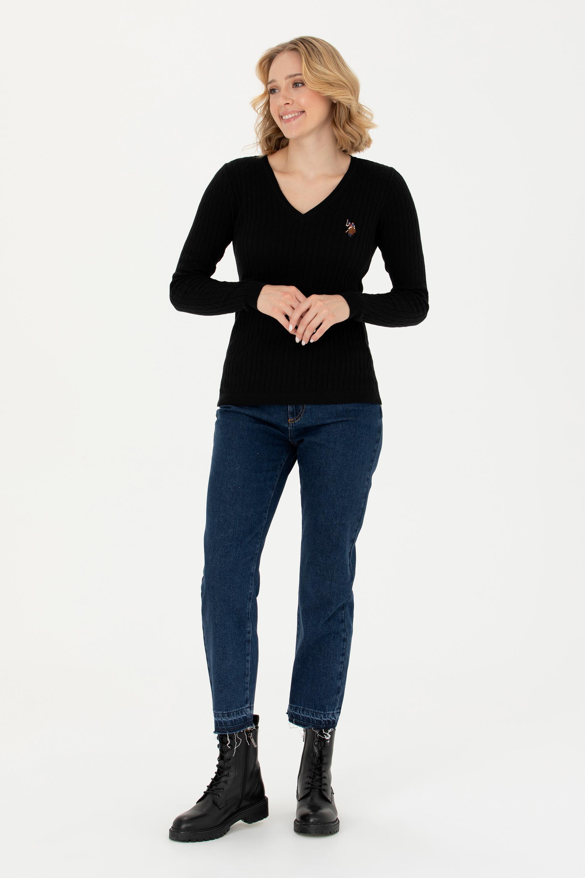 Kadın Siyah V Yaka Basic Kazak