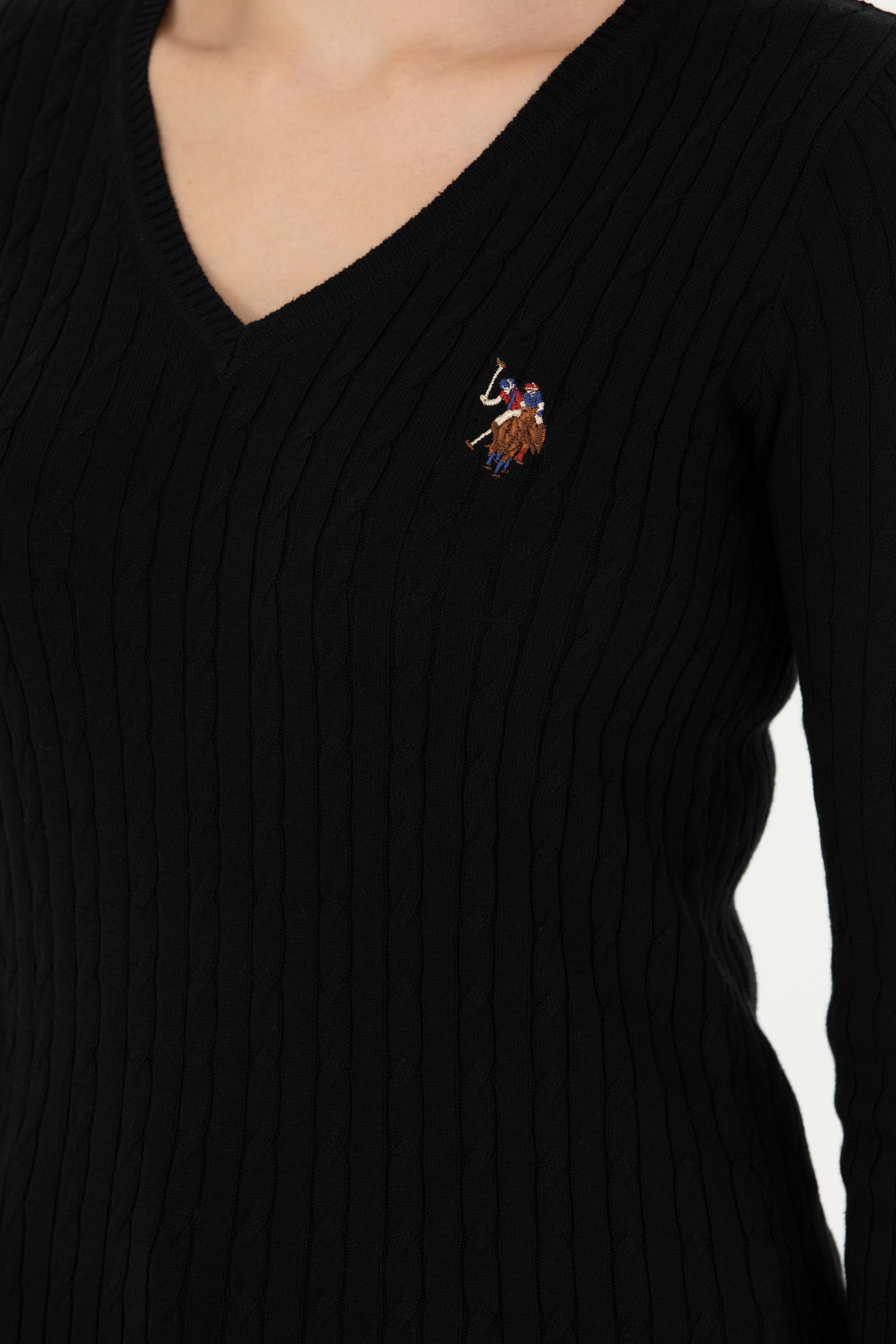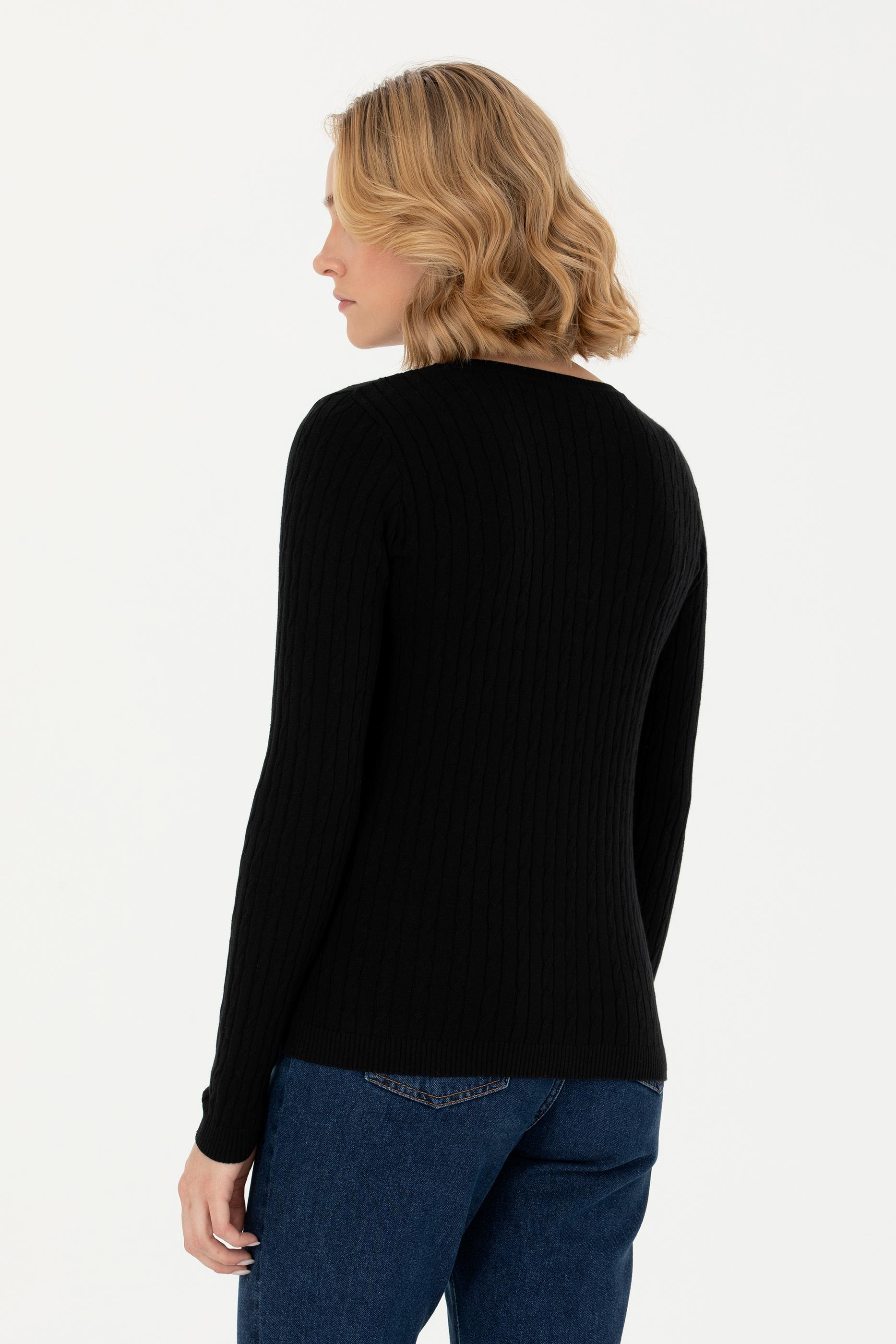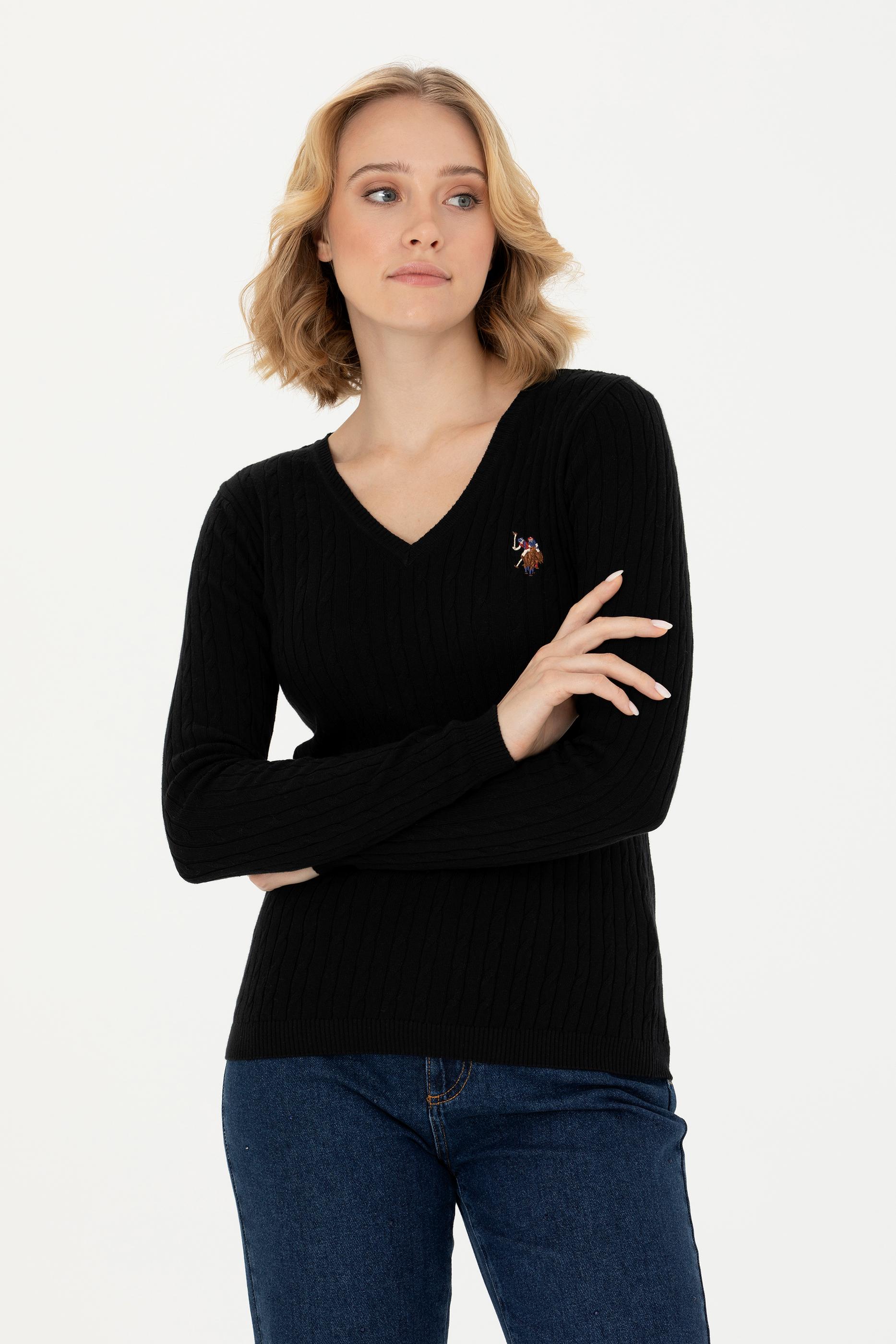 Kadın Siyah V Yaka Basic Kazak
