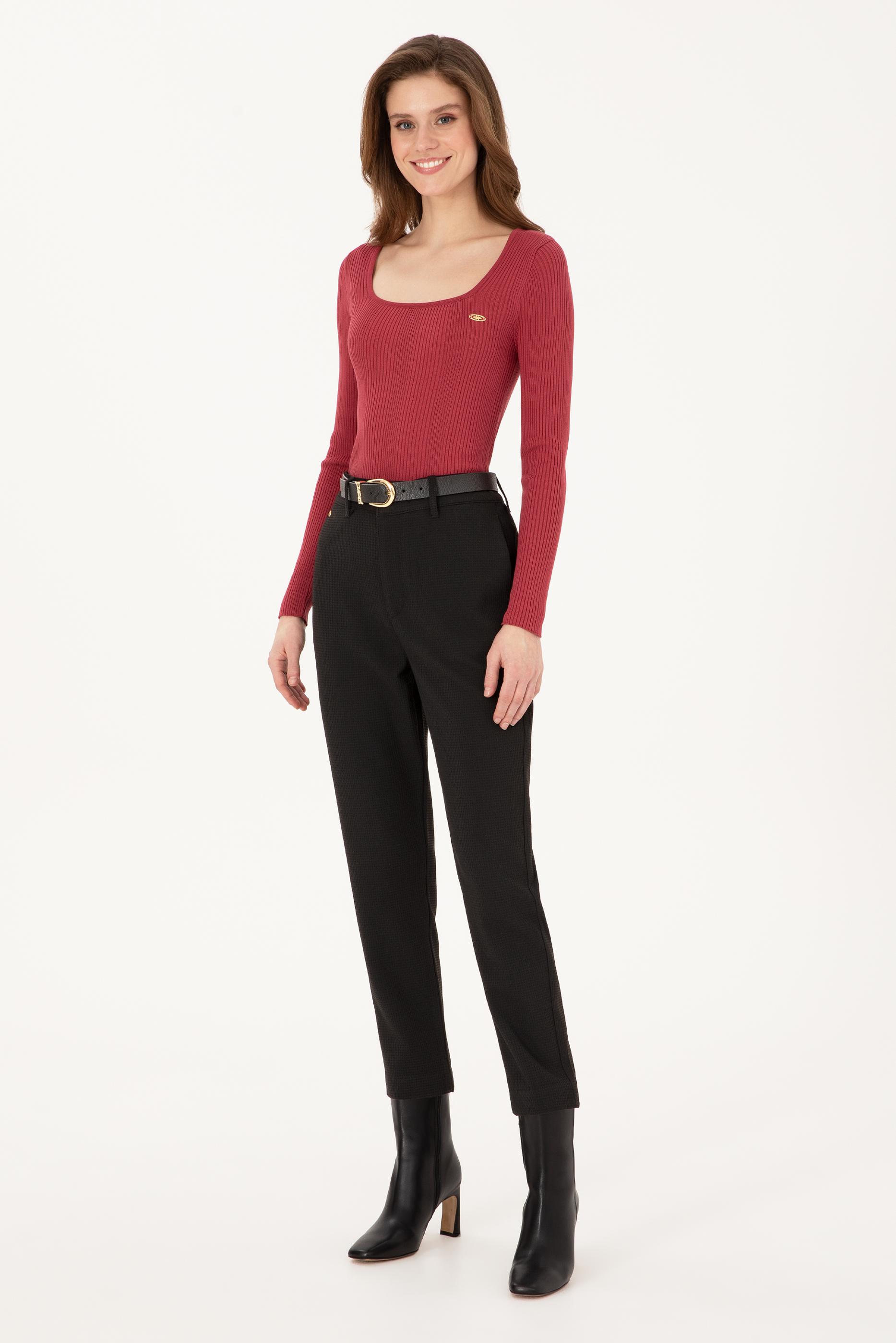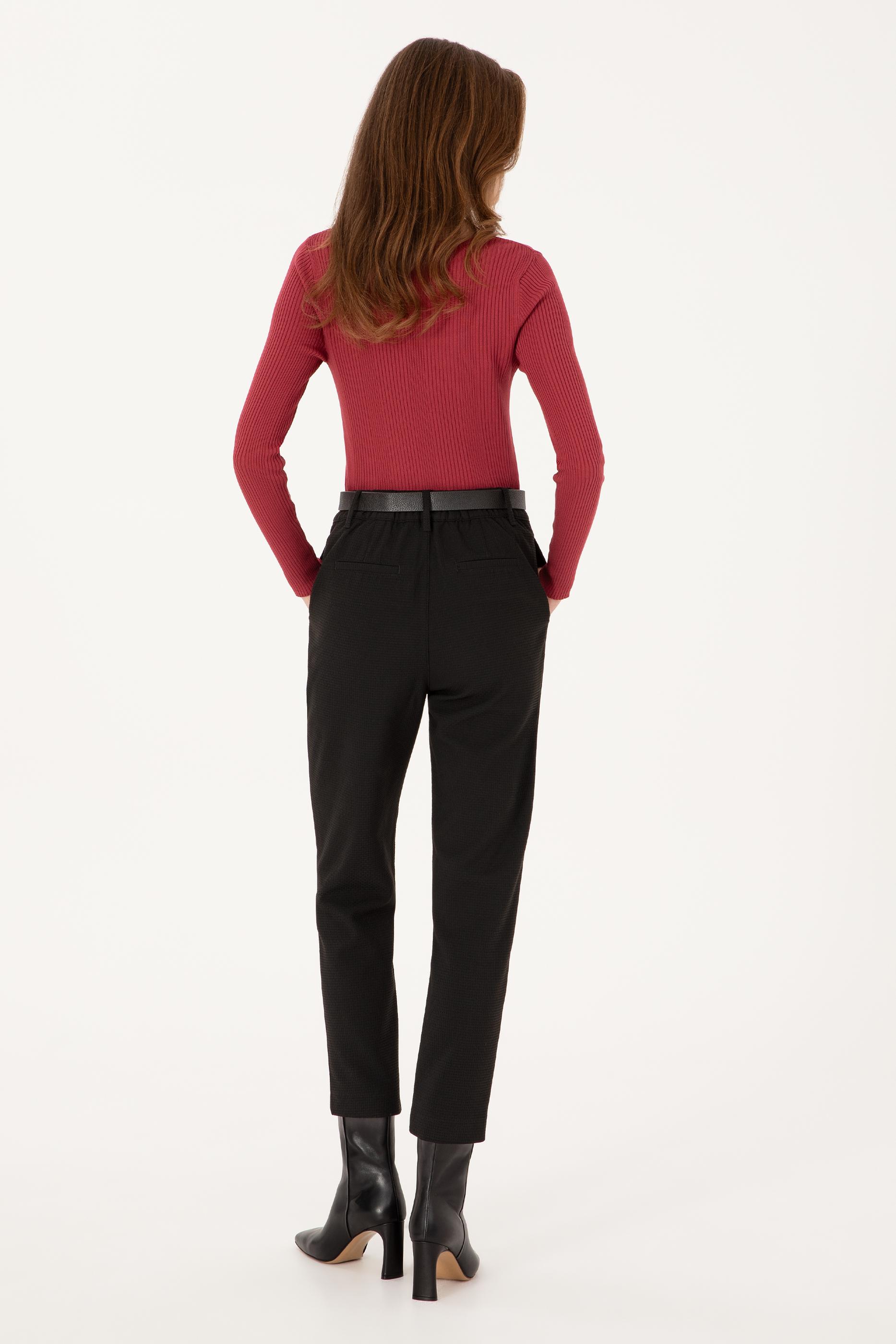 - Kadın Siyah Carrot High Fit Kanvas Pantolon