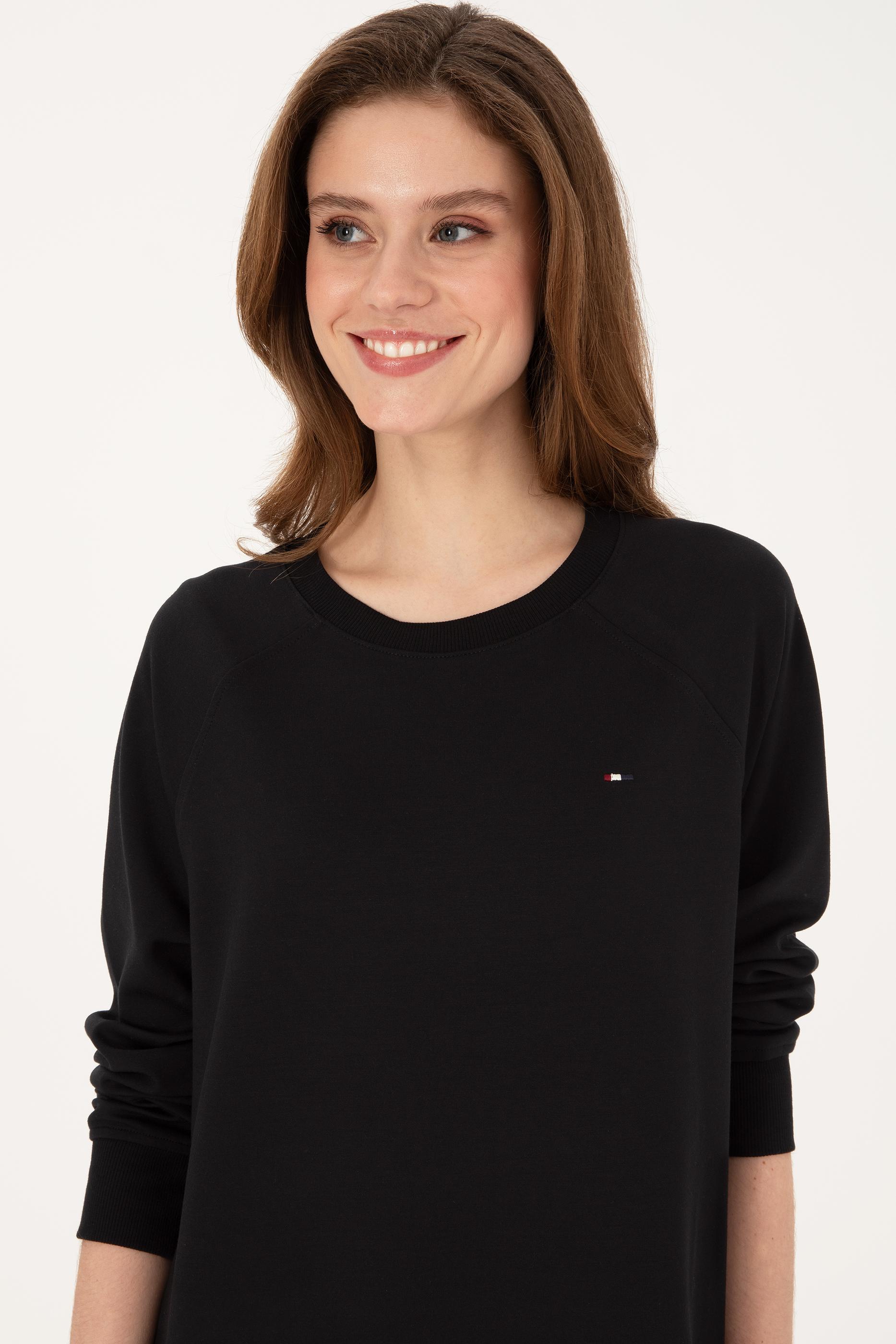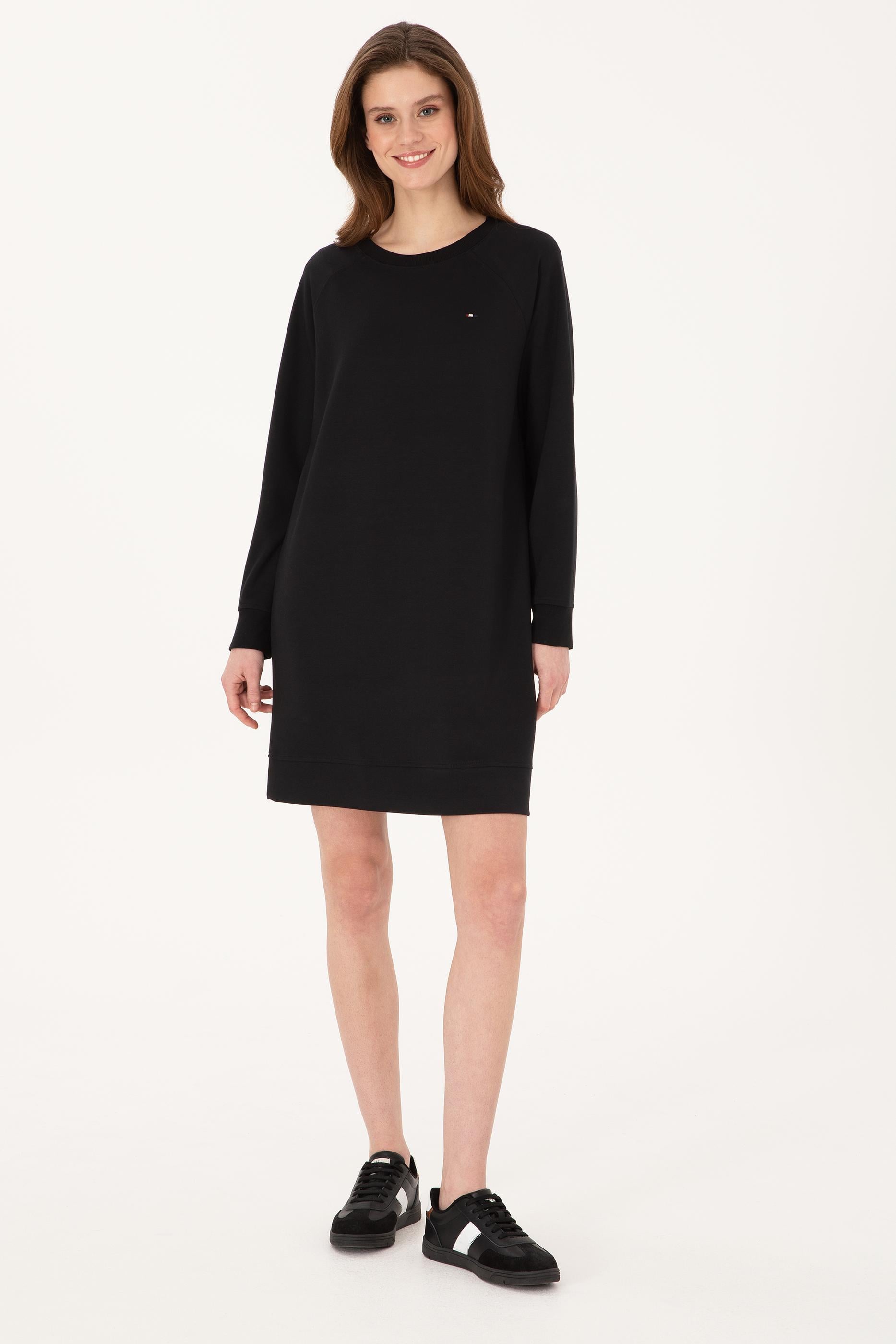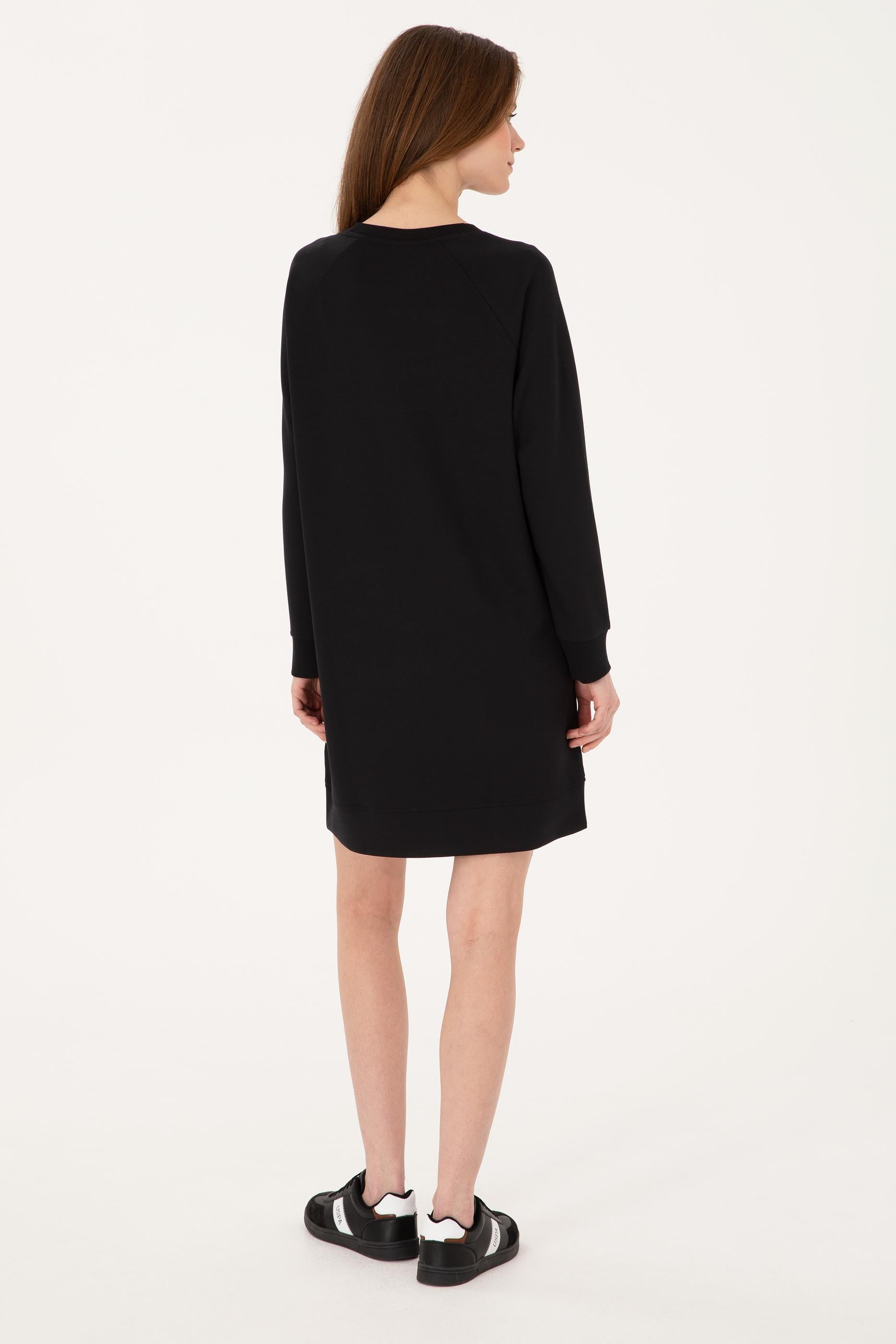 Kadın Siyah Modal Karışımlı Mini Boy Bisiklet Yaka Örme Elbise