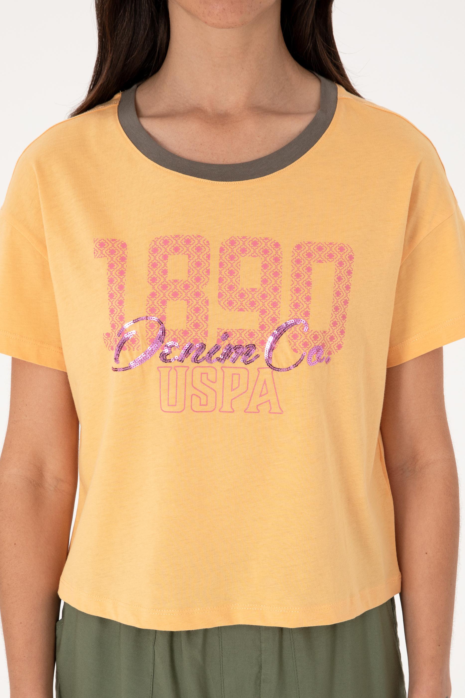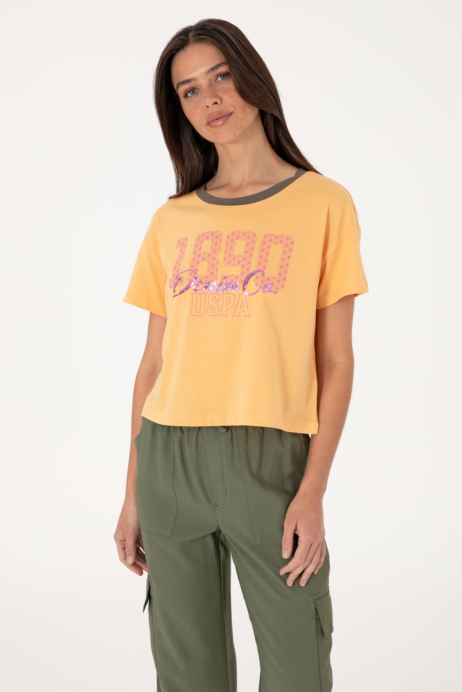 - Kadın Turuncu Bisiklet Yaka Tişört