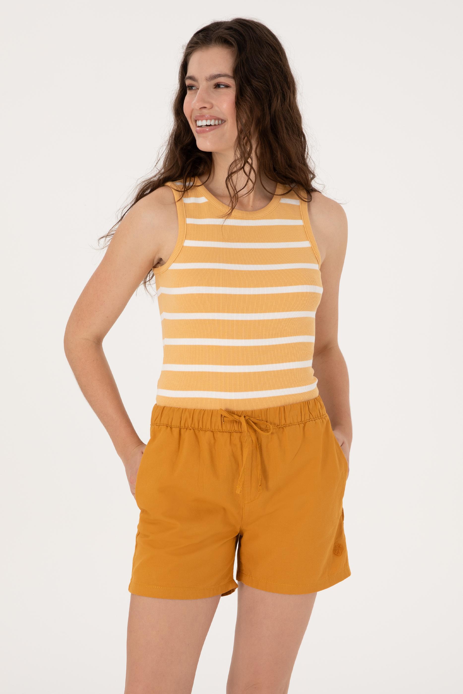 - Kadın Turuncu Çizgili Kolsuz Bisiklet Yaka Tişört