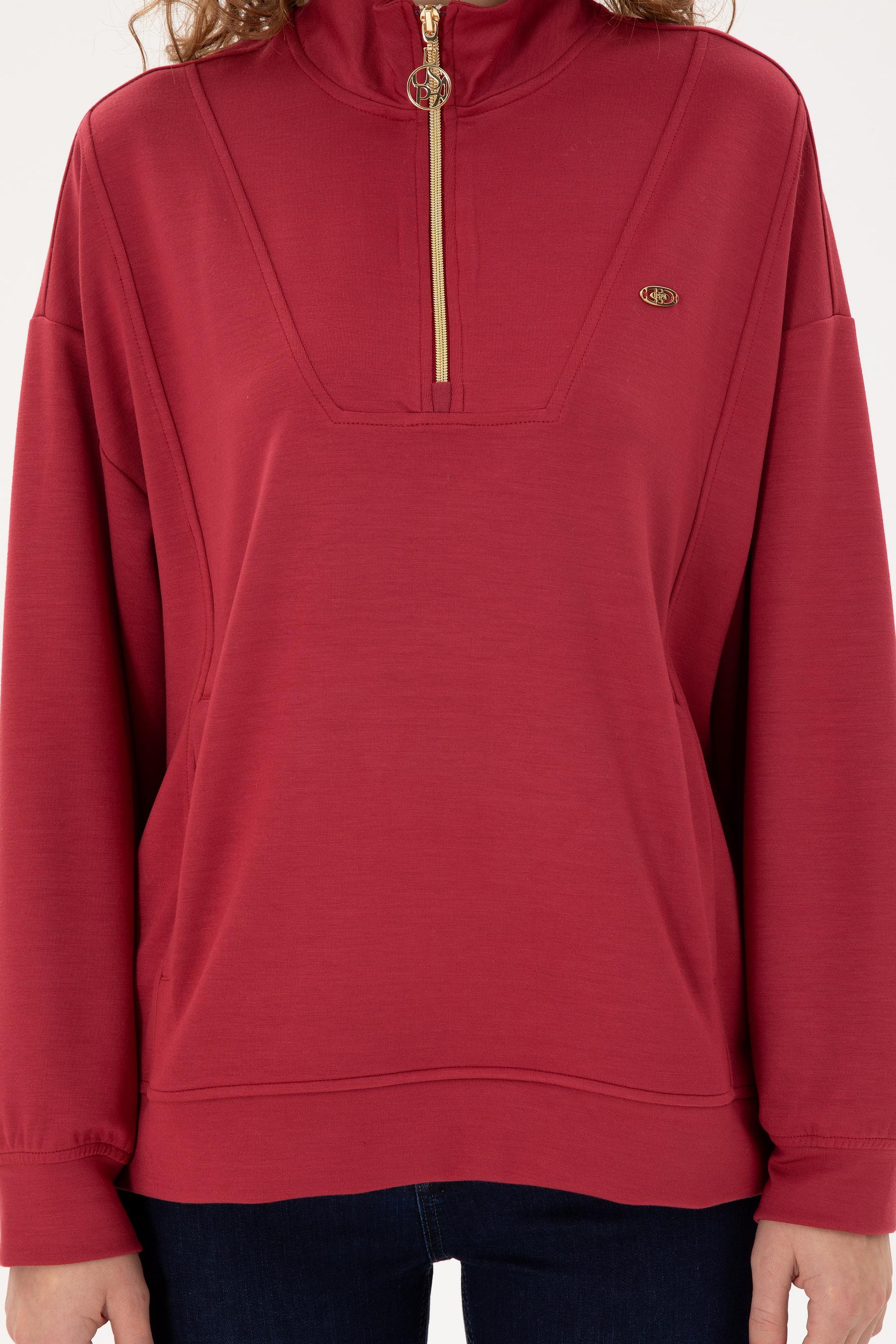 - Kadın Vişne Fermuarlı Sweatshirt