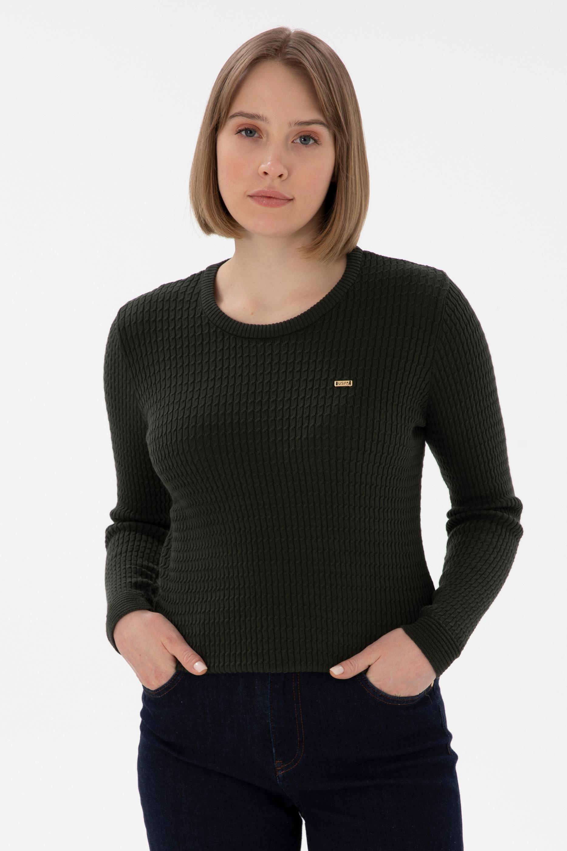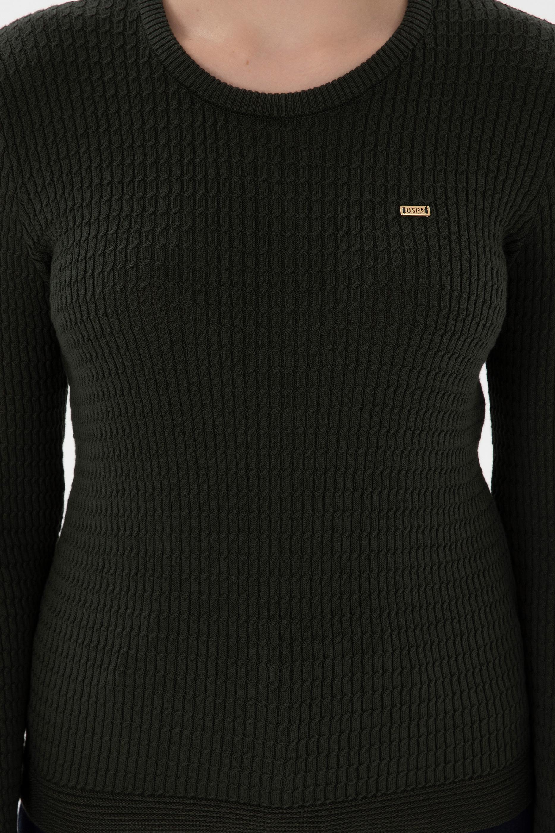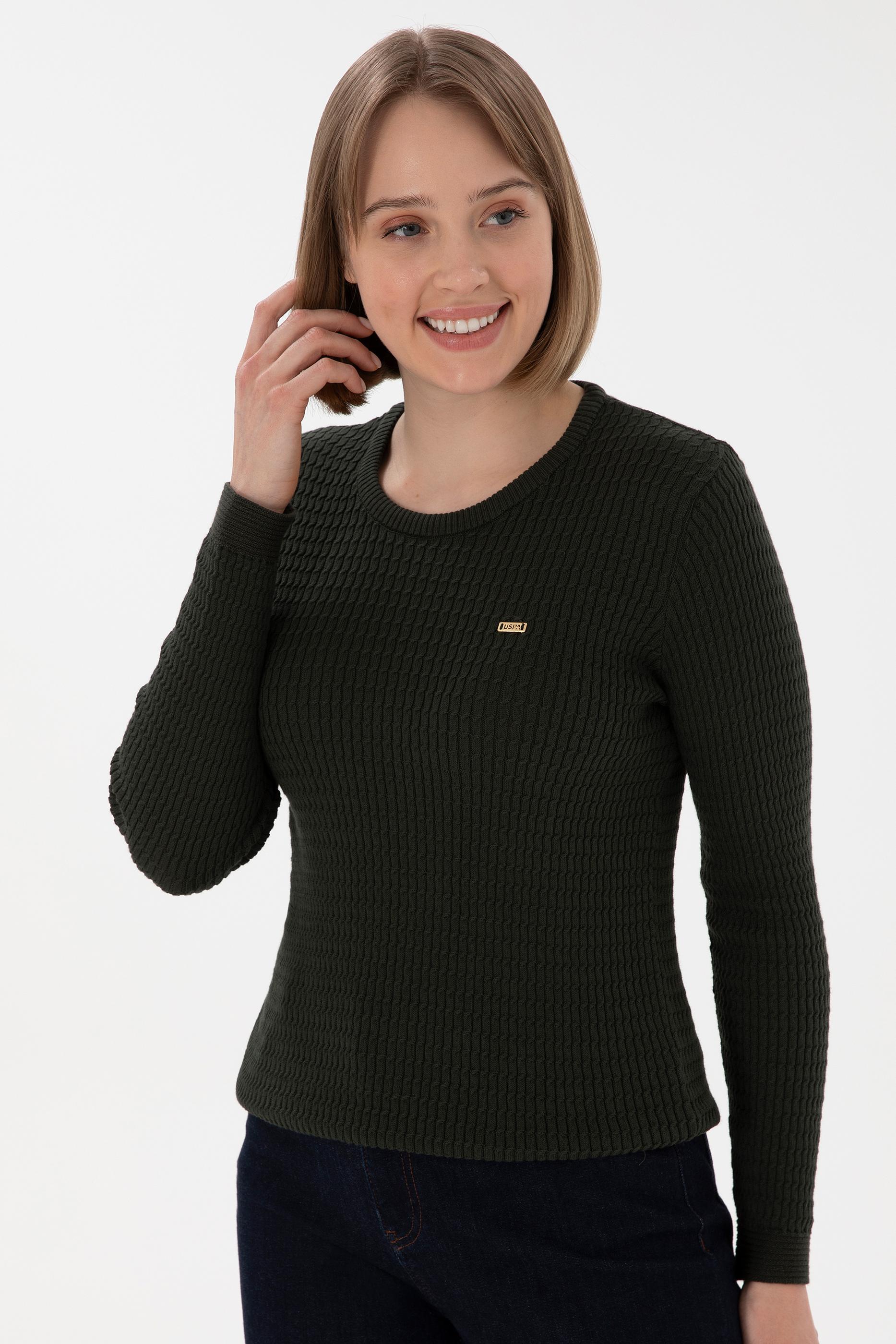 Kadın Yeşil Bisiklet Yaka Basic Kazak