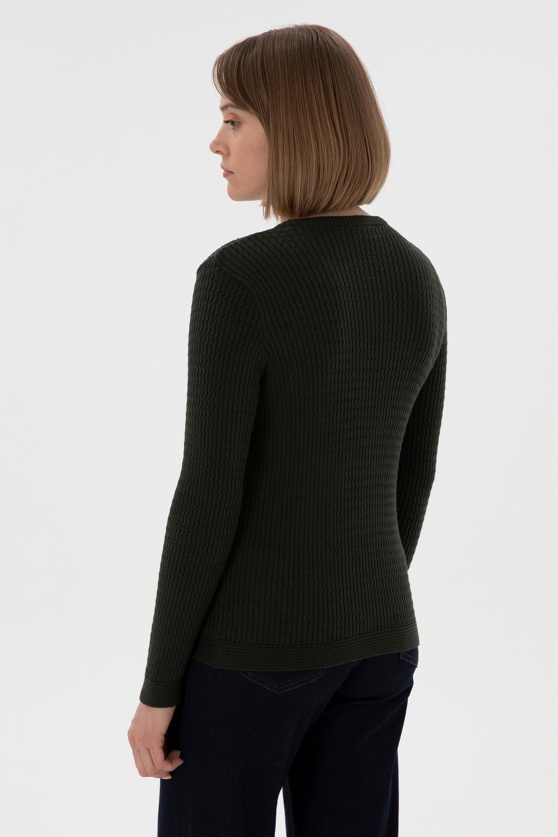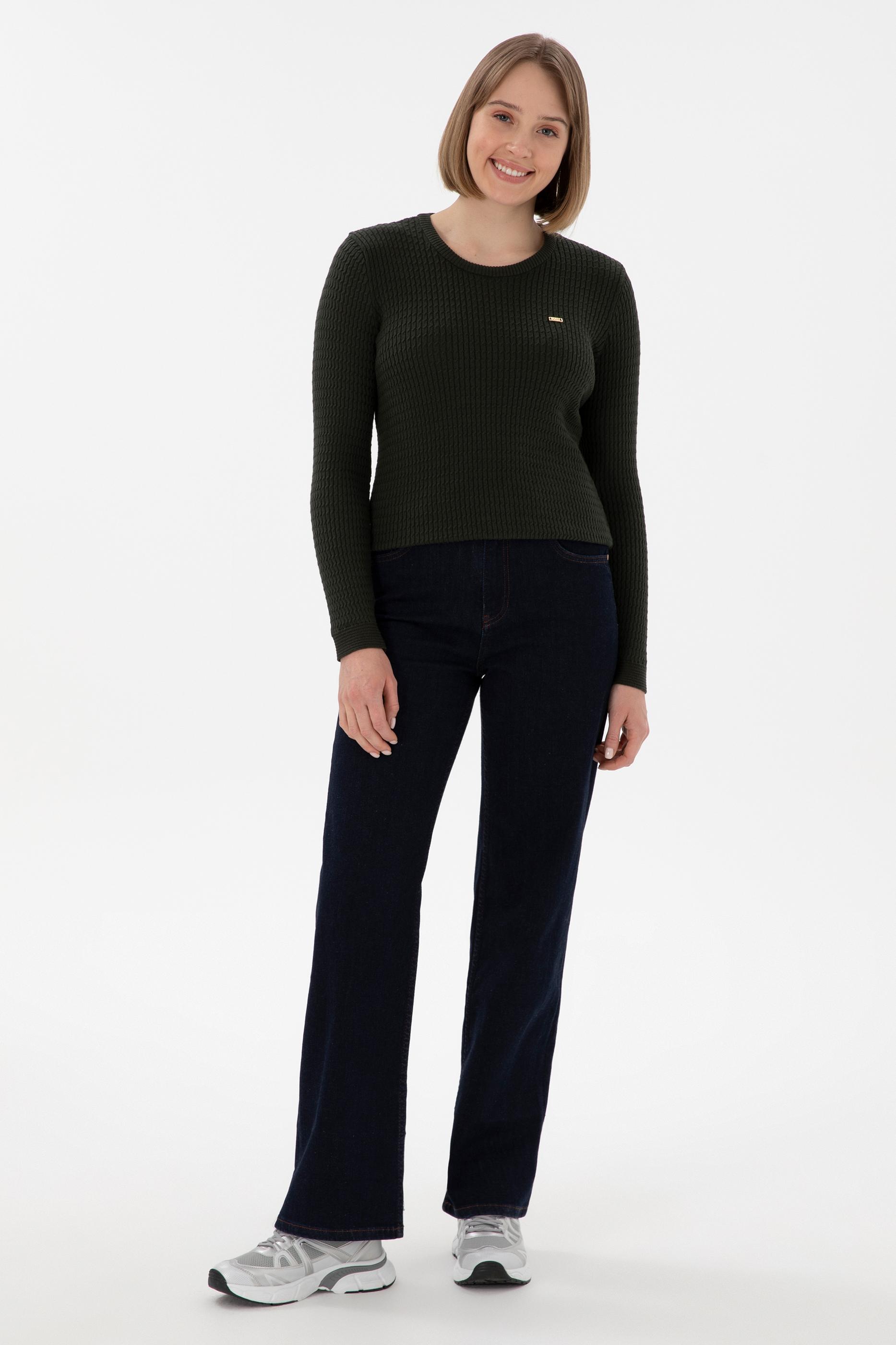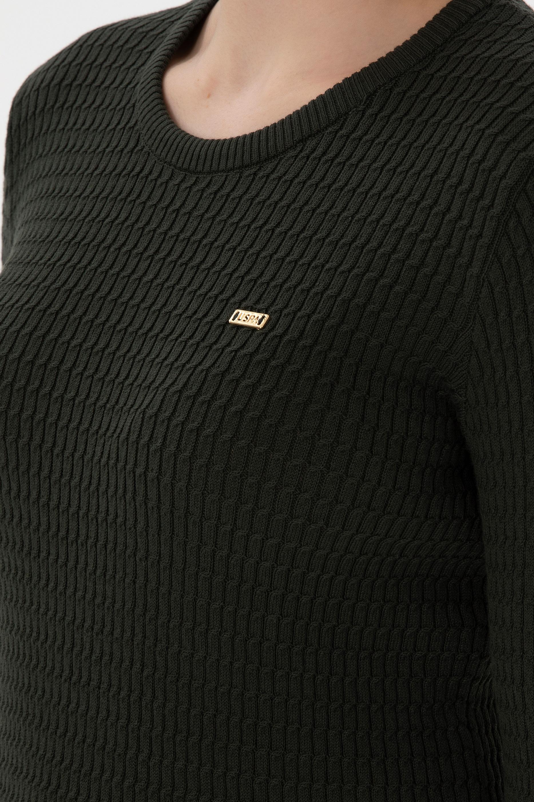 Kadın Yeşil Bisiklet Yaka Basic Kazak