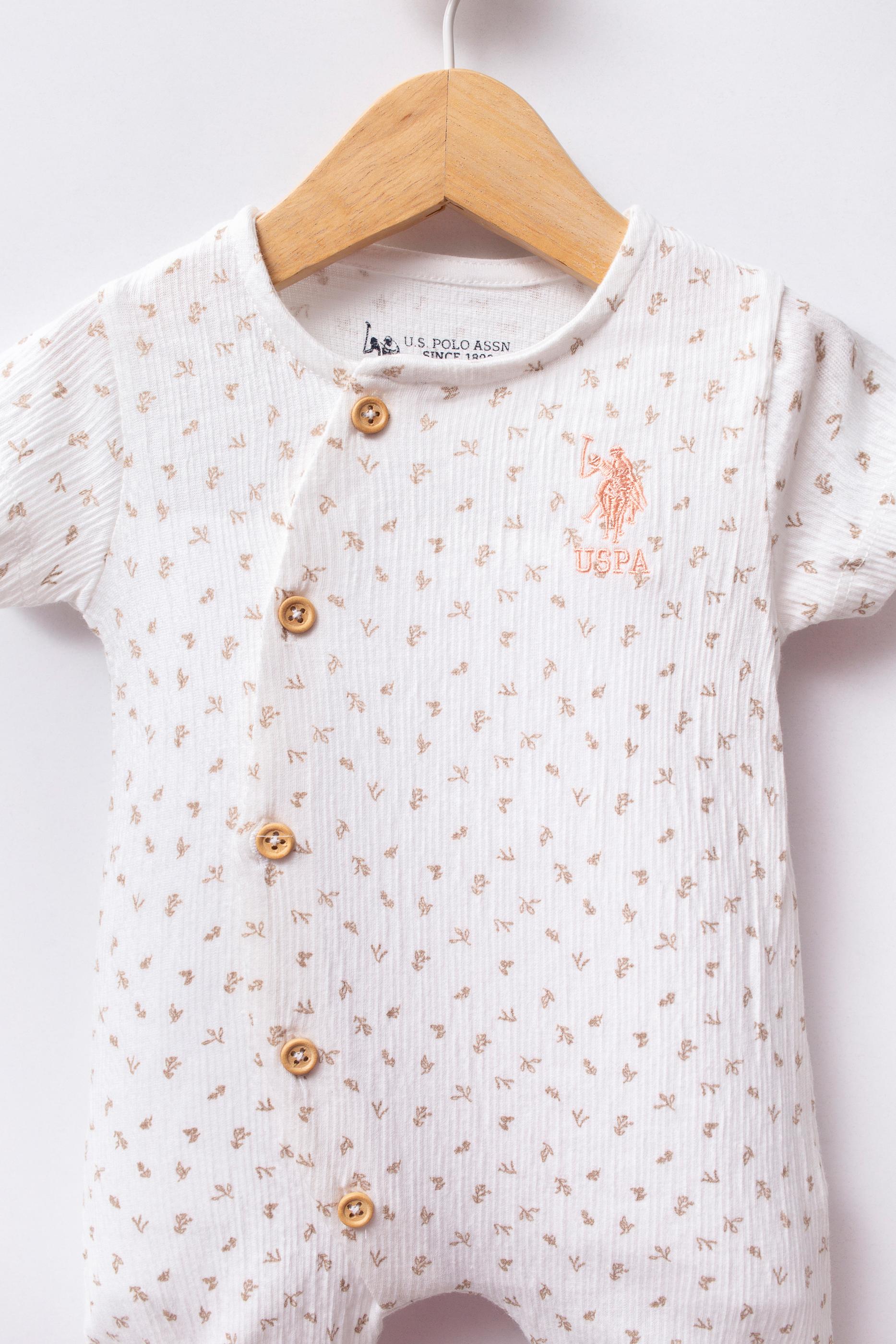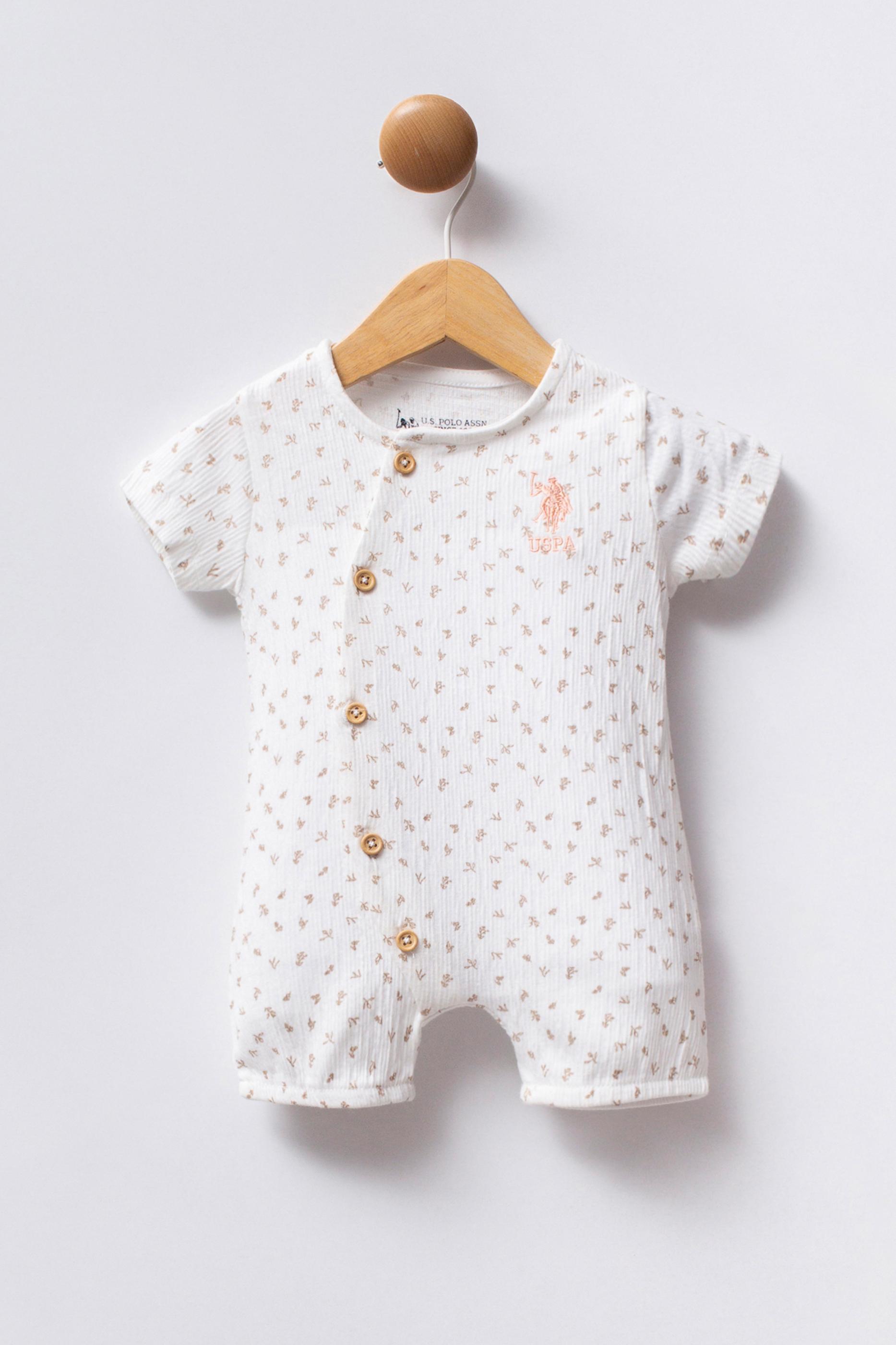 Kız Bebek Beyaz Minimal Çiçek Desenli Kısa Tulum