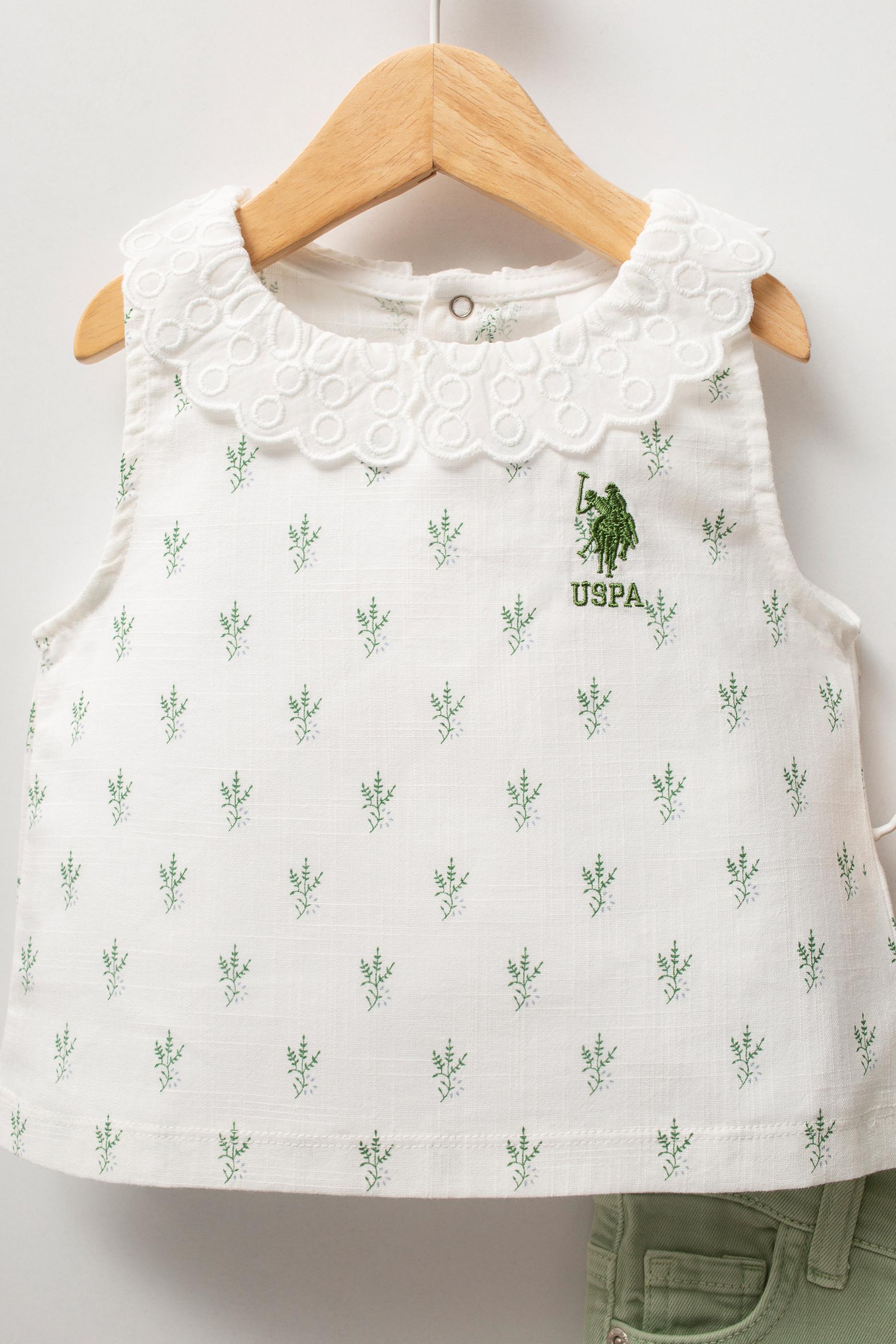 Kız Bebek Su Yeşili Çiçek Desenli Dantel Yaka Tişört Jean Pantolon Takım 2'li