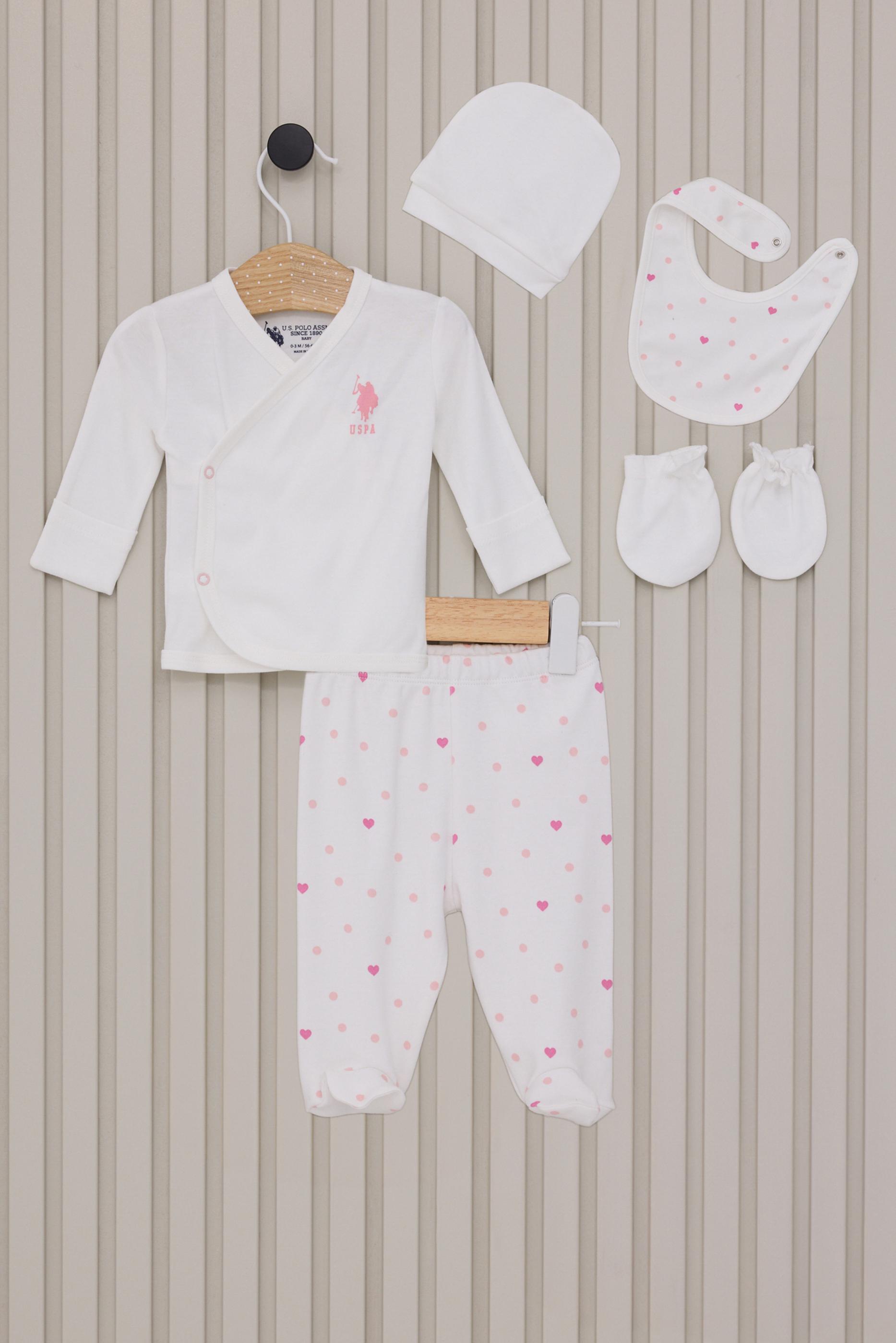 - Kız Bebek Beyaz Hastane Çıkışı %100 Pamuk 5'li Zıbın Set