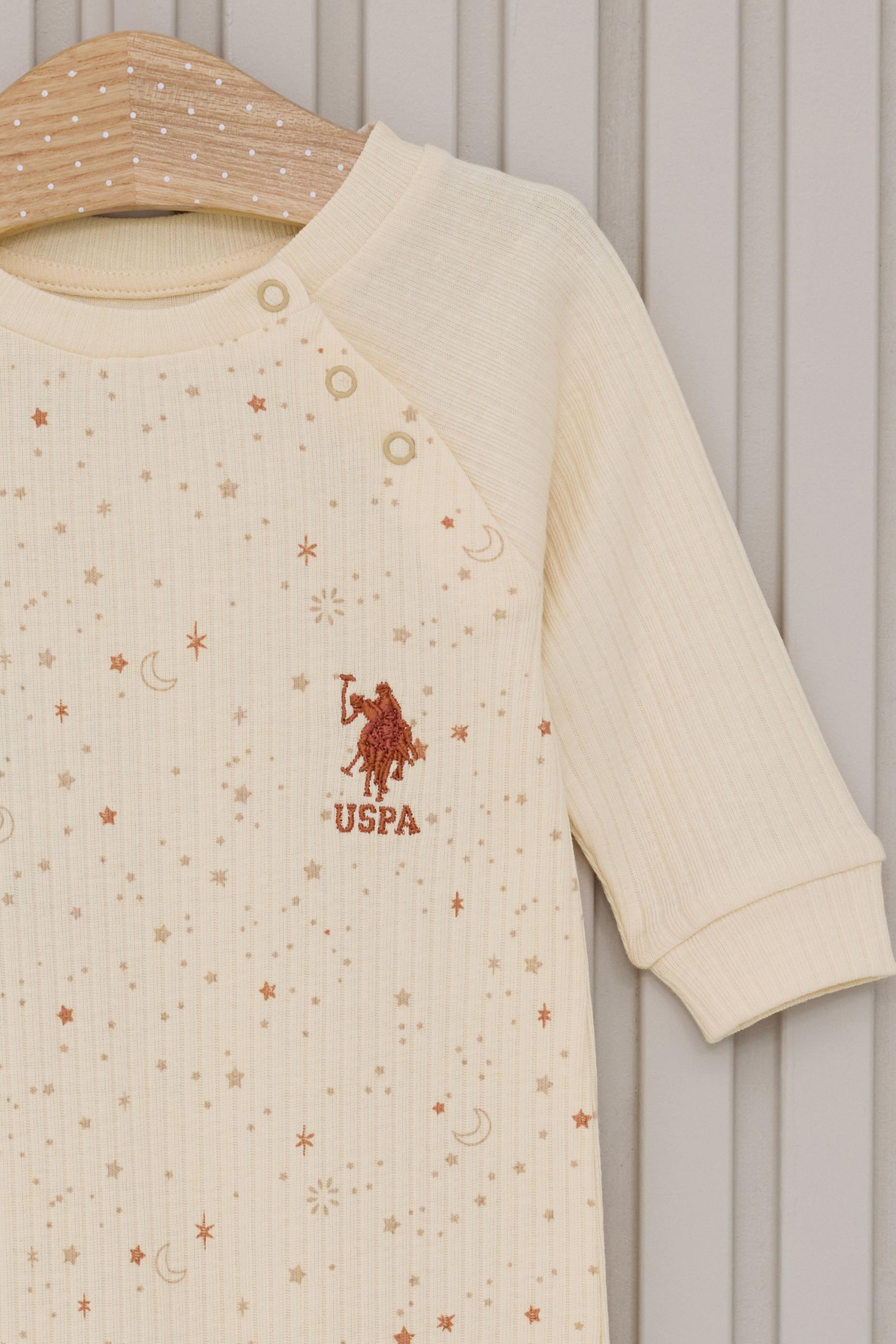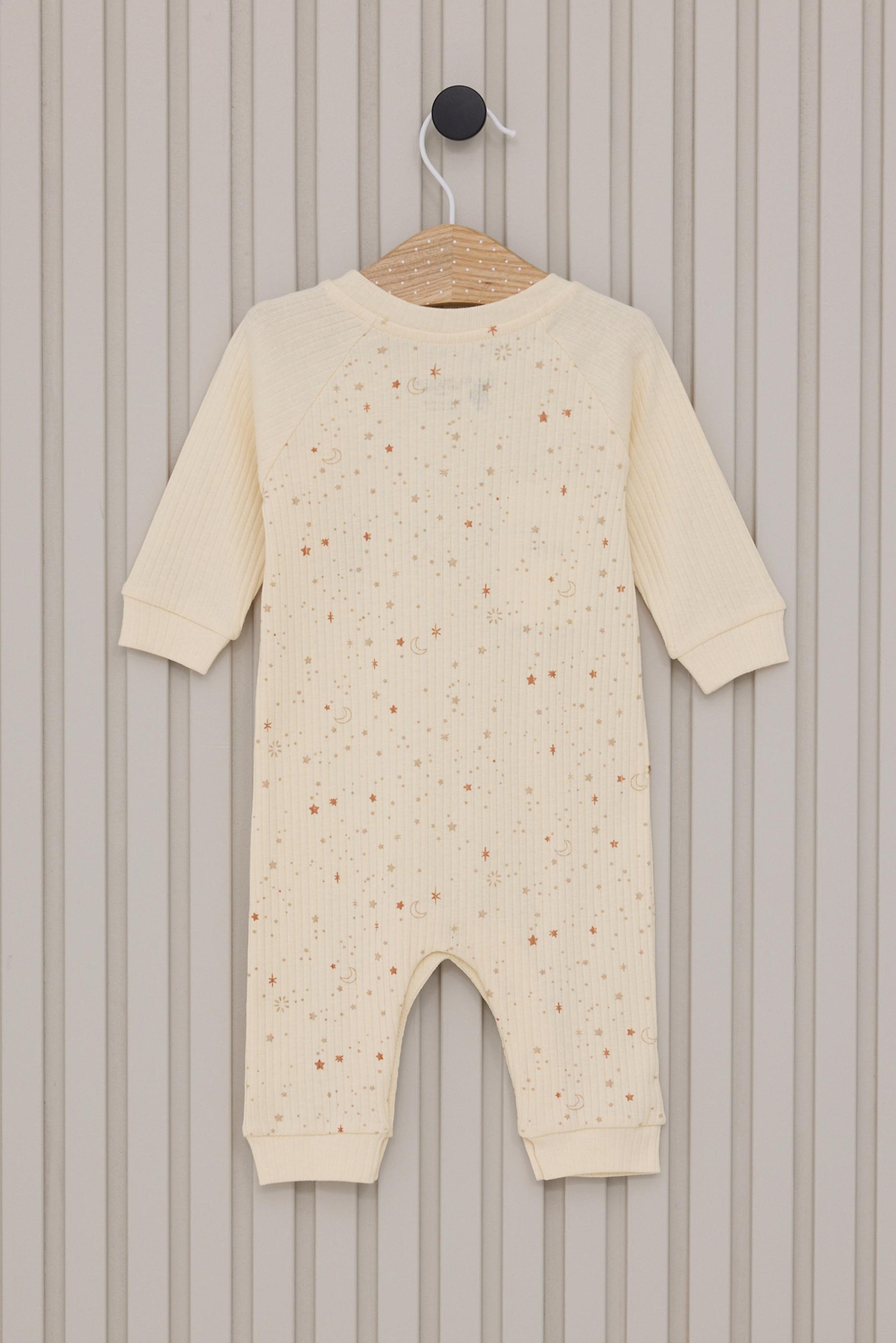 Kız Bebek Krem Patlı Gökyüzü Desenli Fitilli %100 Pamuk Tulum