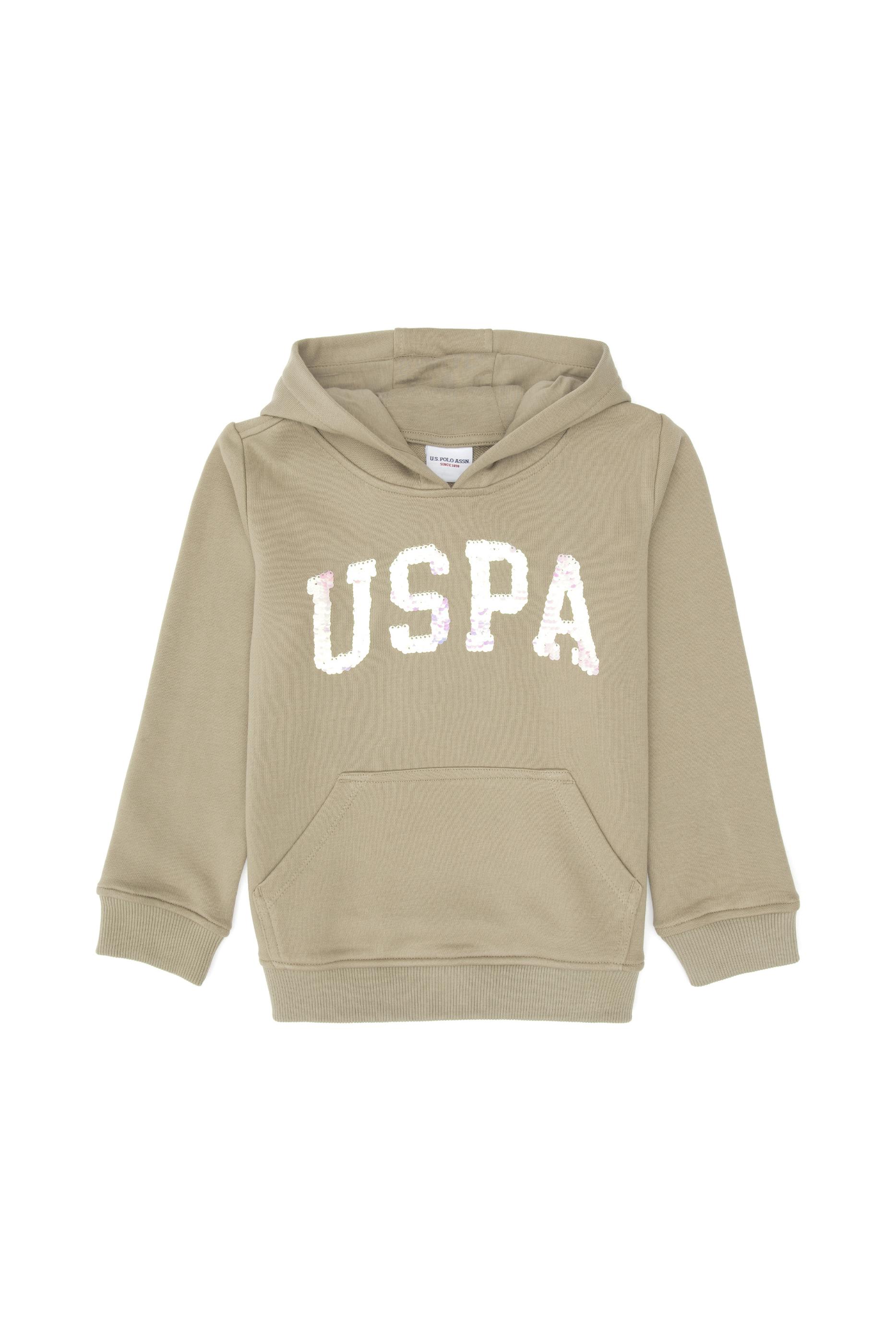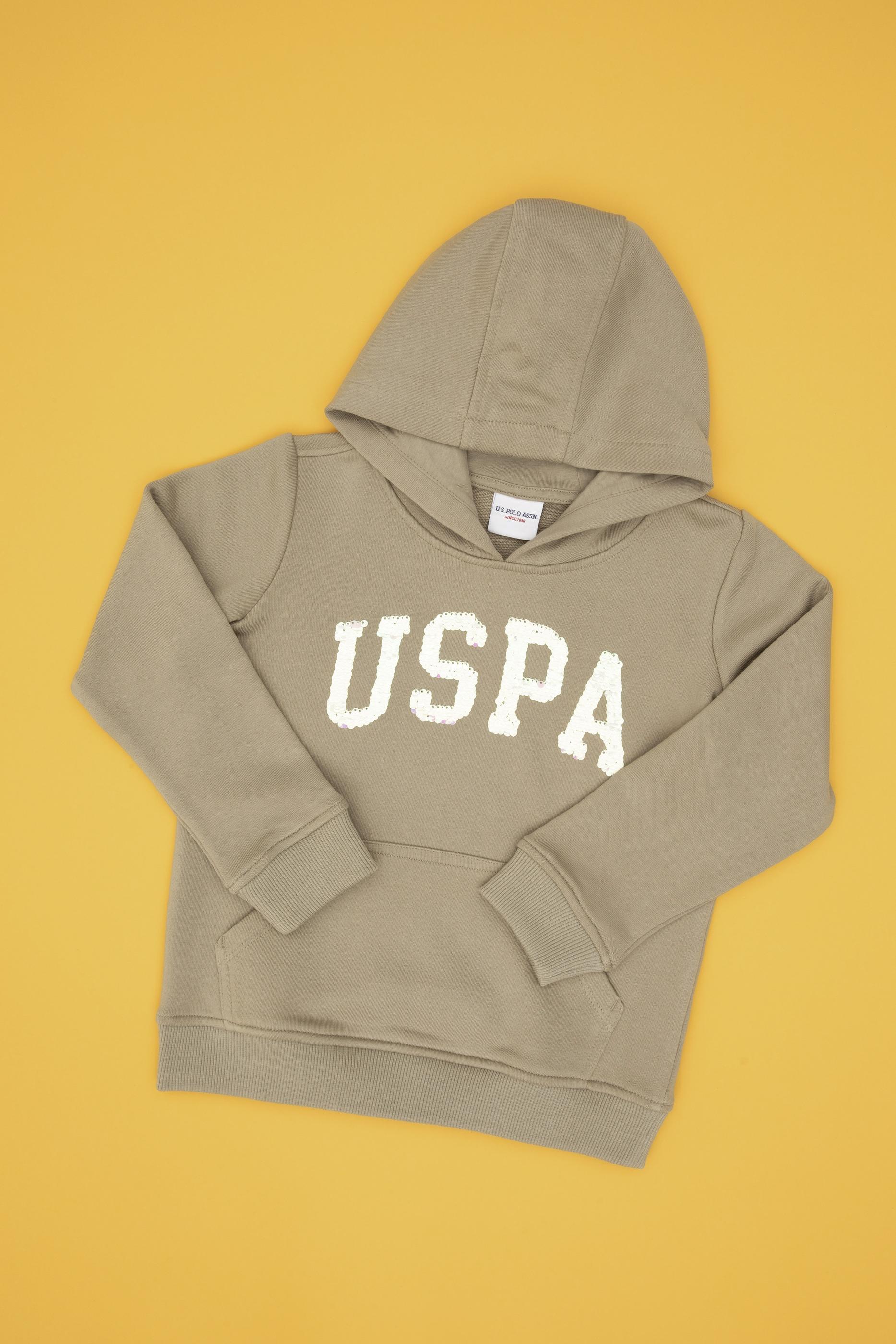 - Kız Çocuk Açık Haki Payet İşlemeli Kapüşonlu Basic Sweatshirt