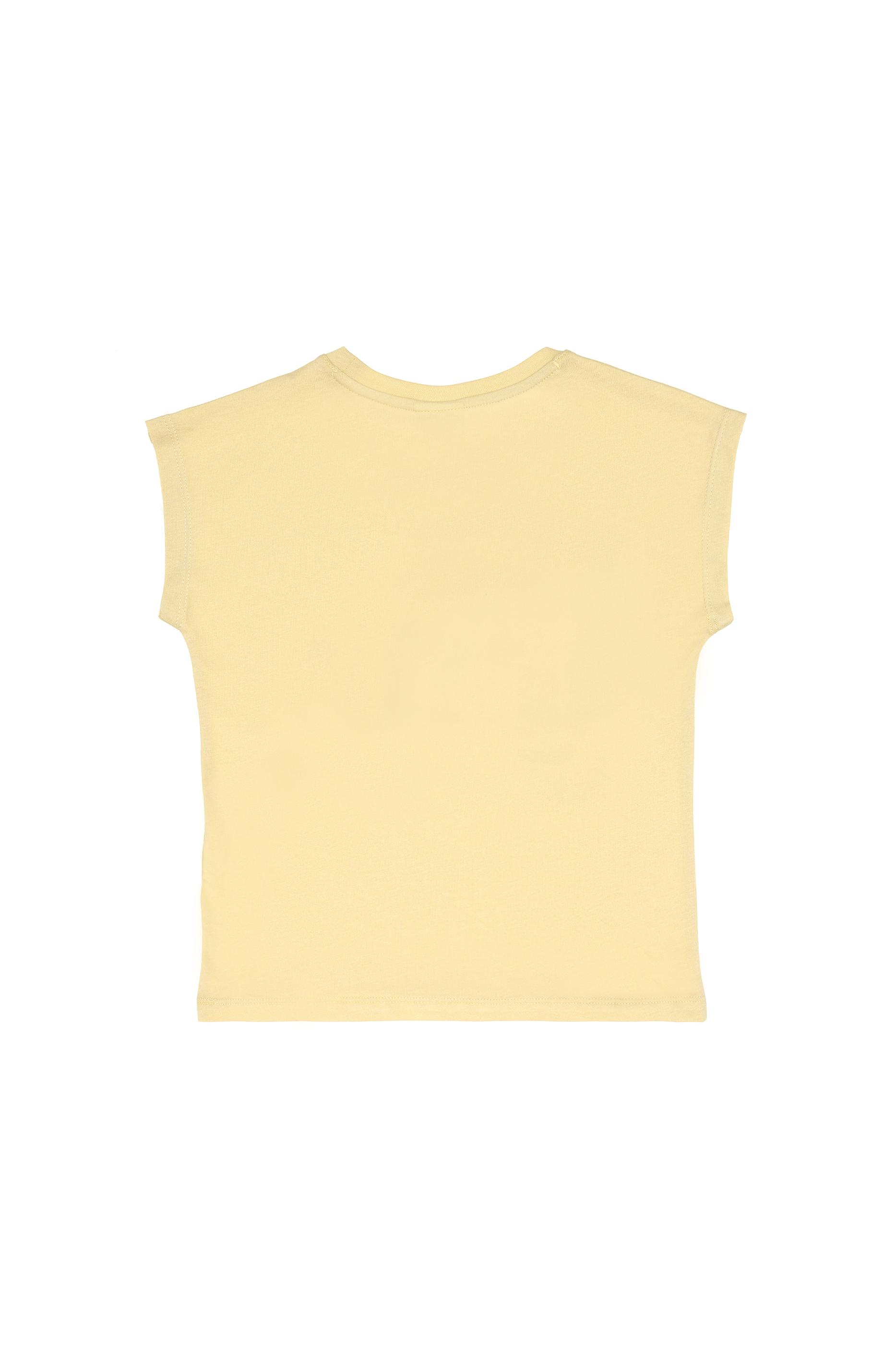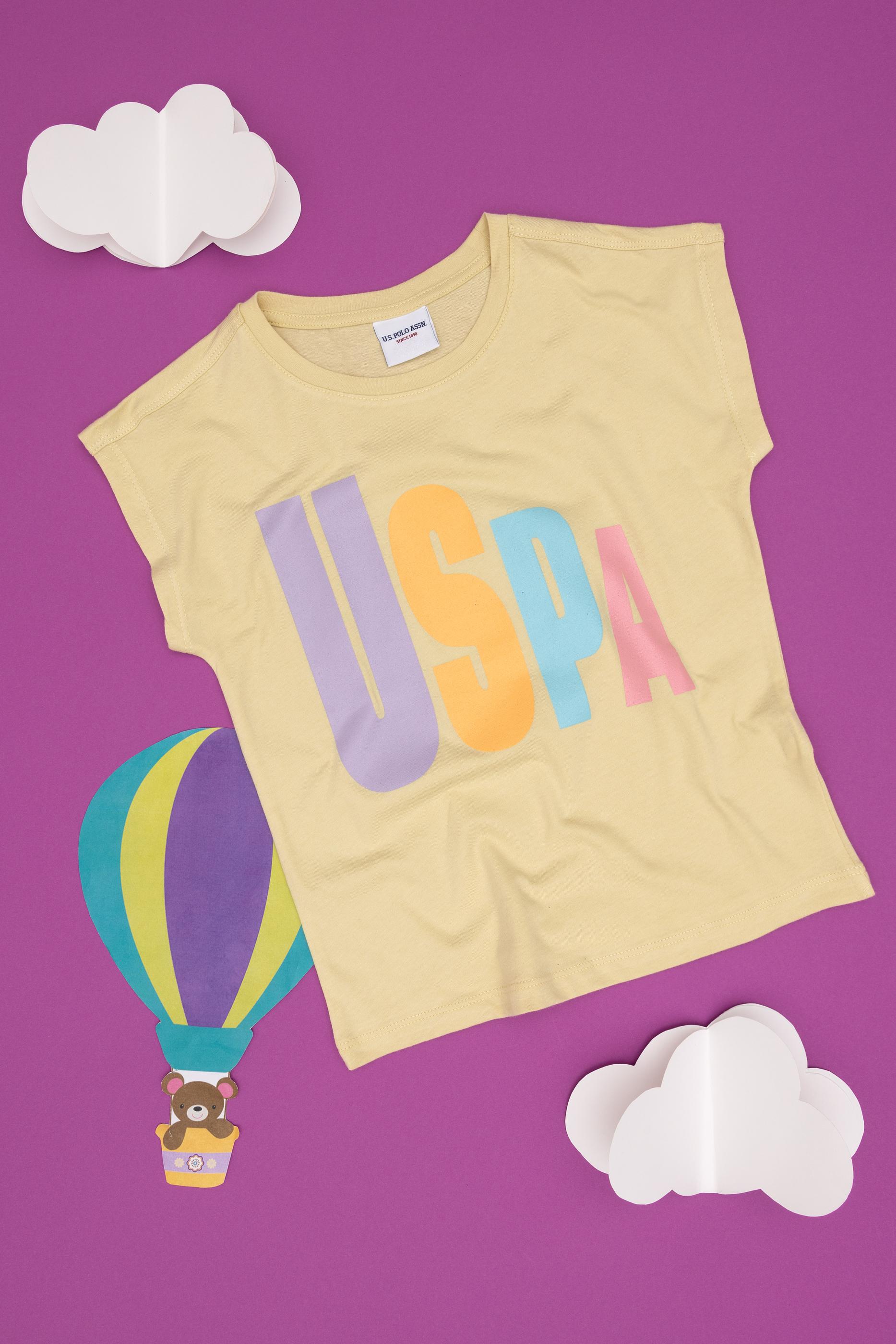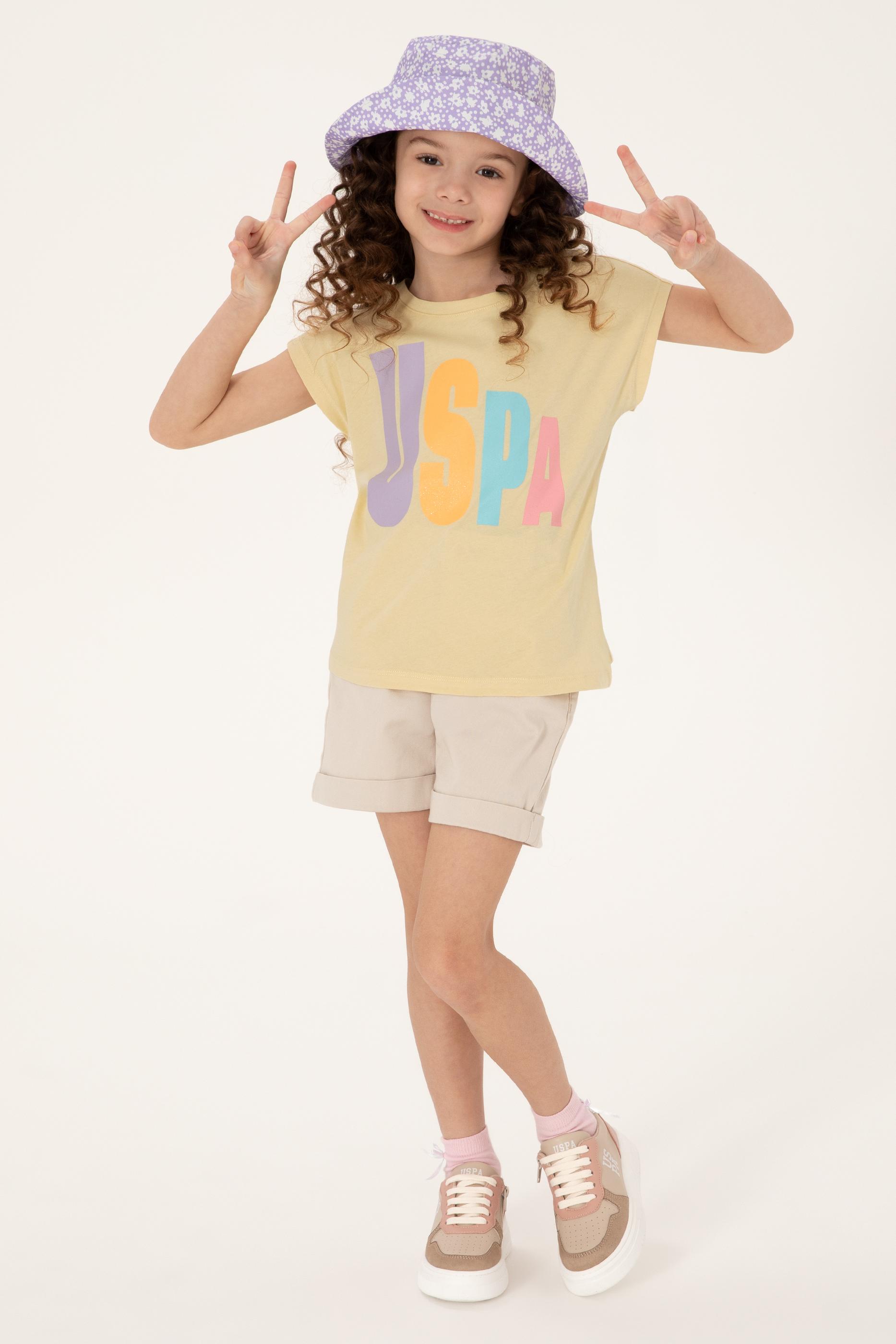 Kız Çocuk Açık Haki Bisiklet Yaka Pamuk Renkli Uspa Baskılı Tişört