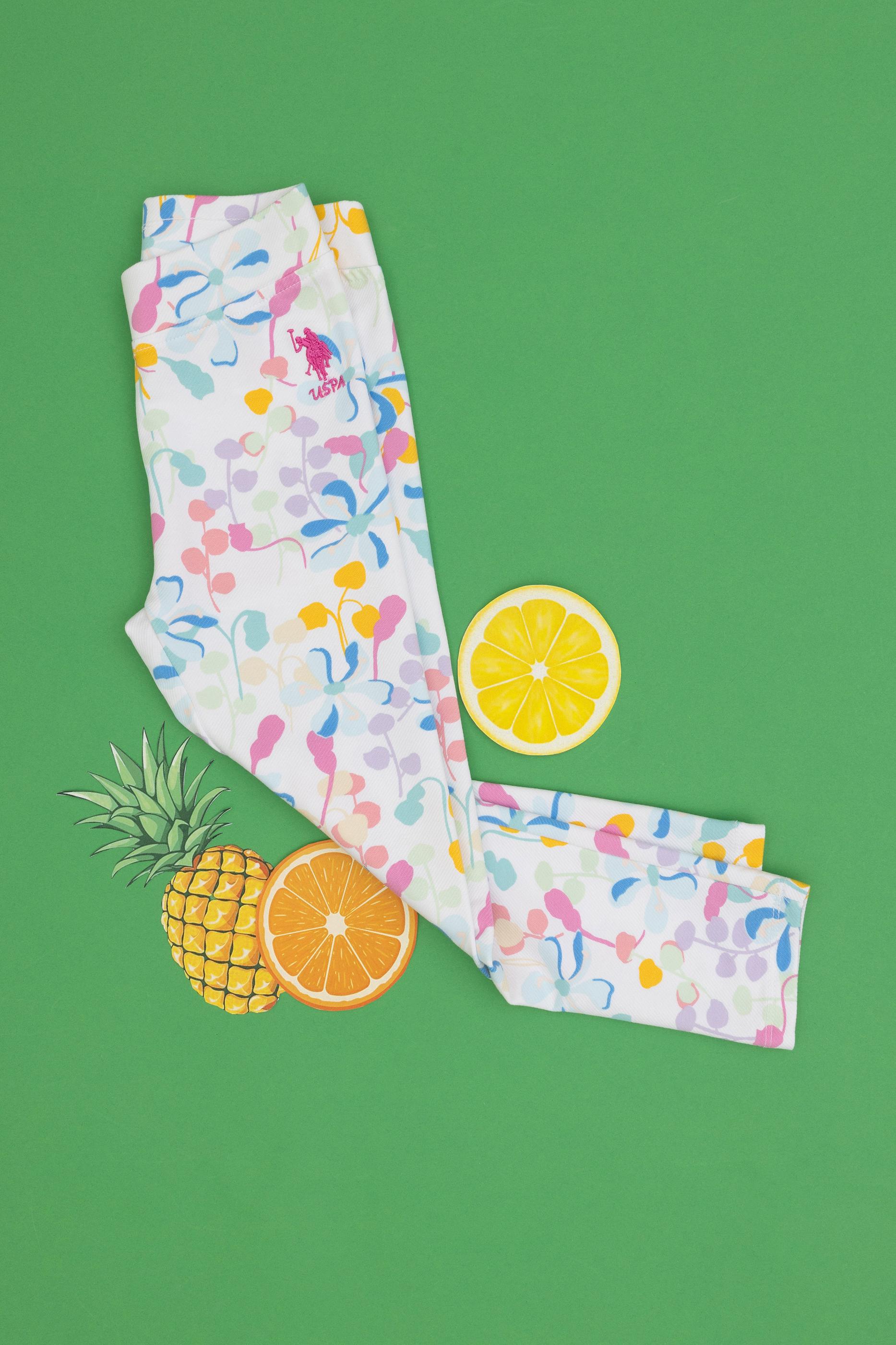 - Kız Çocuk Beyaz Çiçek Desenli Eşofman Altı