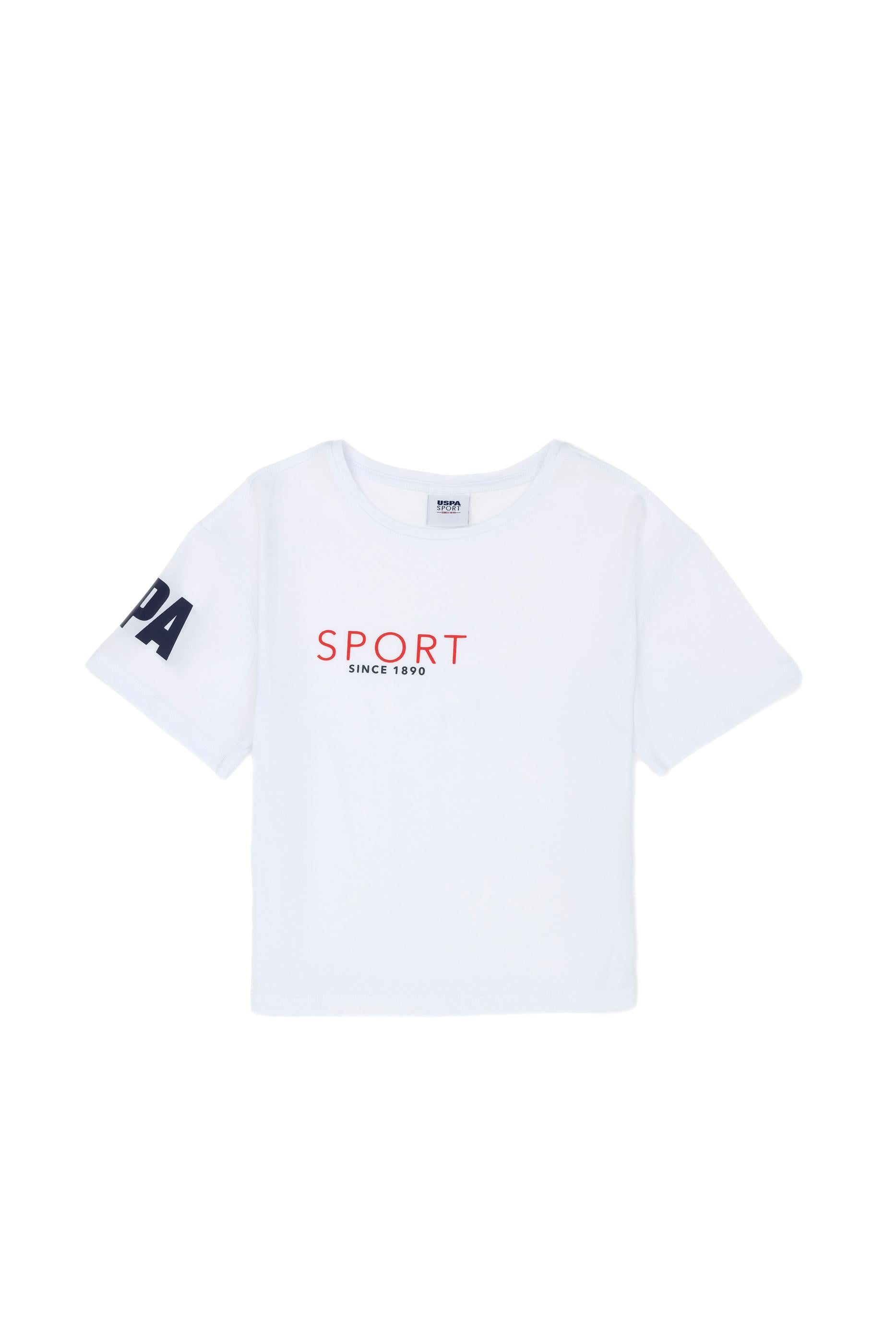 - Kız Çocuk Beyaz Bisiklet Yaka Tişört