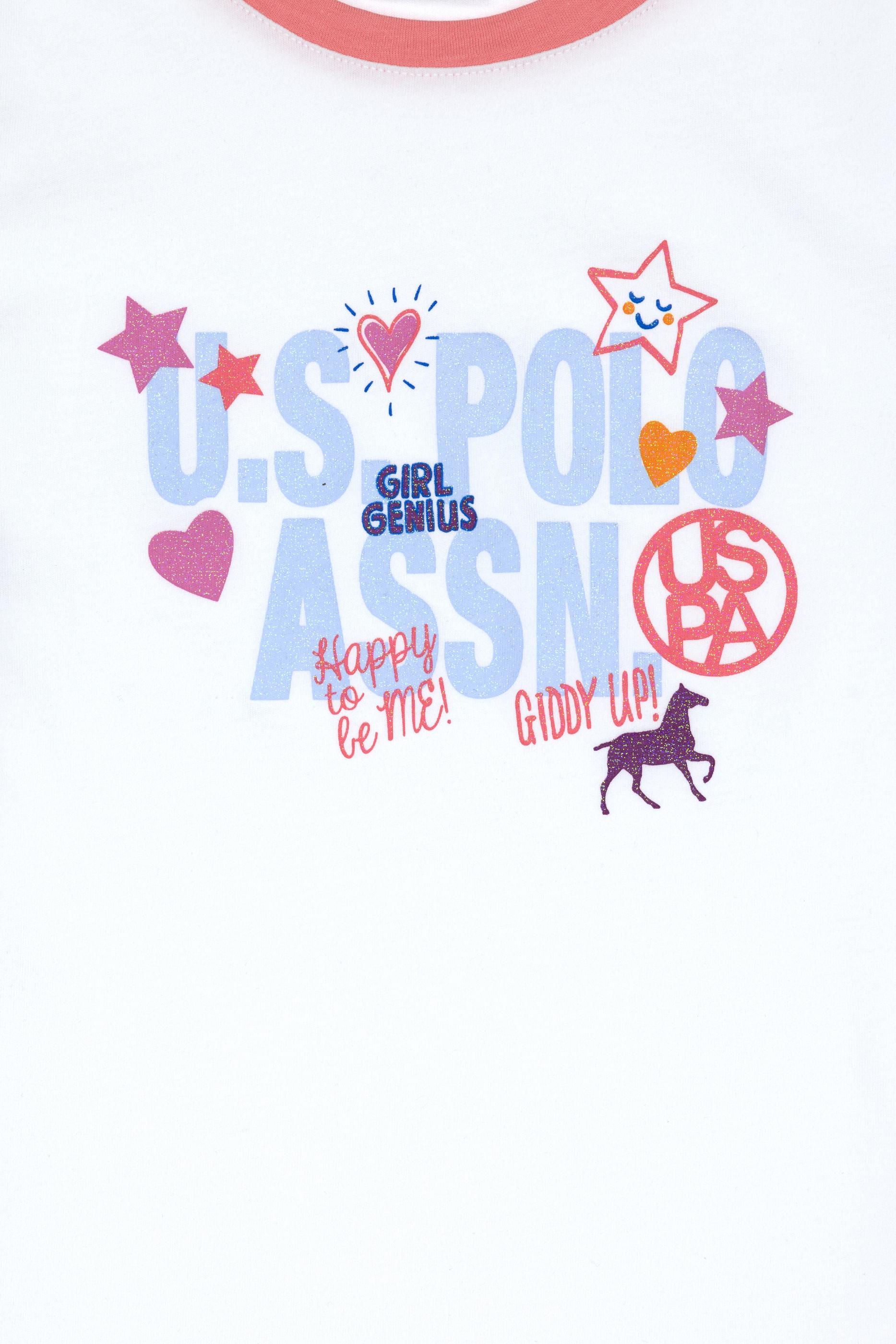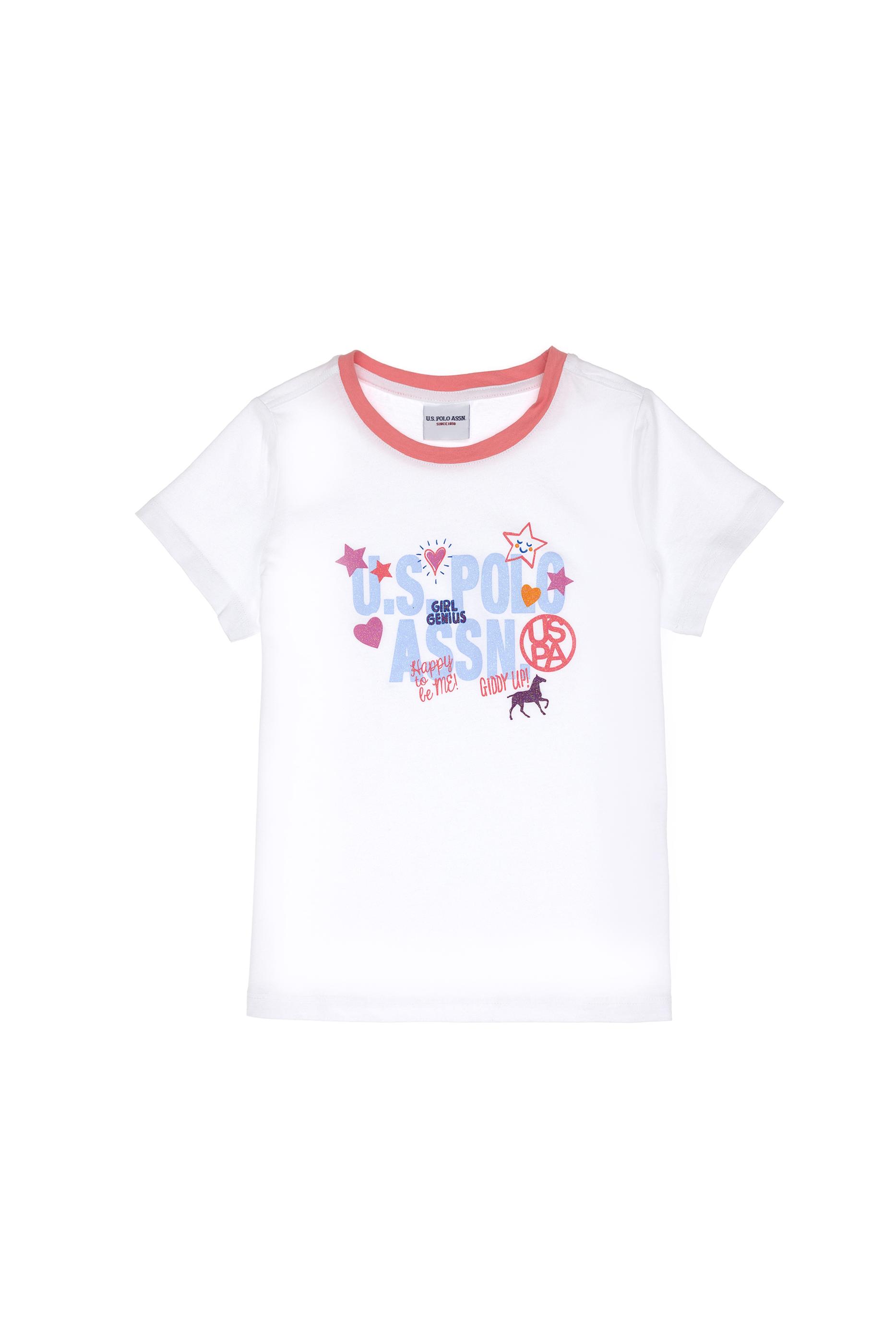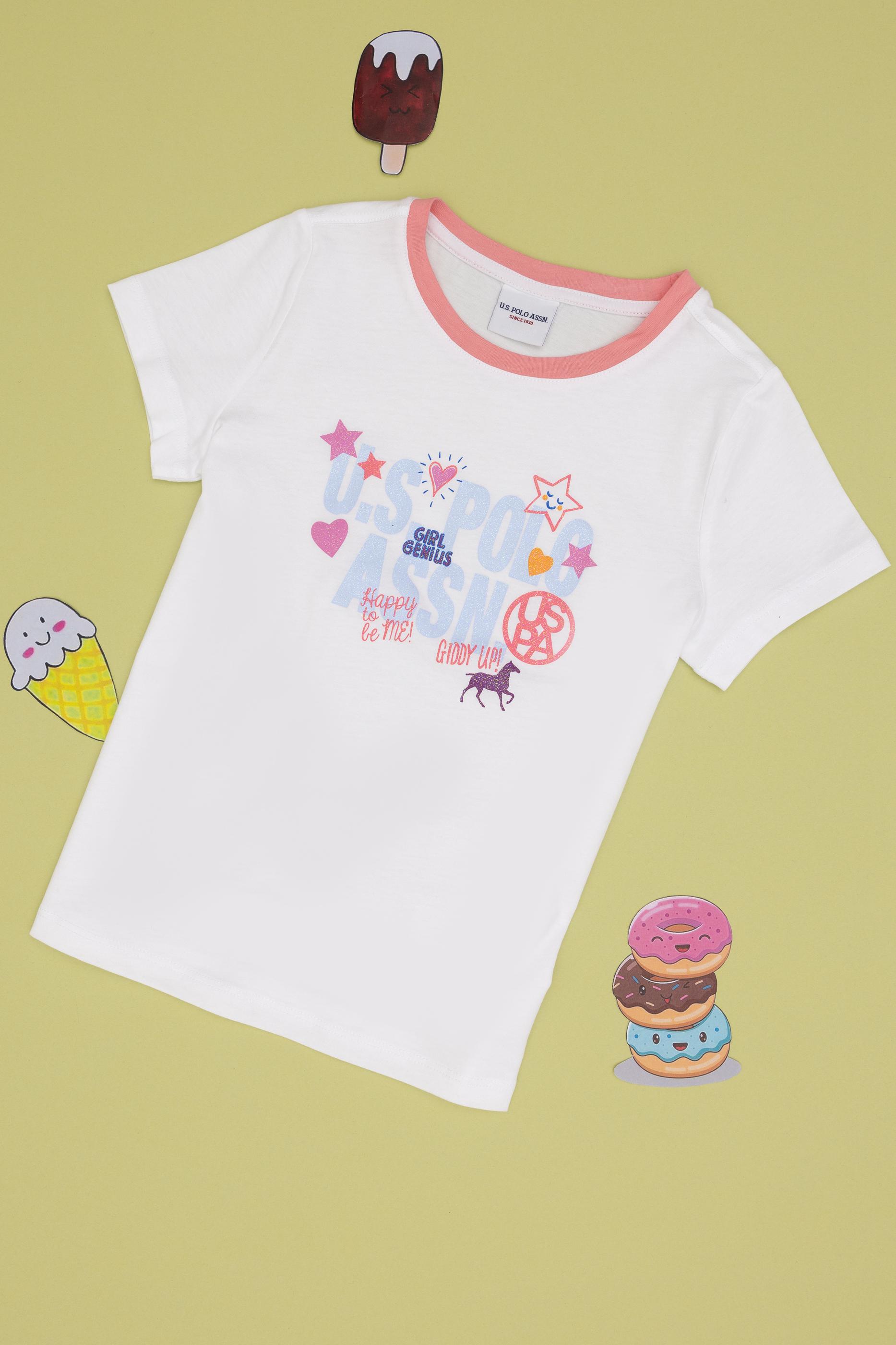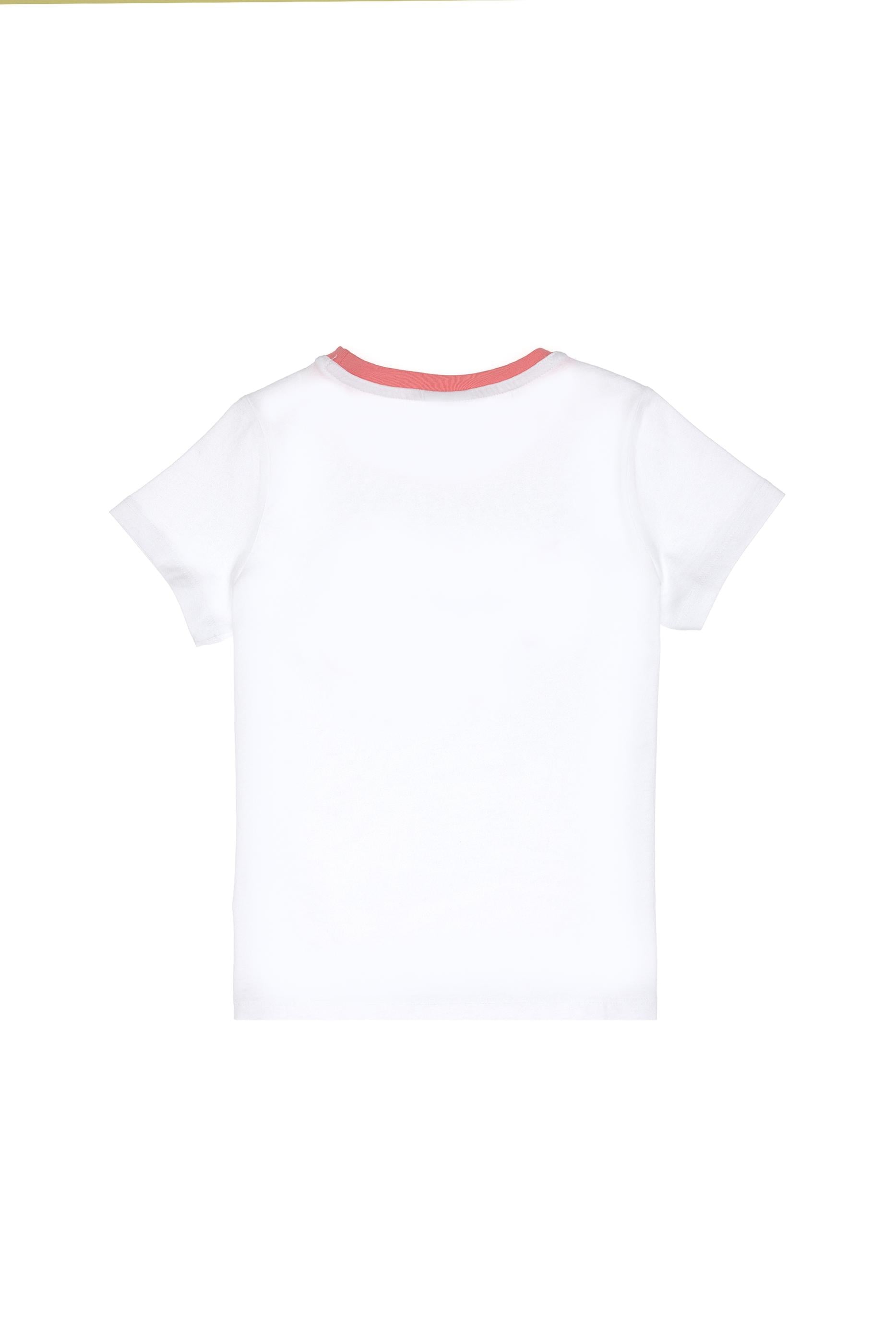 Kız Çocuk Beyaz Bisiklet Yaka Pamuk Renkli Baskılı Tişört