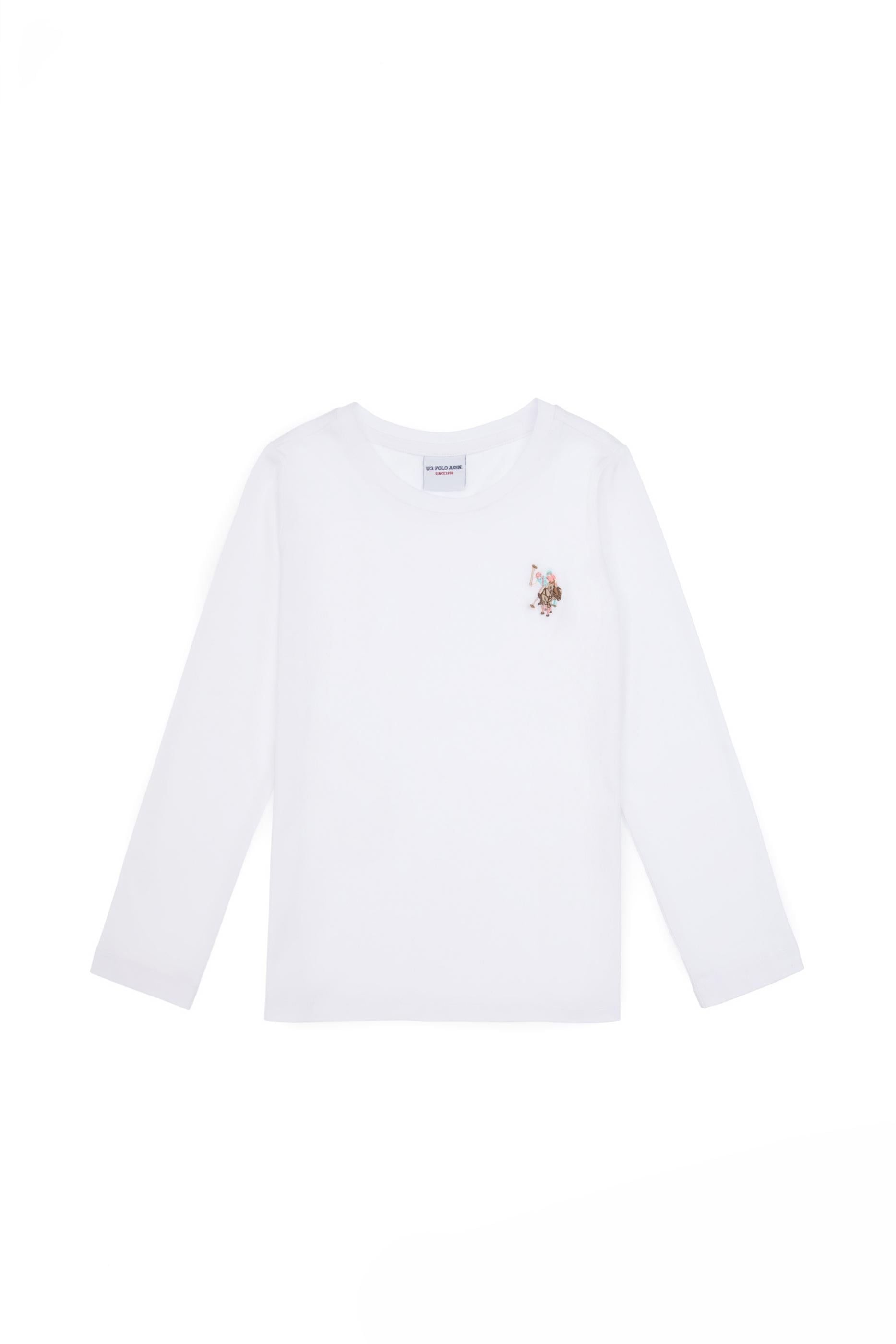 - Kız Çocuk Beyaz Bisiklet Yaka Basic Sweatshirt