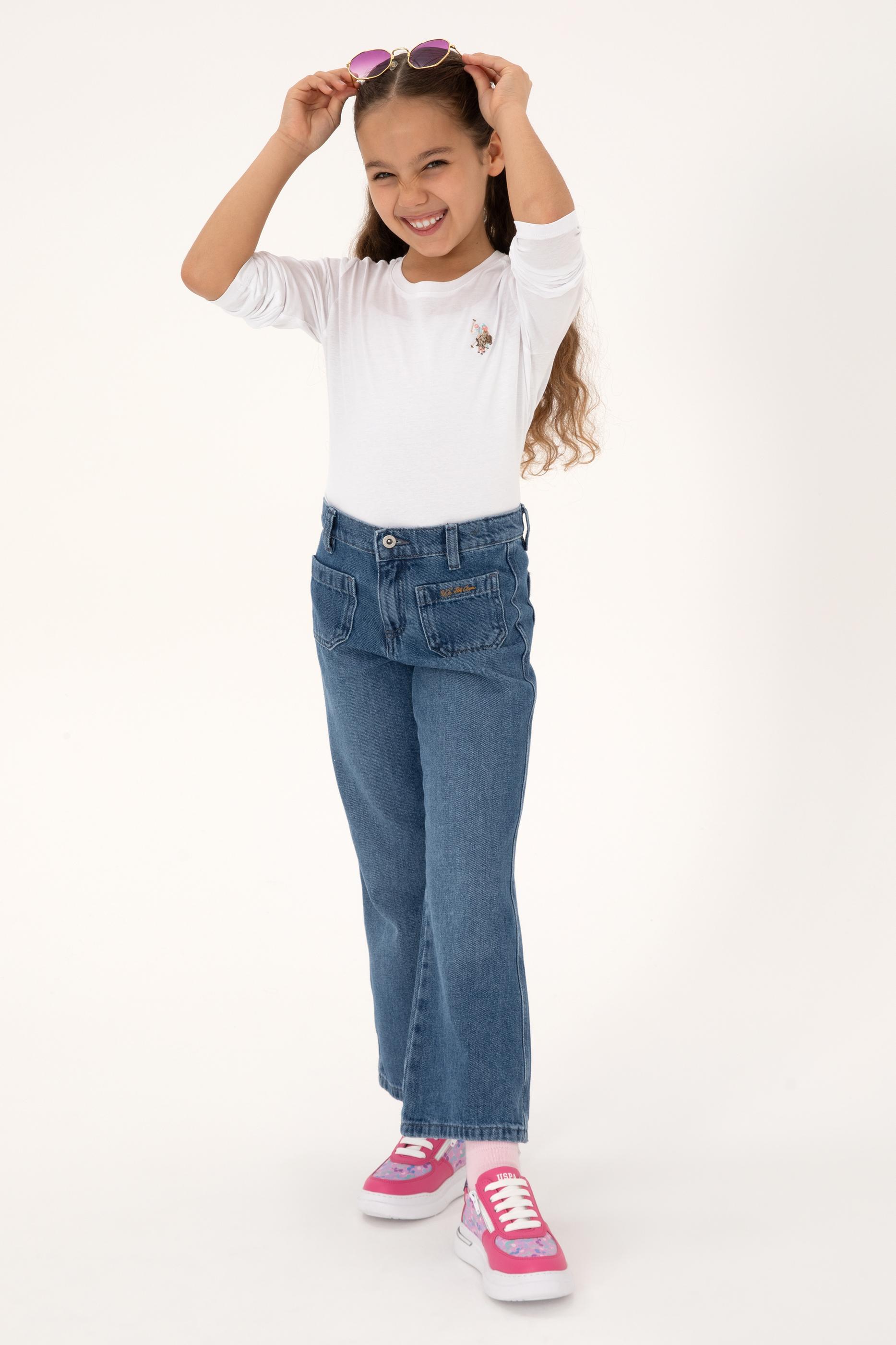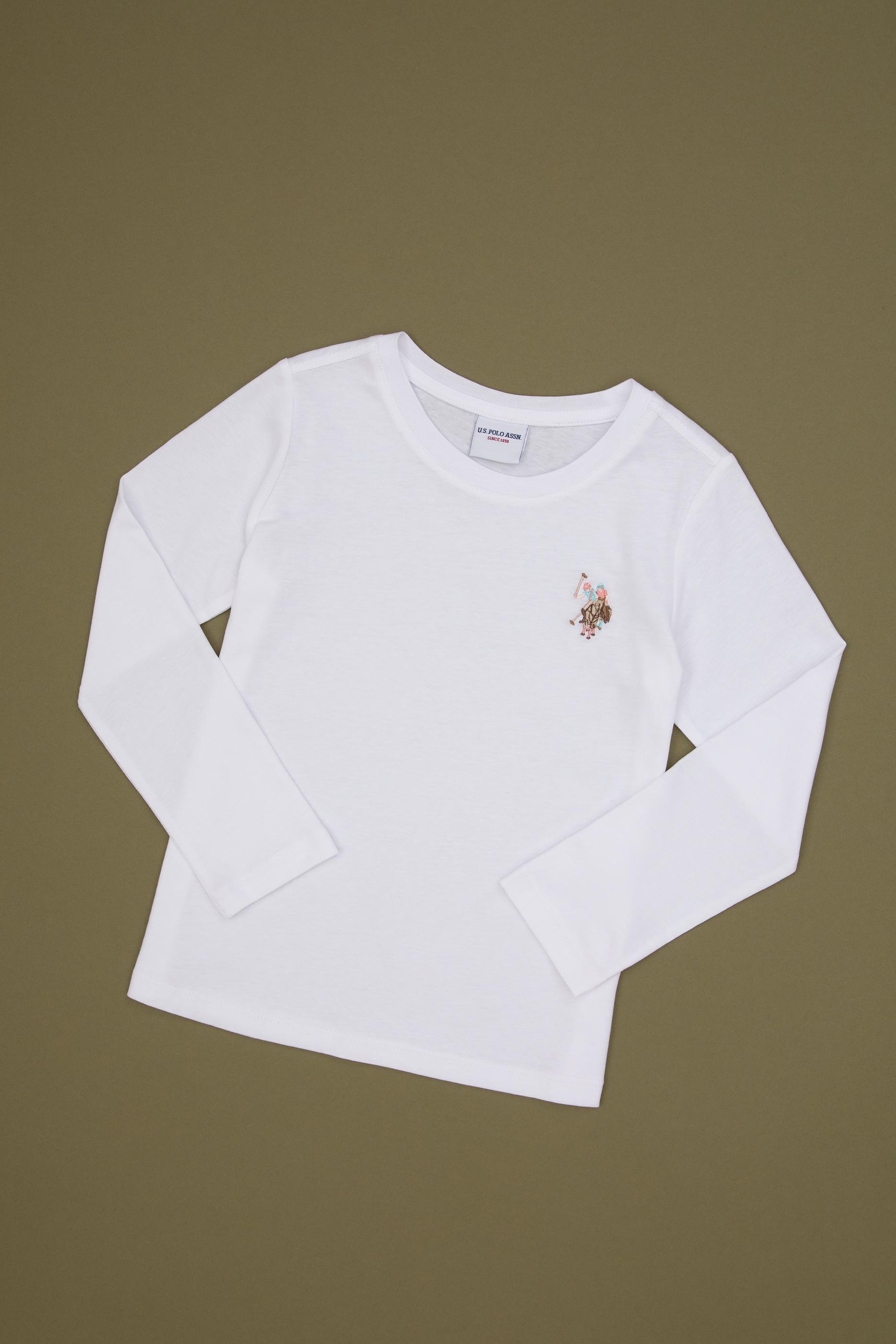Kız Çocuk Beyaz Bisiklet Yaka Basic Sweatshirt