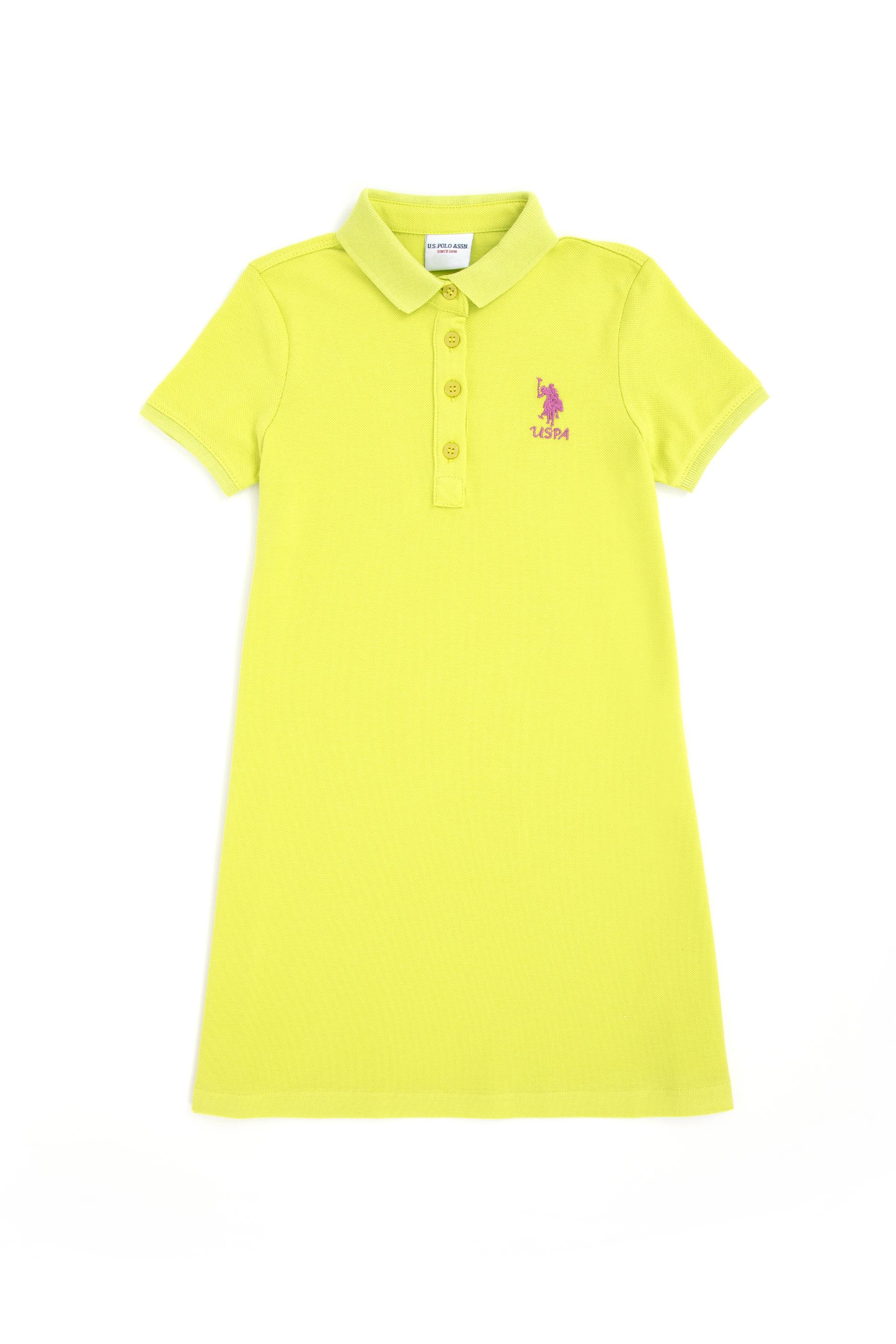 - Kız Çocuk Fıstık Yeşili Polo Yaka Örme Elbise