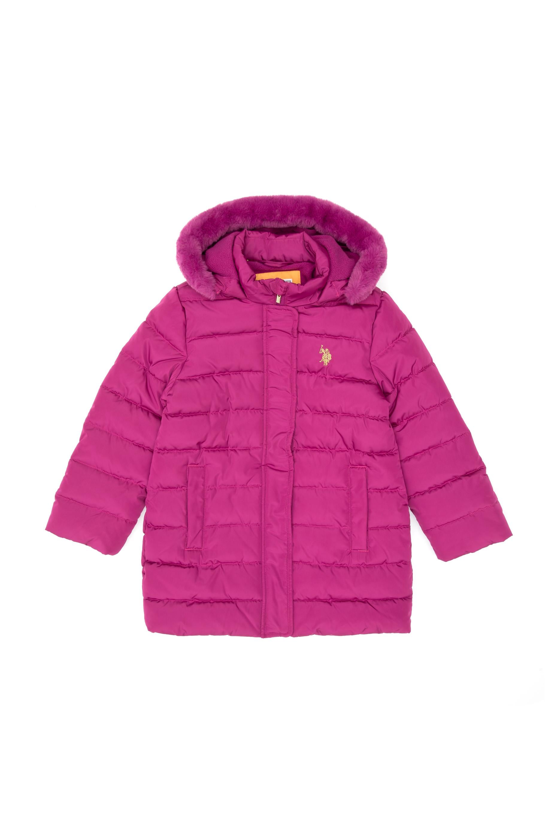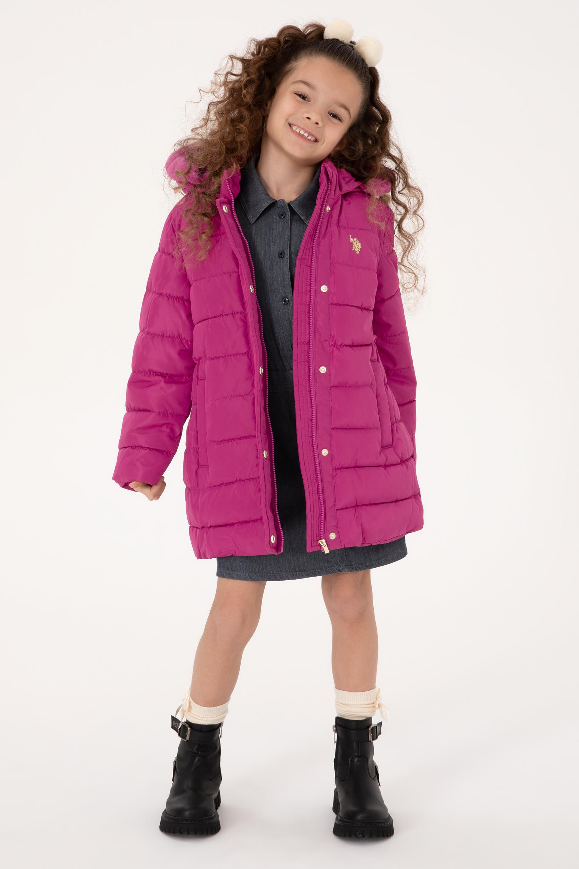 Kız Çocuk Kapüşonlu Fuşya Kaban