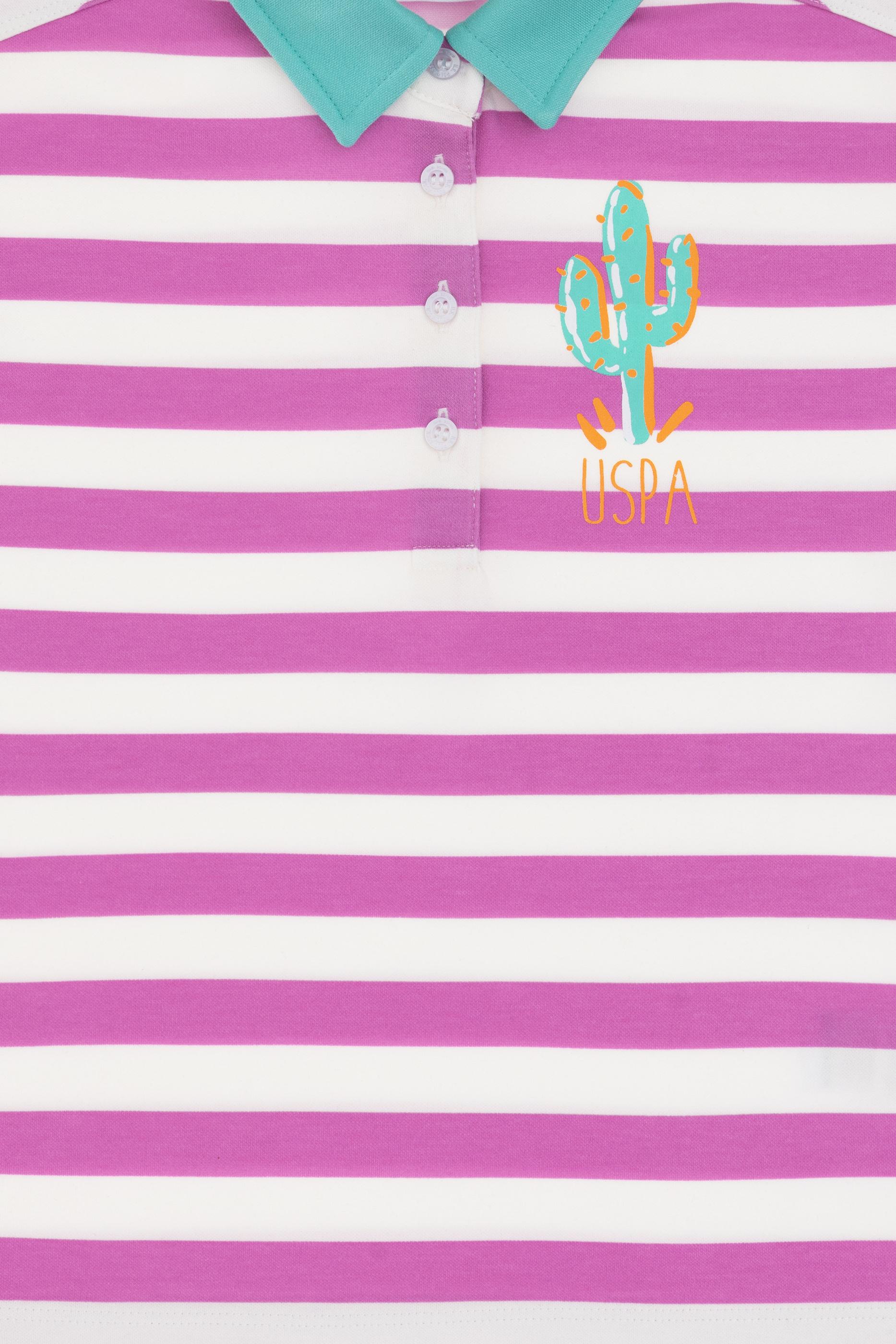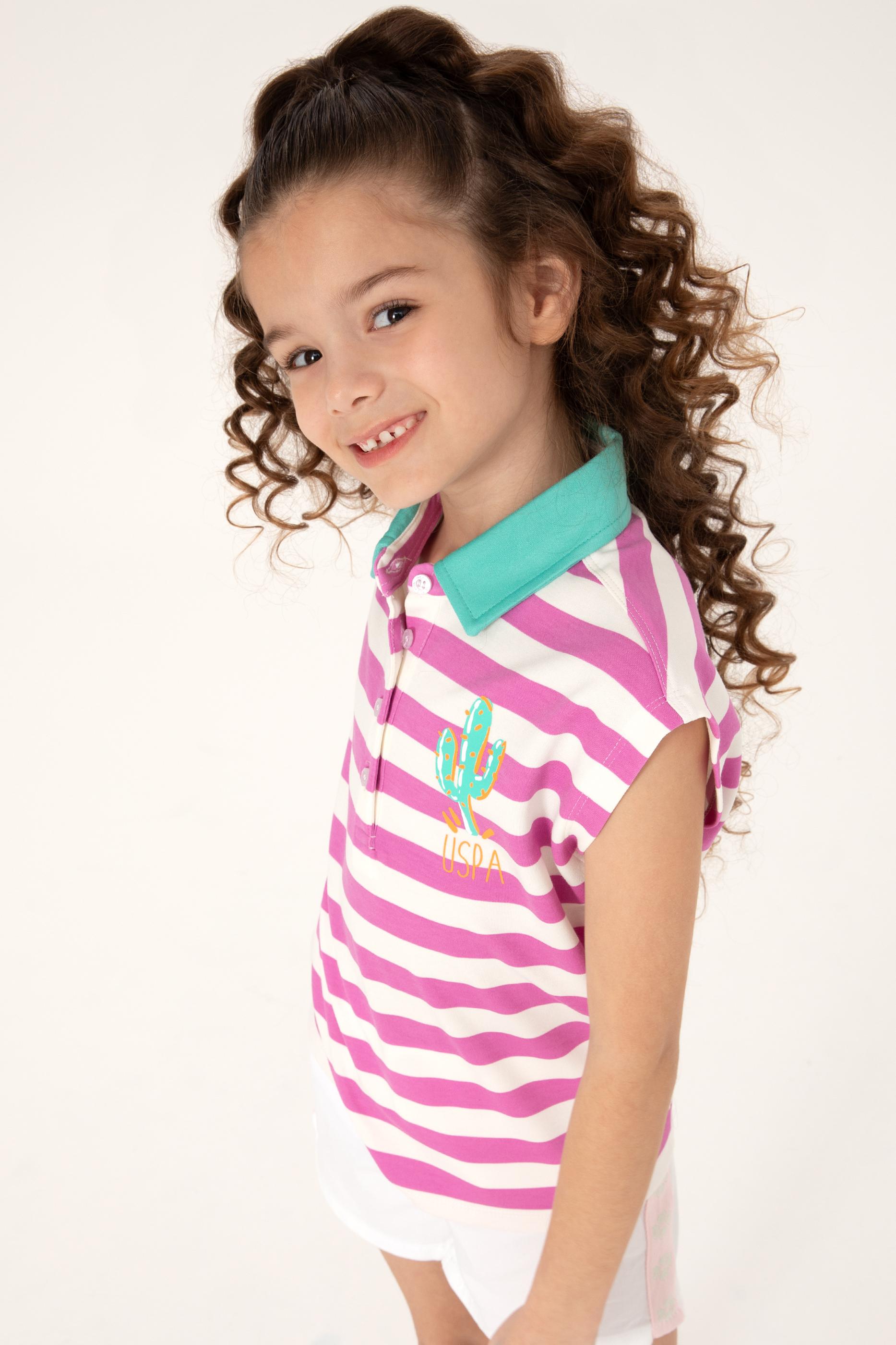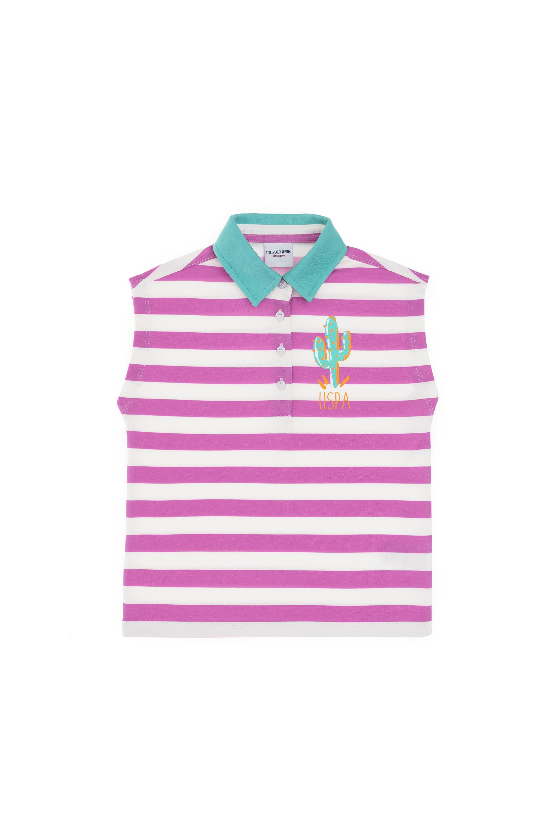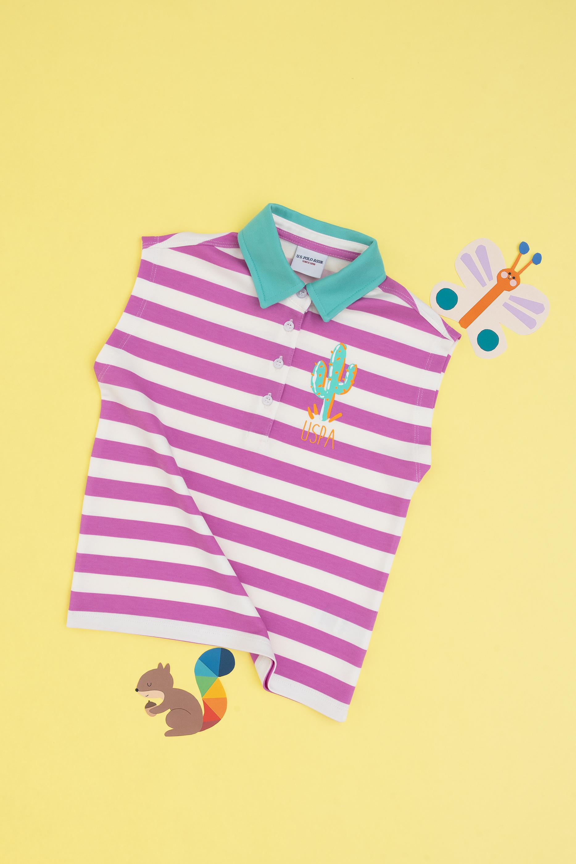 - Kız Çocuk Fuşya Polo Yaka Çizgili Kolsuz Tişört