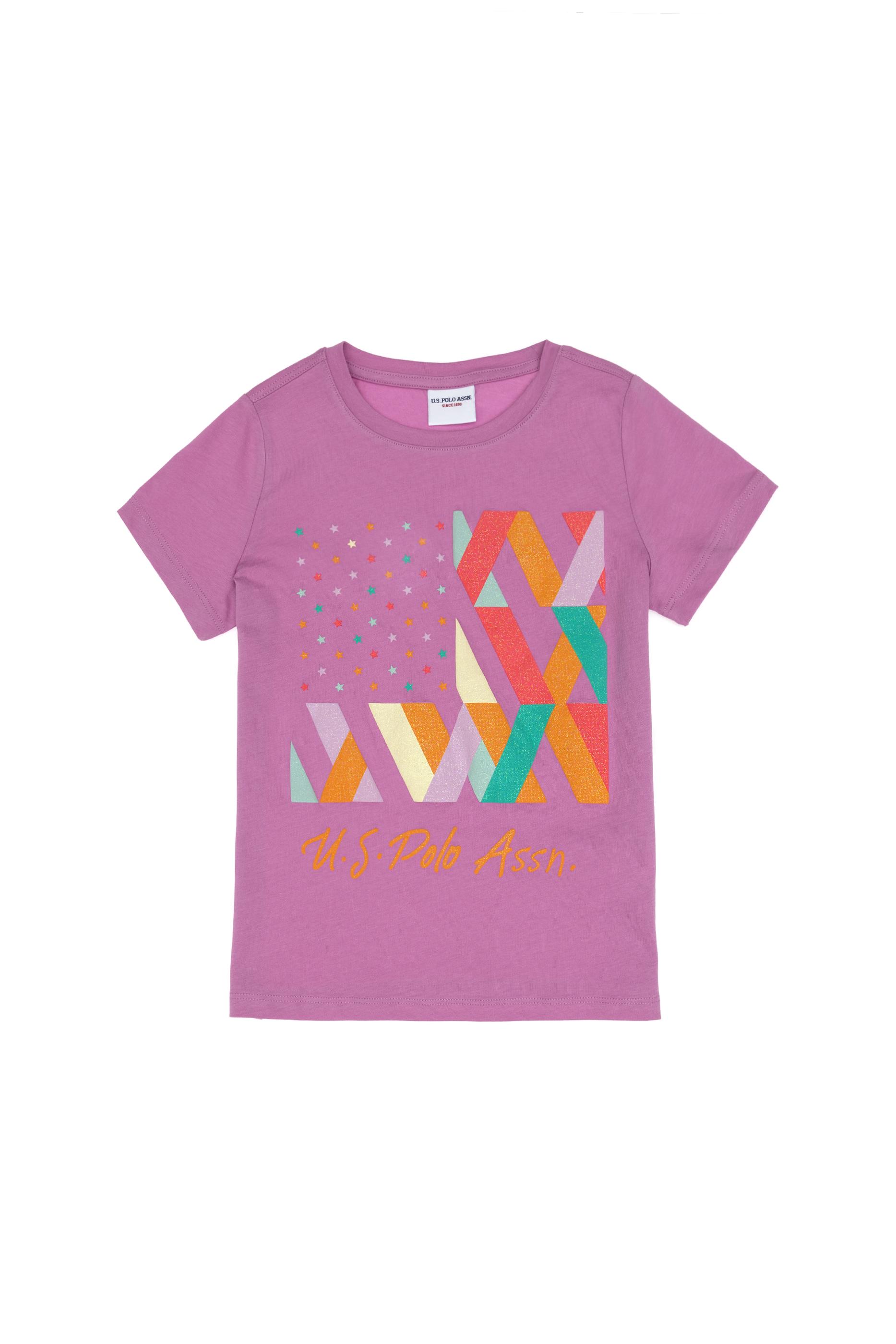 - Kız Çocuk Fuşya Bisiklet Yaka Pamuk Renkli Simli Baskılı Tişört