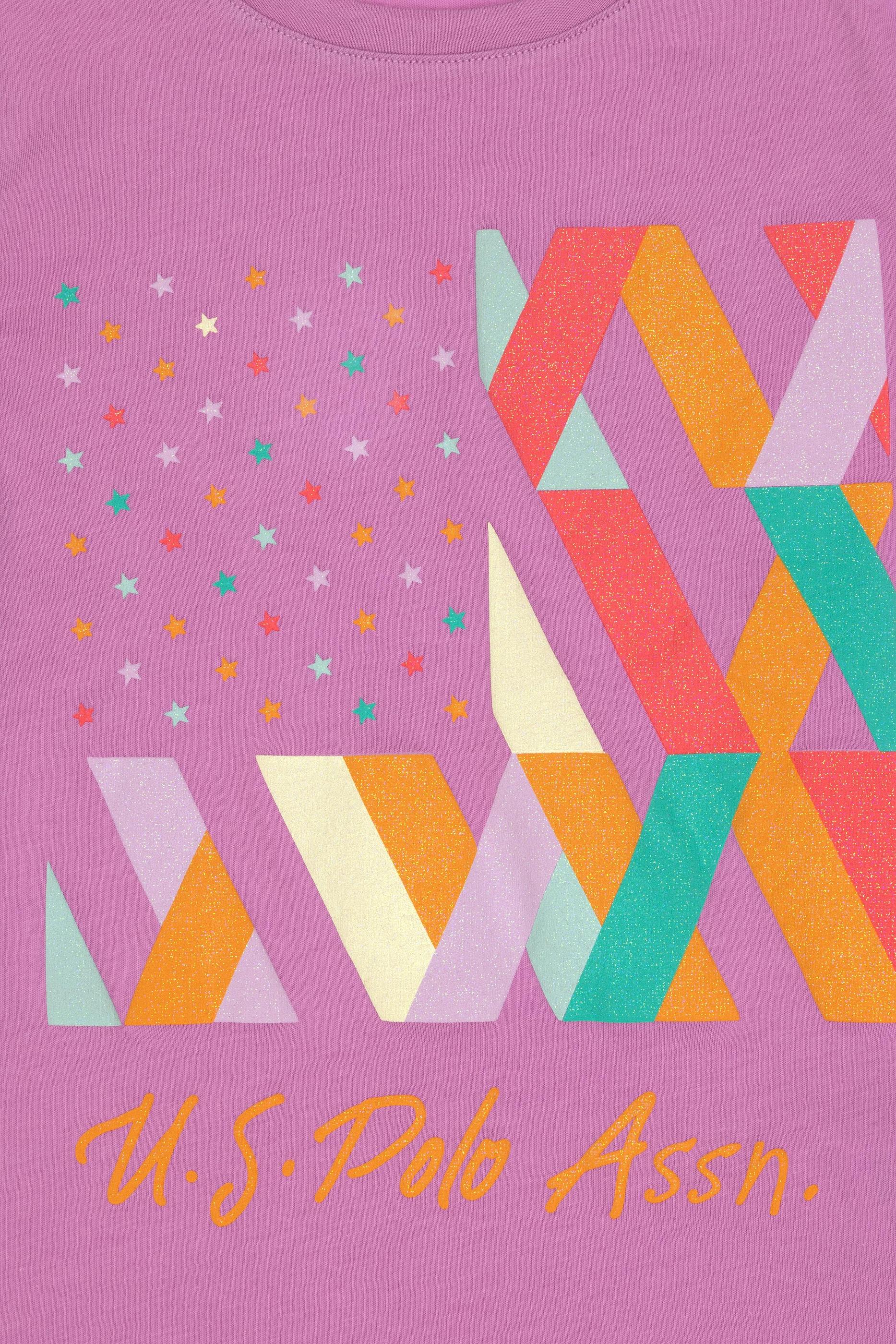 Kız Çocuk Fuşya Bisiklet Yaka Pamuk Renkli Simli Baskılı Tişört