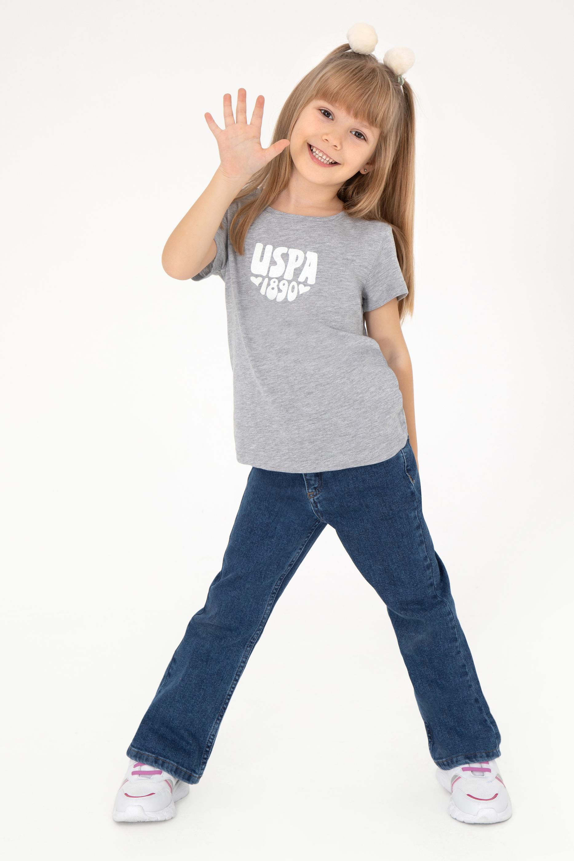 - Kız Çocuk Gri Melanj Basic Tişört