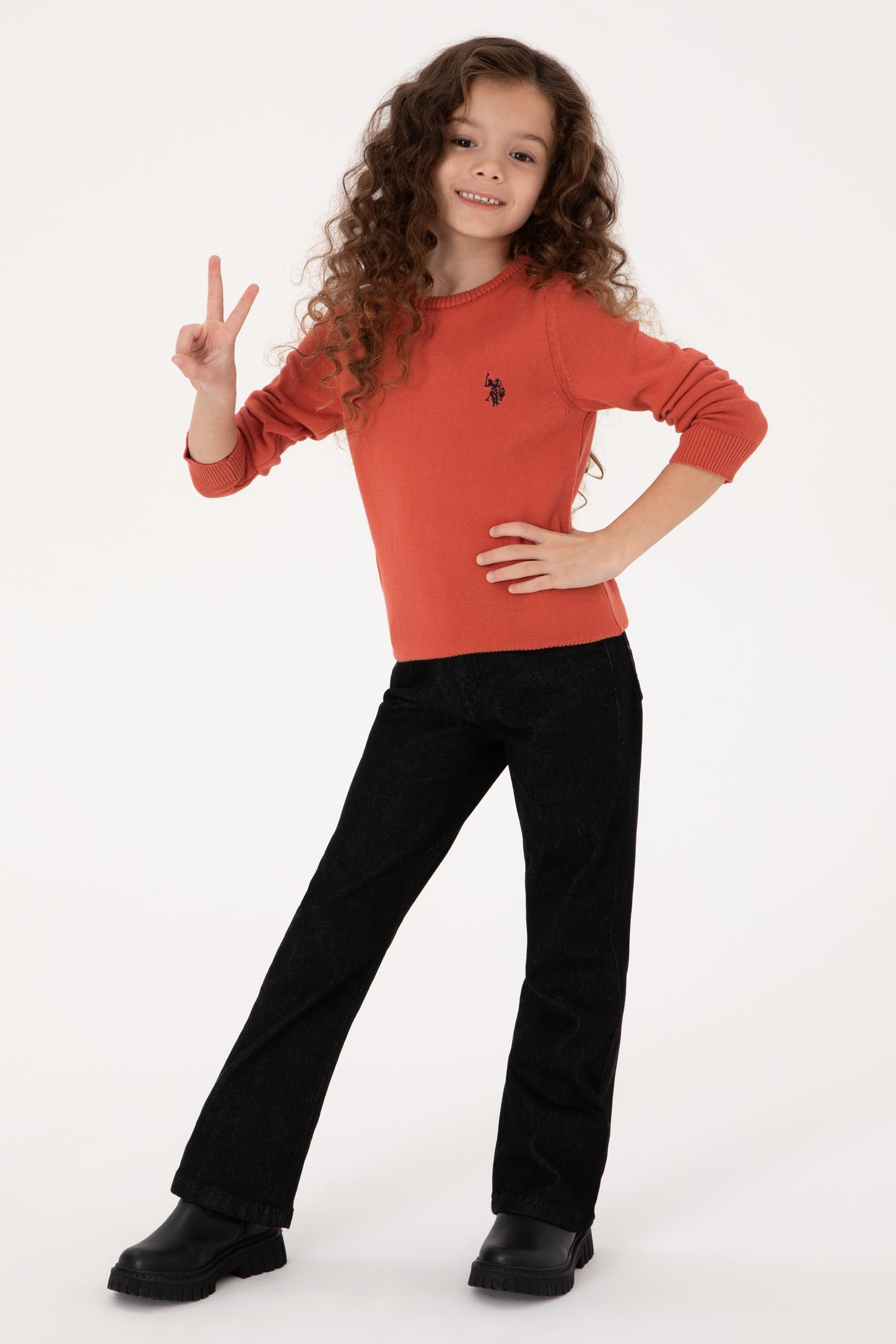 Kız Çocuk Gül Kurusu Bisiklet Yaka Basic Kazak