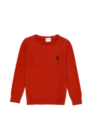 Kız Çocuk Kiremit Basic Bisiklet Yaka Kazak