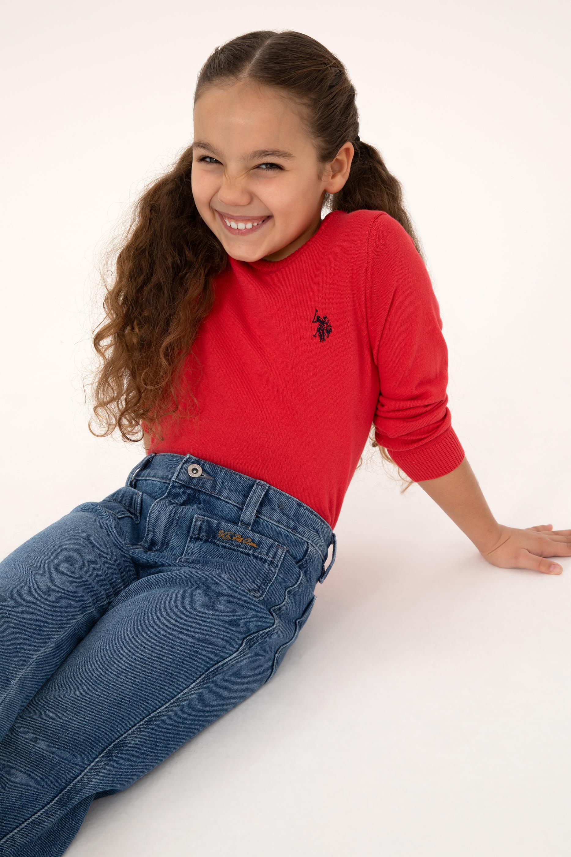 Kız Çocuk Kırmızı Bisiklet Yaka Basic Kazak