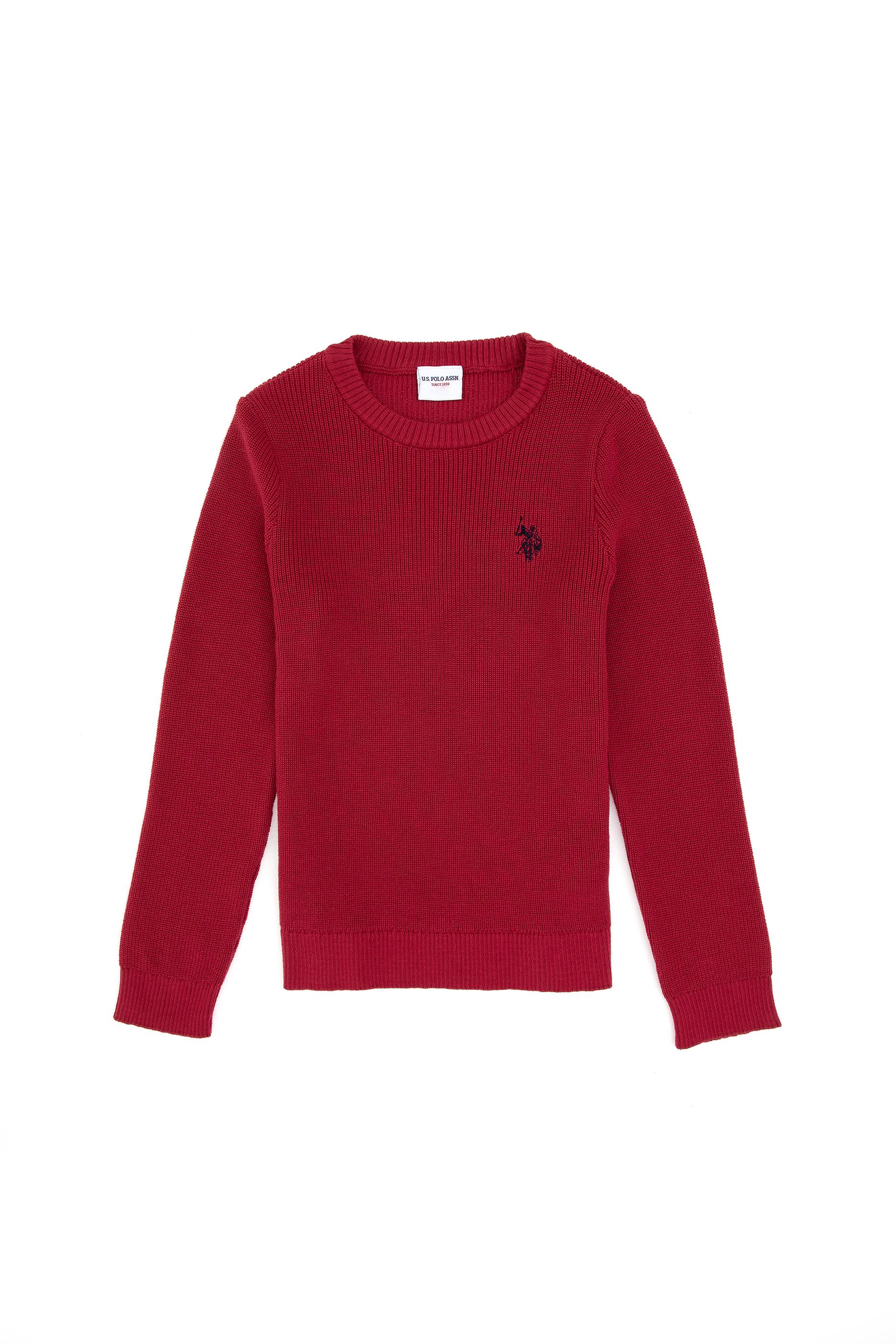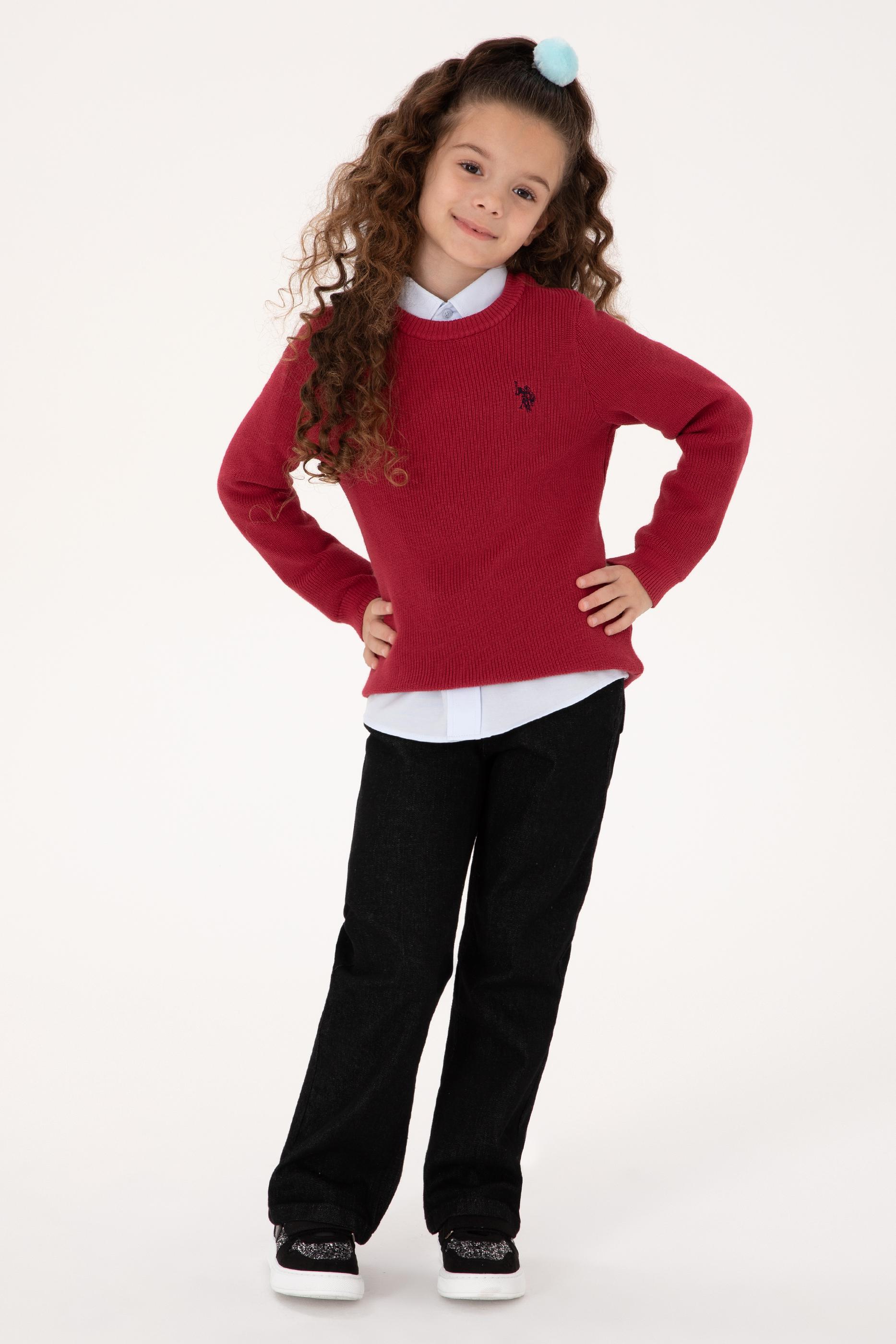 Kız Çocuk Koyu Frambuaz Bisiklet Yaka Basic Kazak