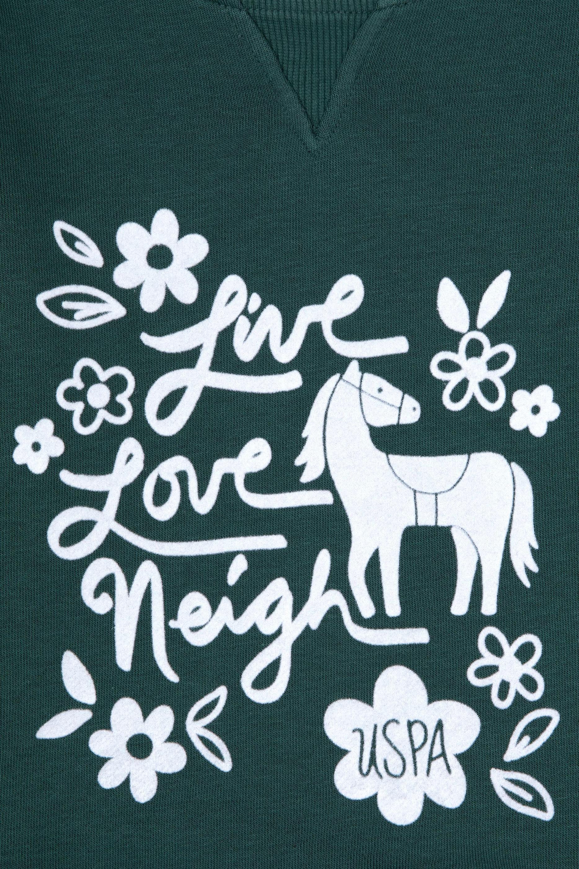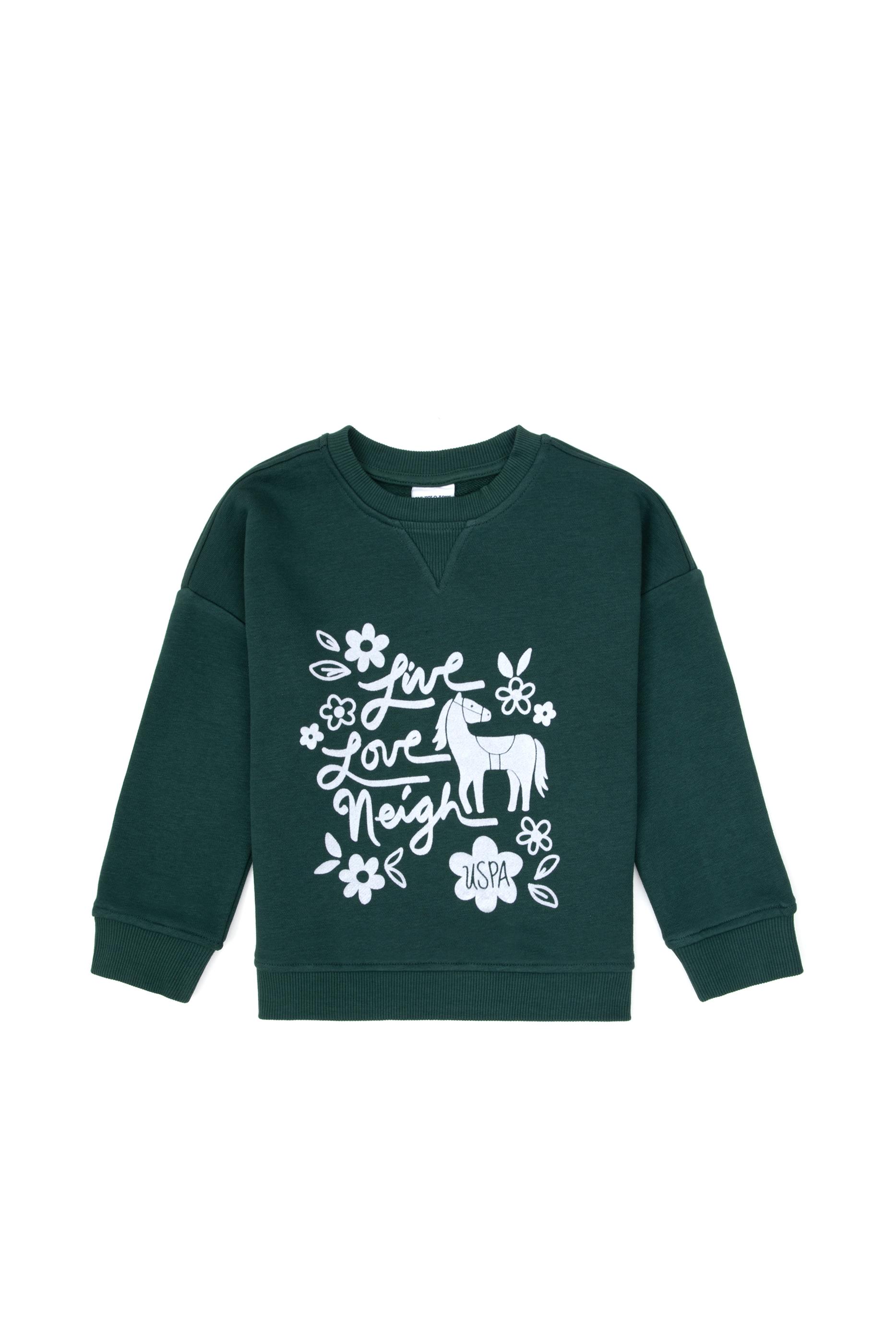 - Kız Çocuk Koyu Yeşil Bisiklet Yaka Sweatshirt