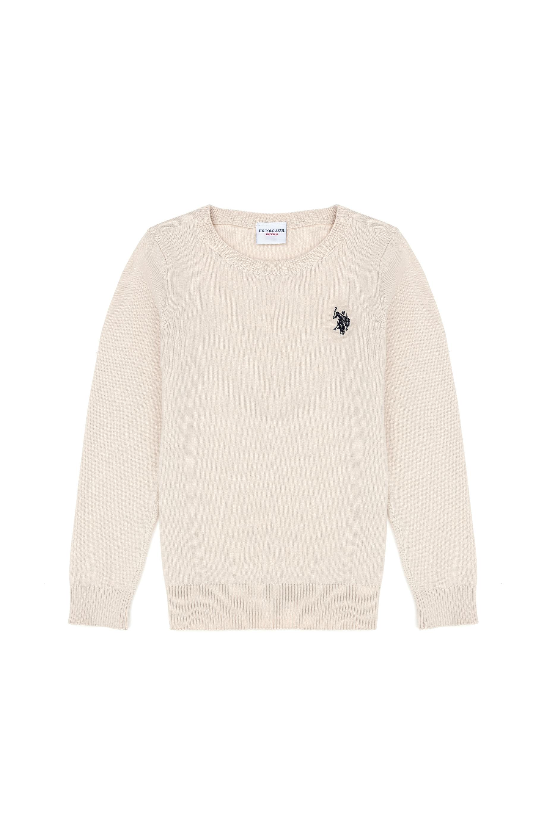 Kız Çocuk Krem Basic Bisiklet Yaka Kazak