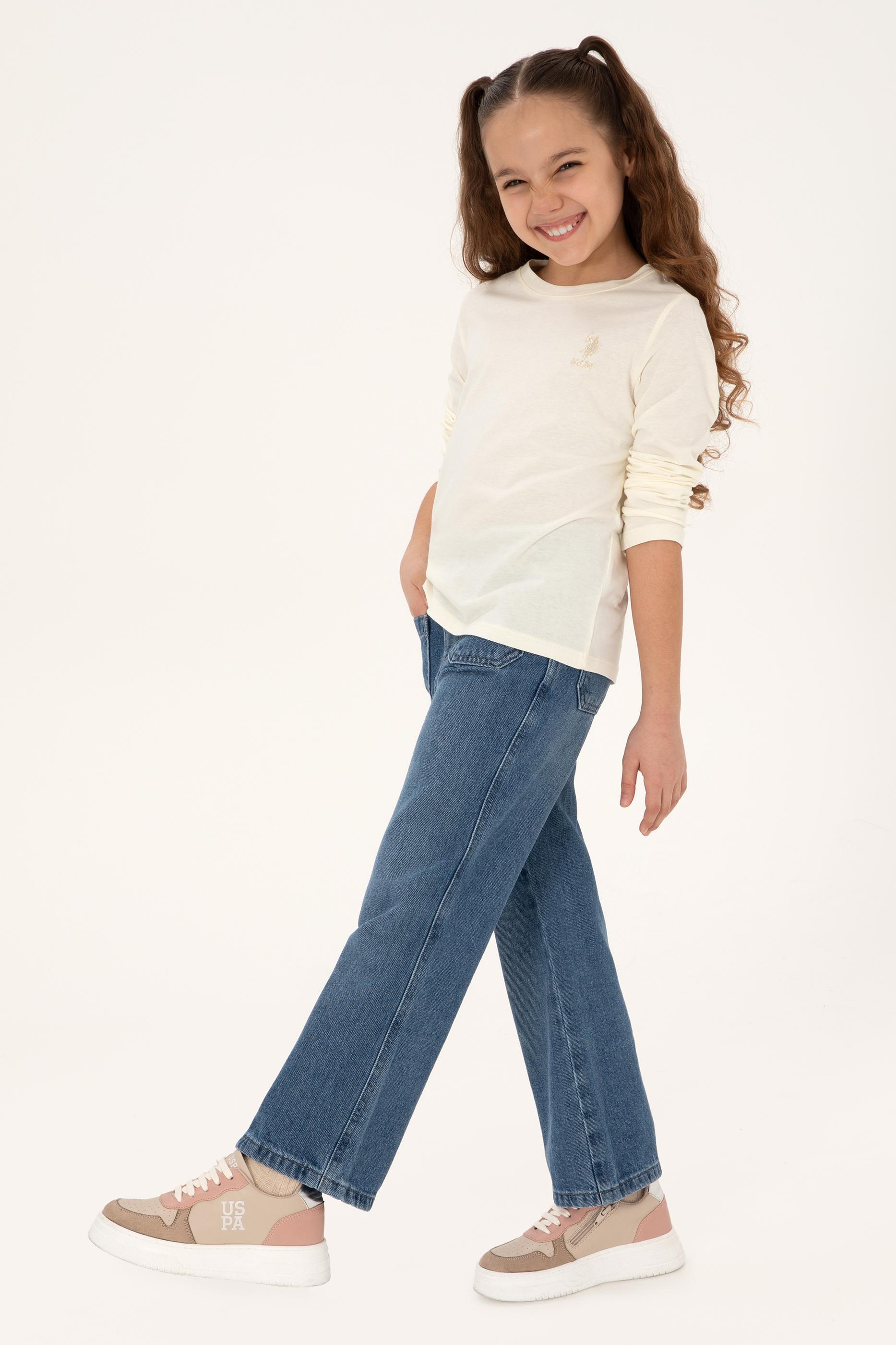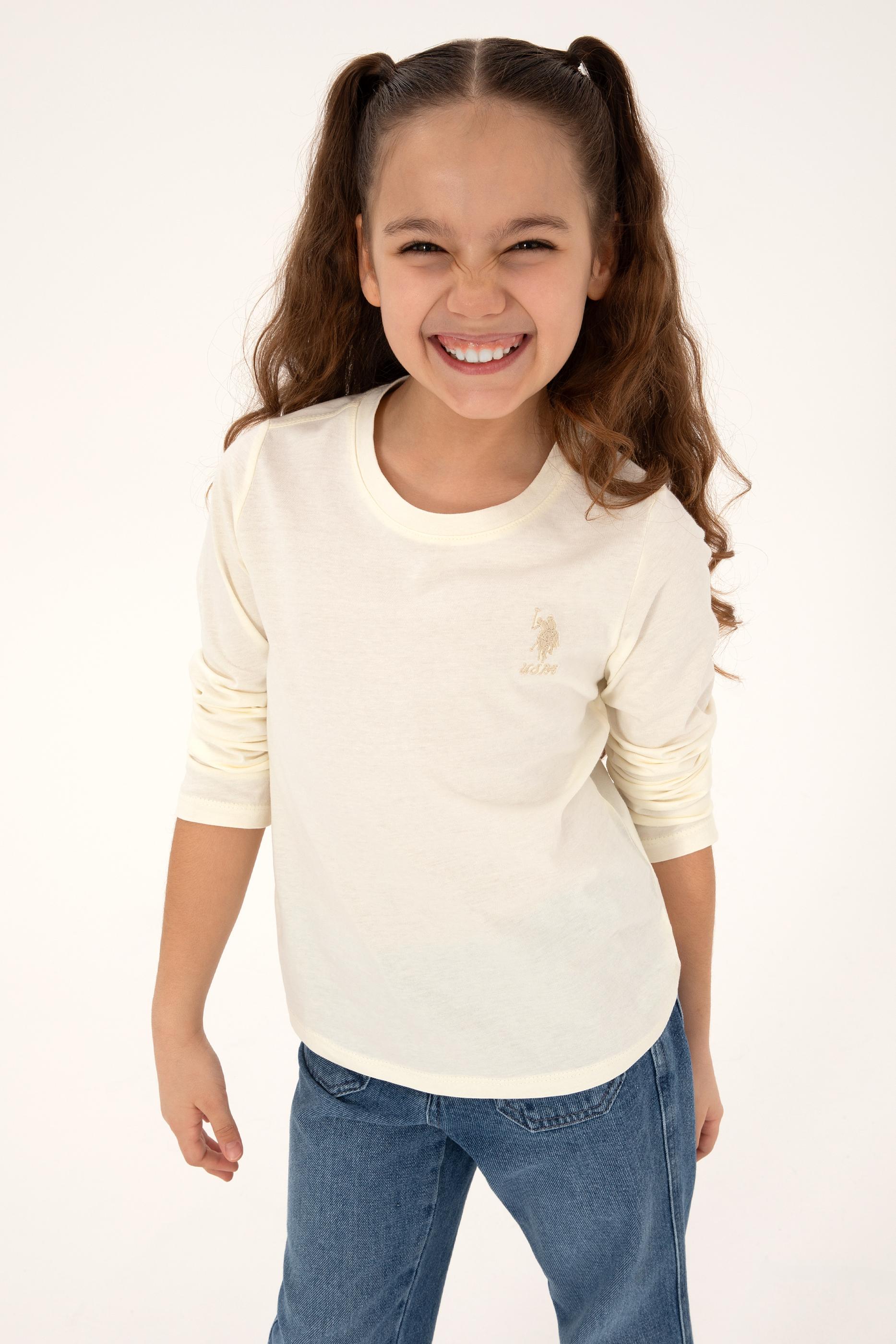 Kız Çocuk Krem Bisiklet yaka Basic Tişört