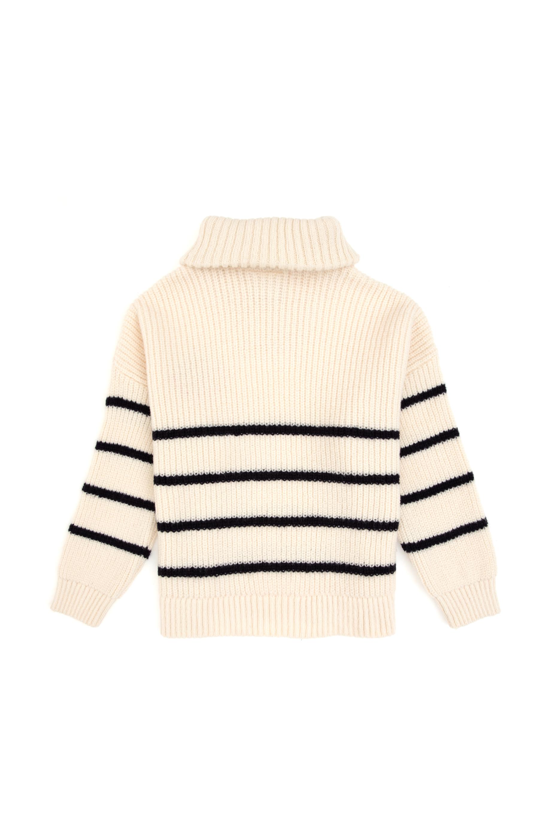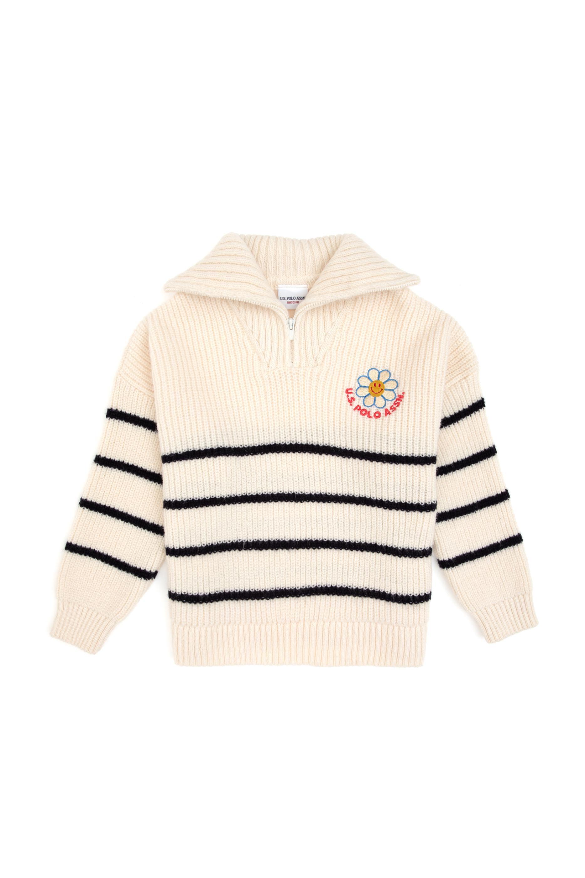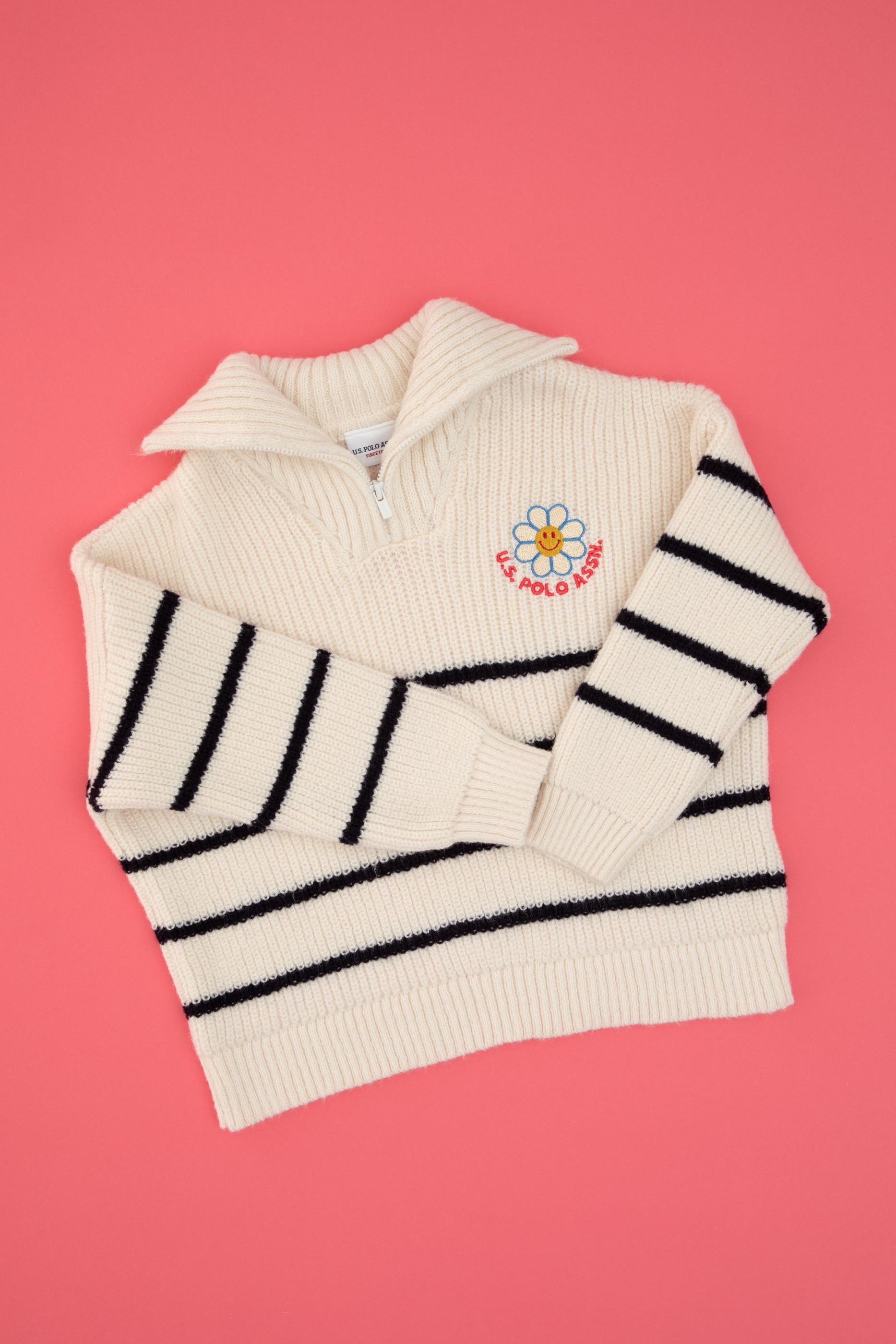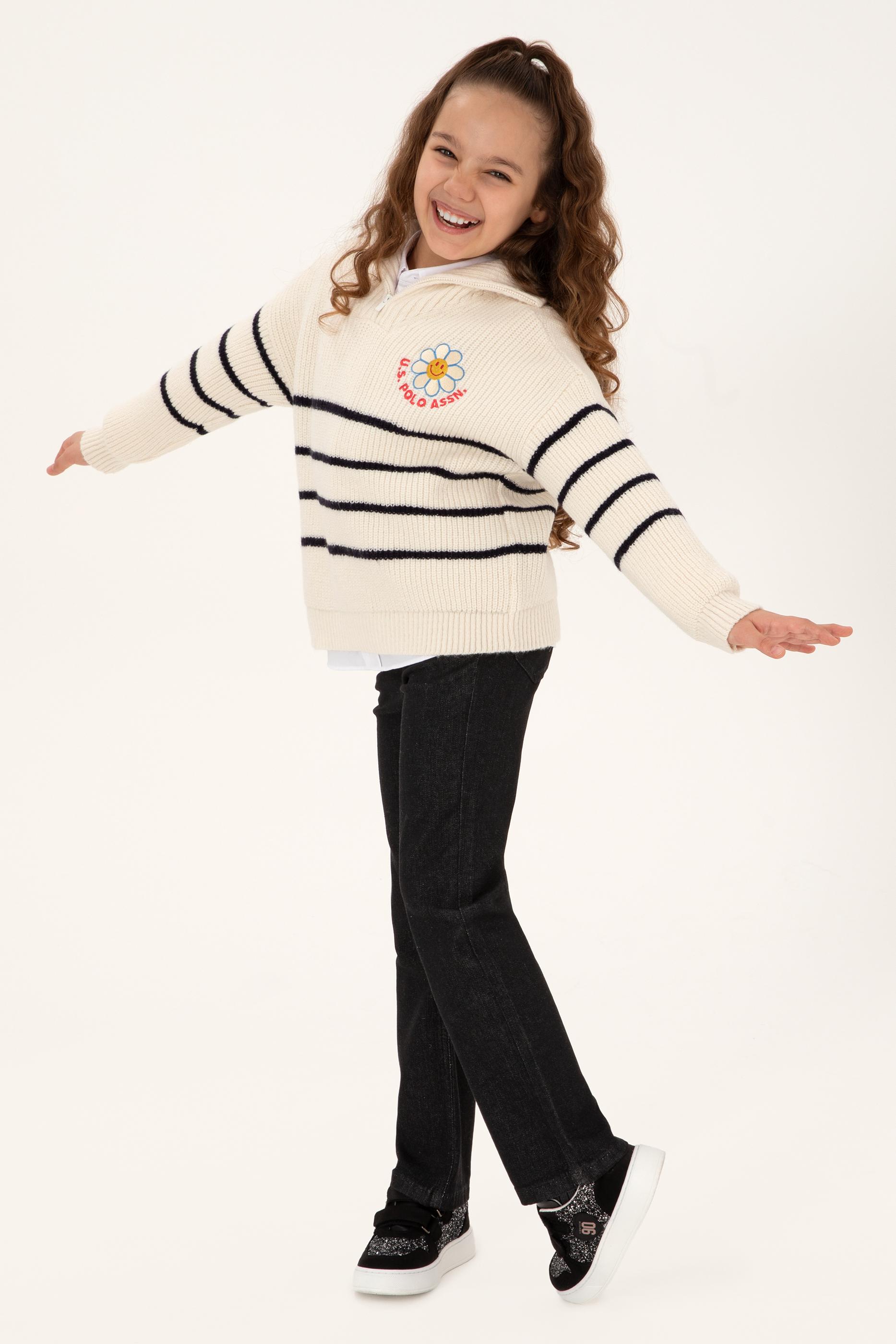 Kız Çocuk Krem Polo Yaka Yarım Fermuarlı Kazak