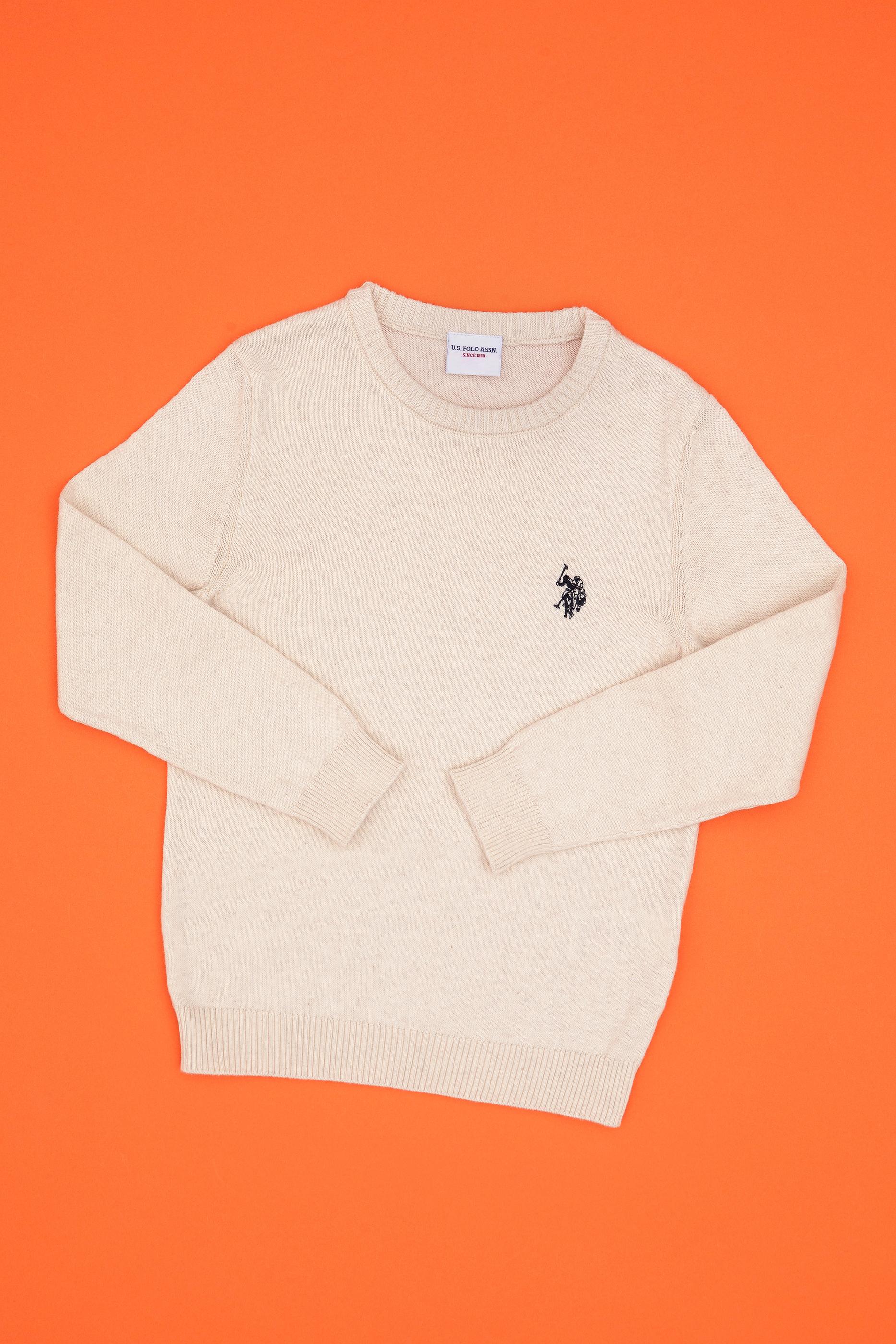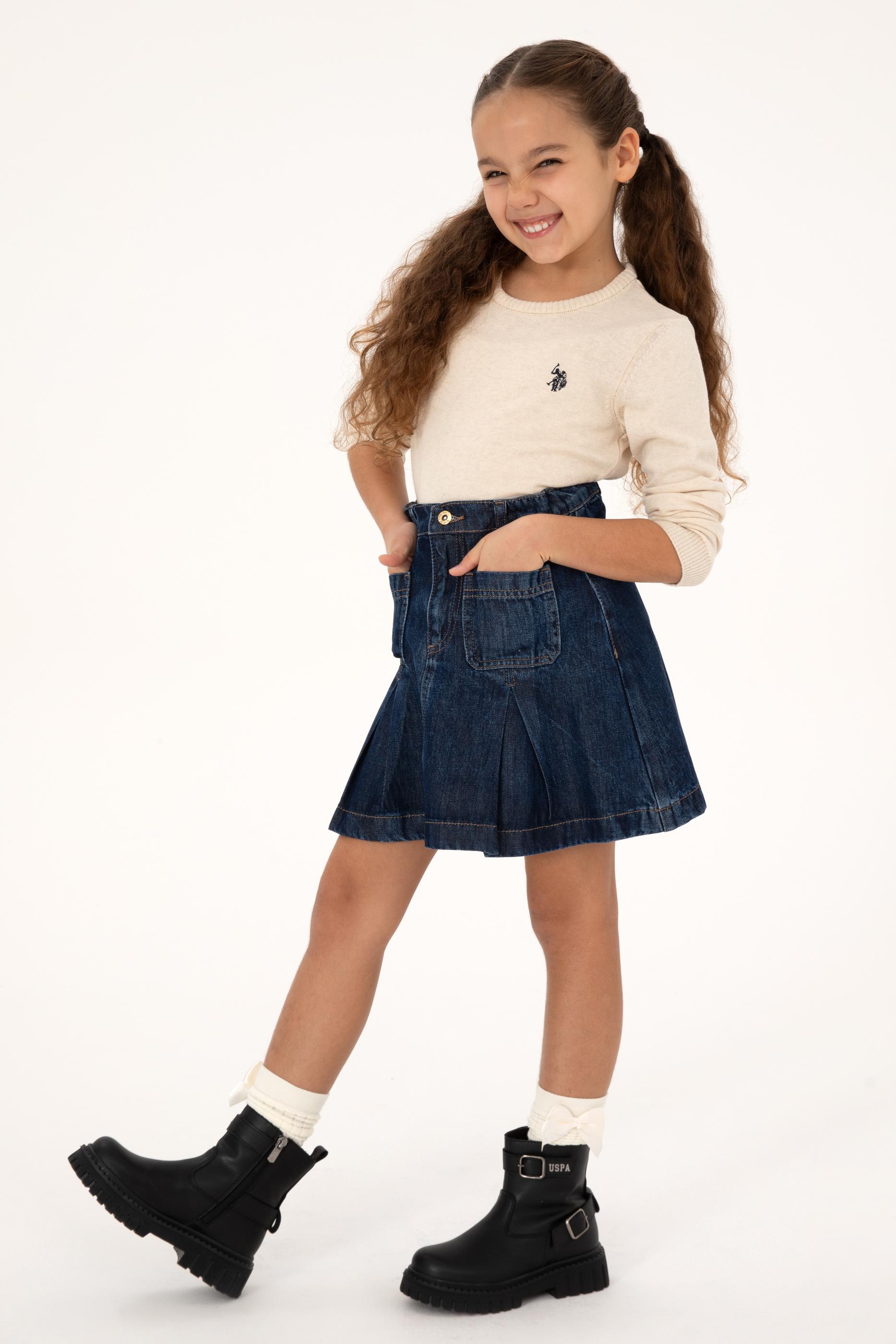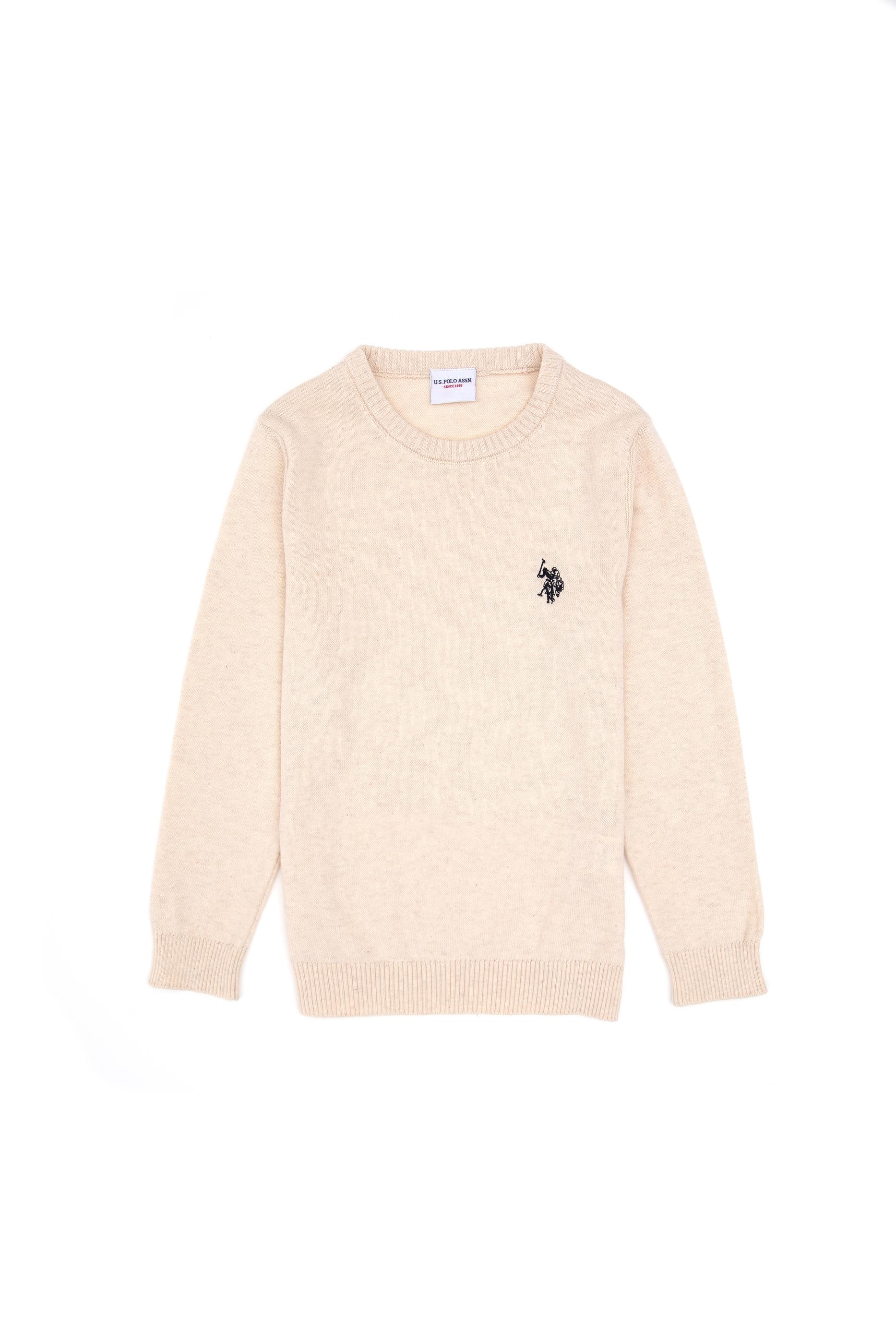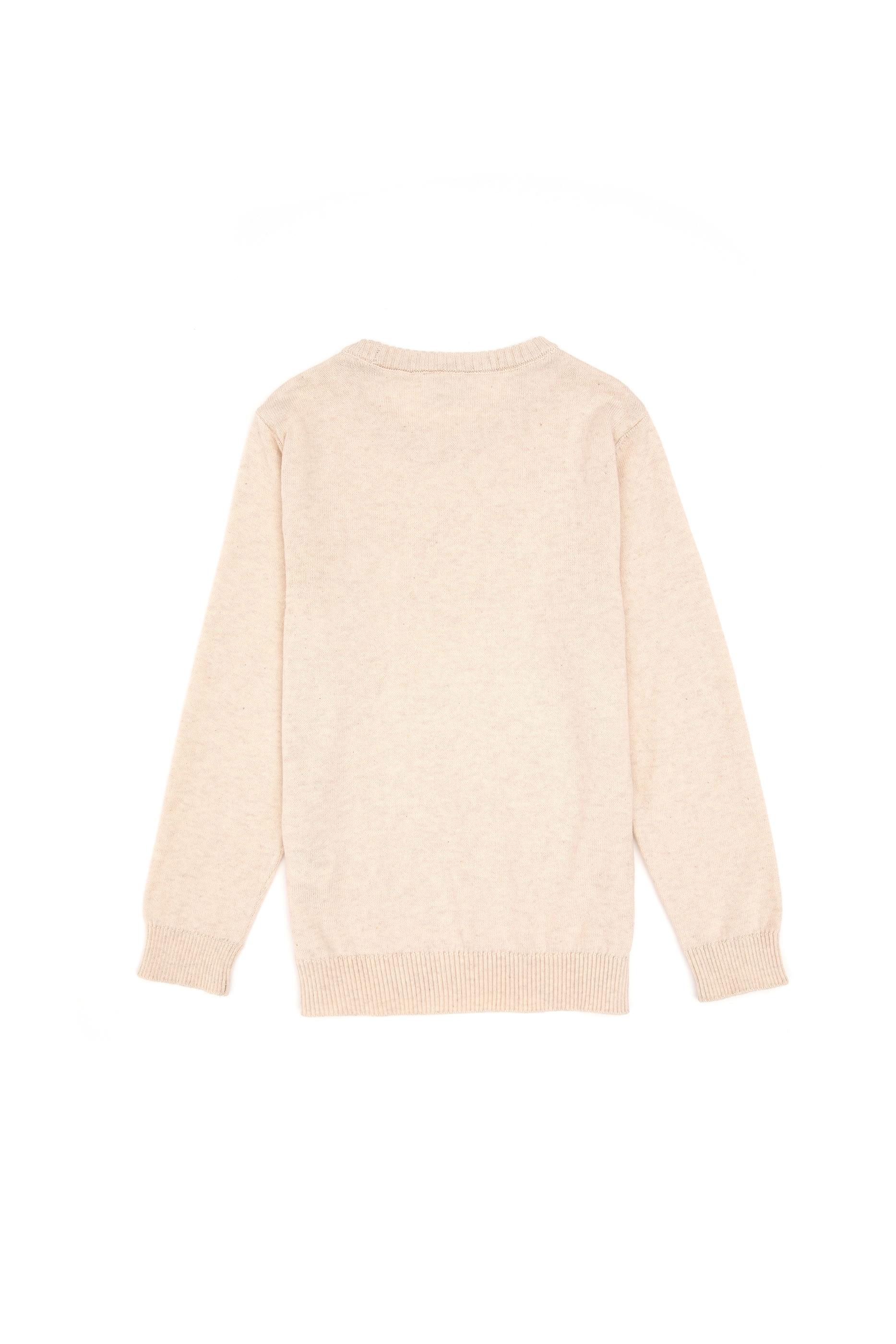 Kız Çocuk Krem Melanj Bisiklet Yaka Basic Kazak