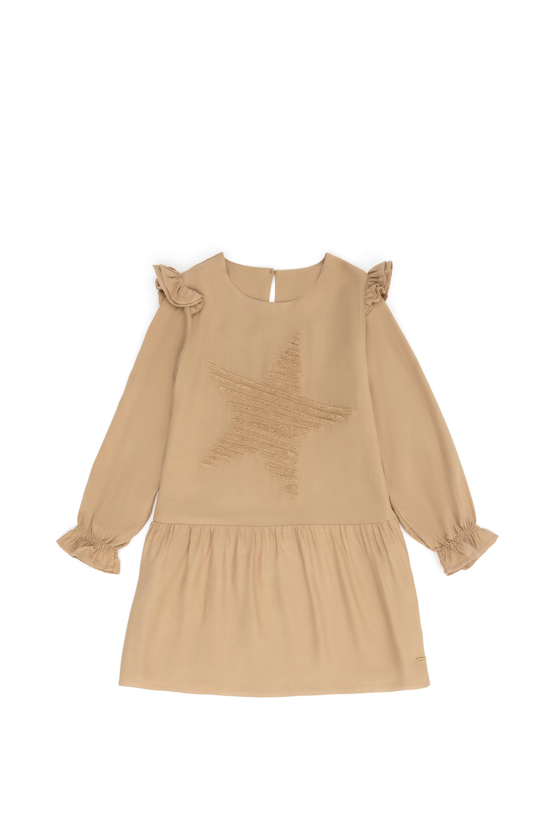 - Kız Çocuk Kum Uzun Kol Dokuma Elbise