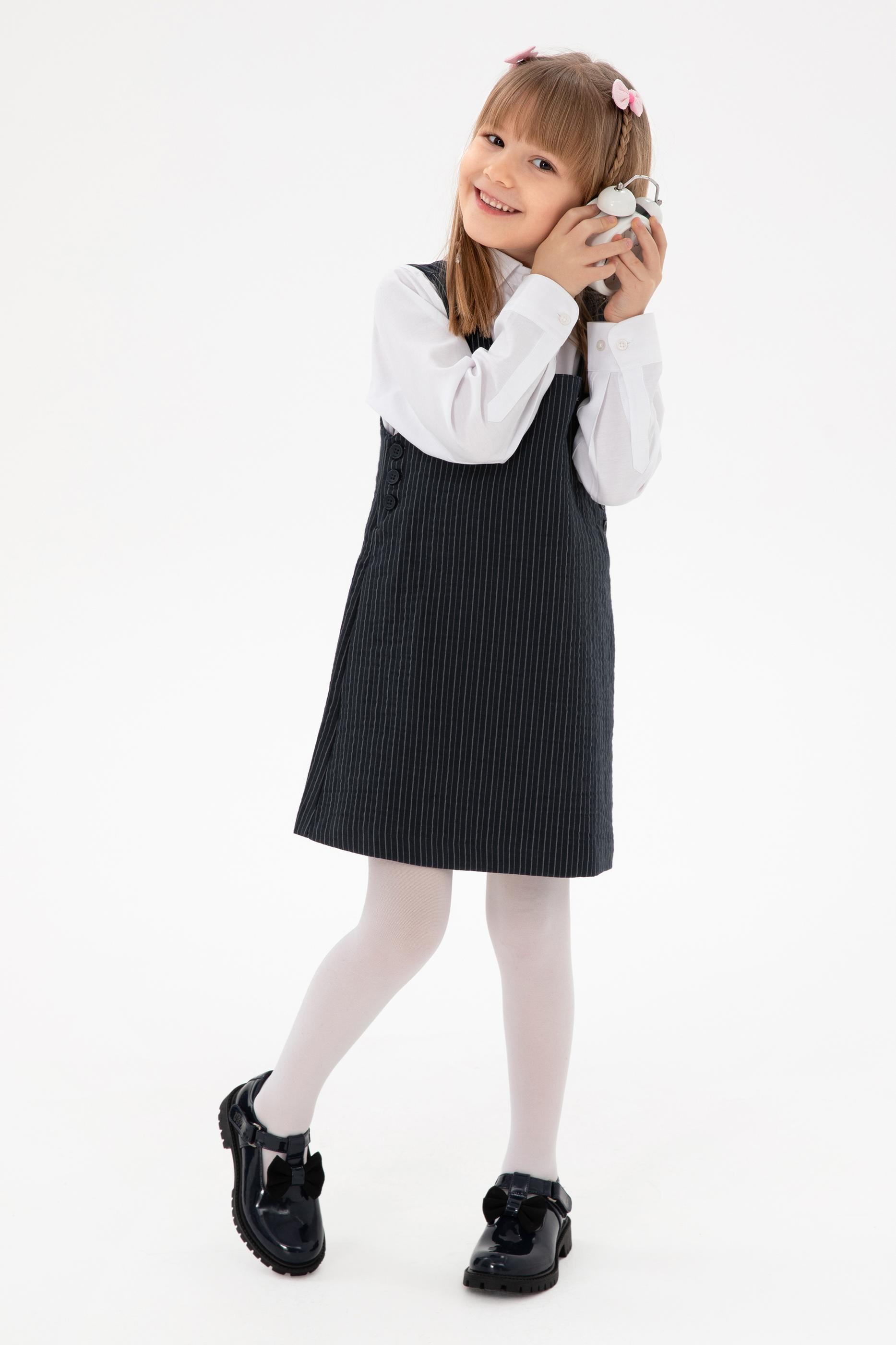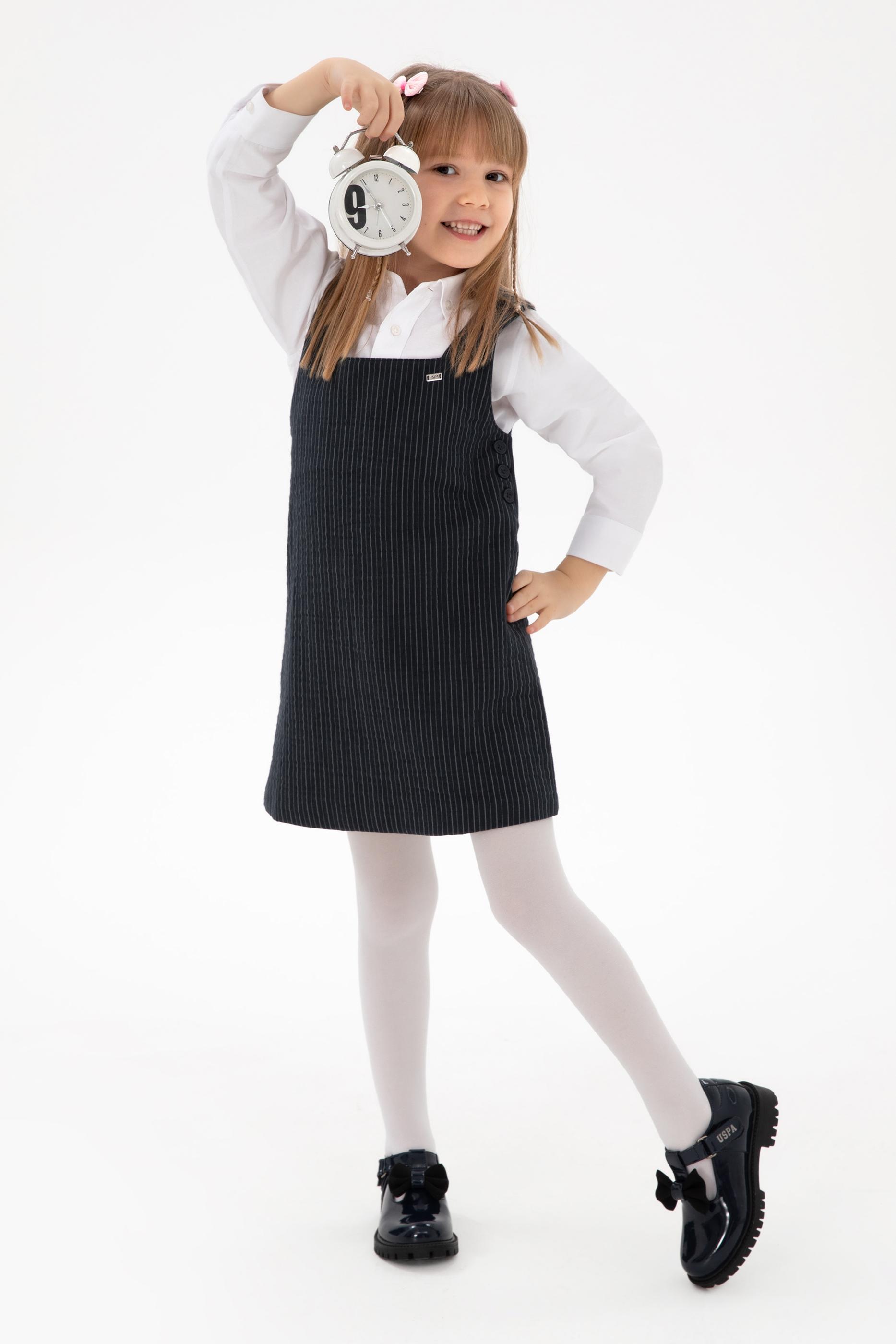 Kız Çocuk Lacivert Çizgili Jile Dokuma Elbise