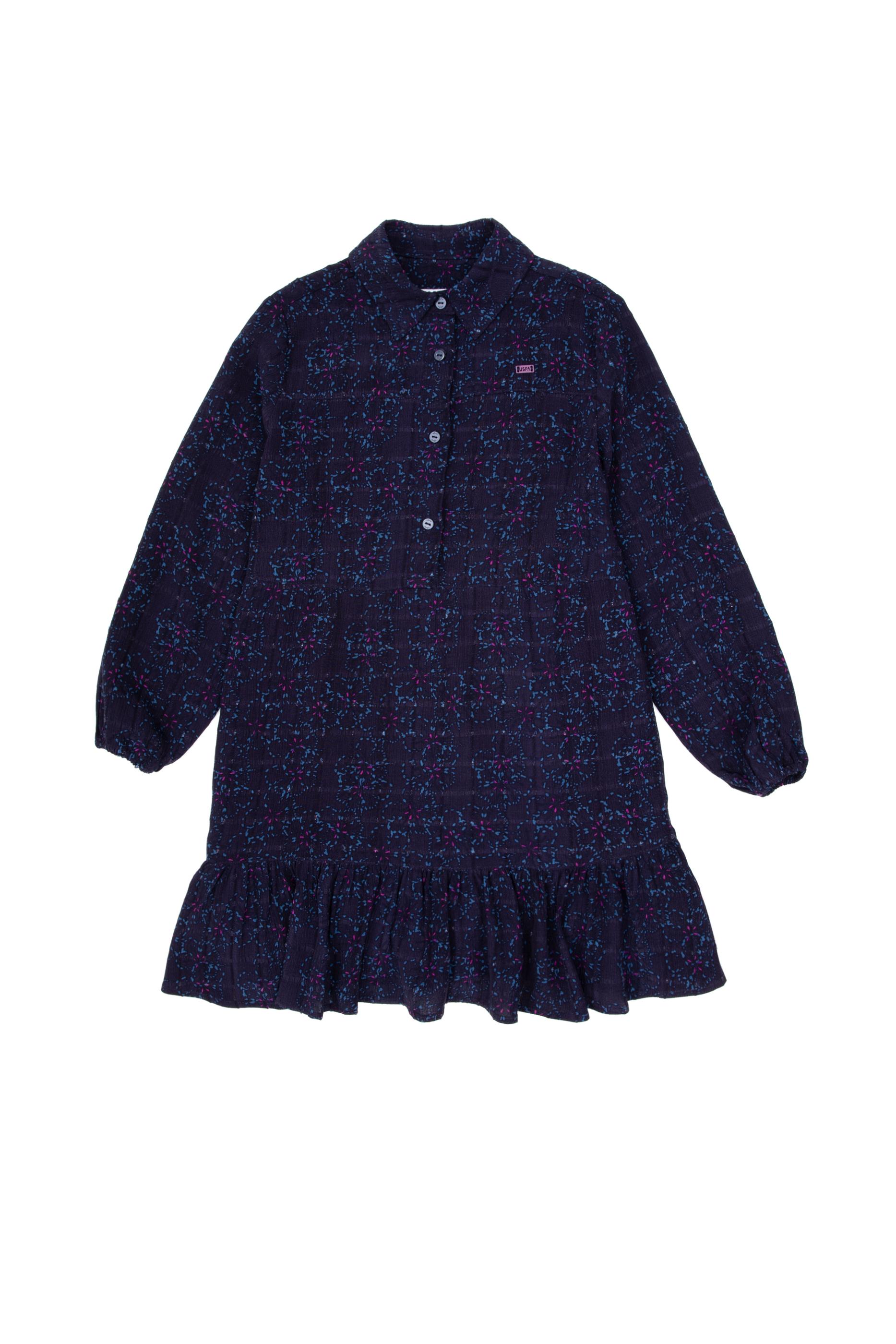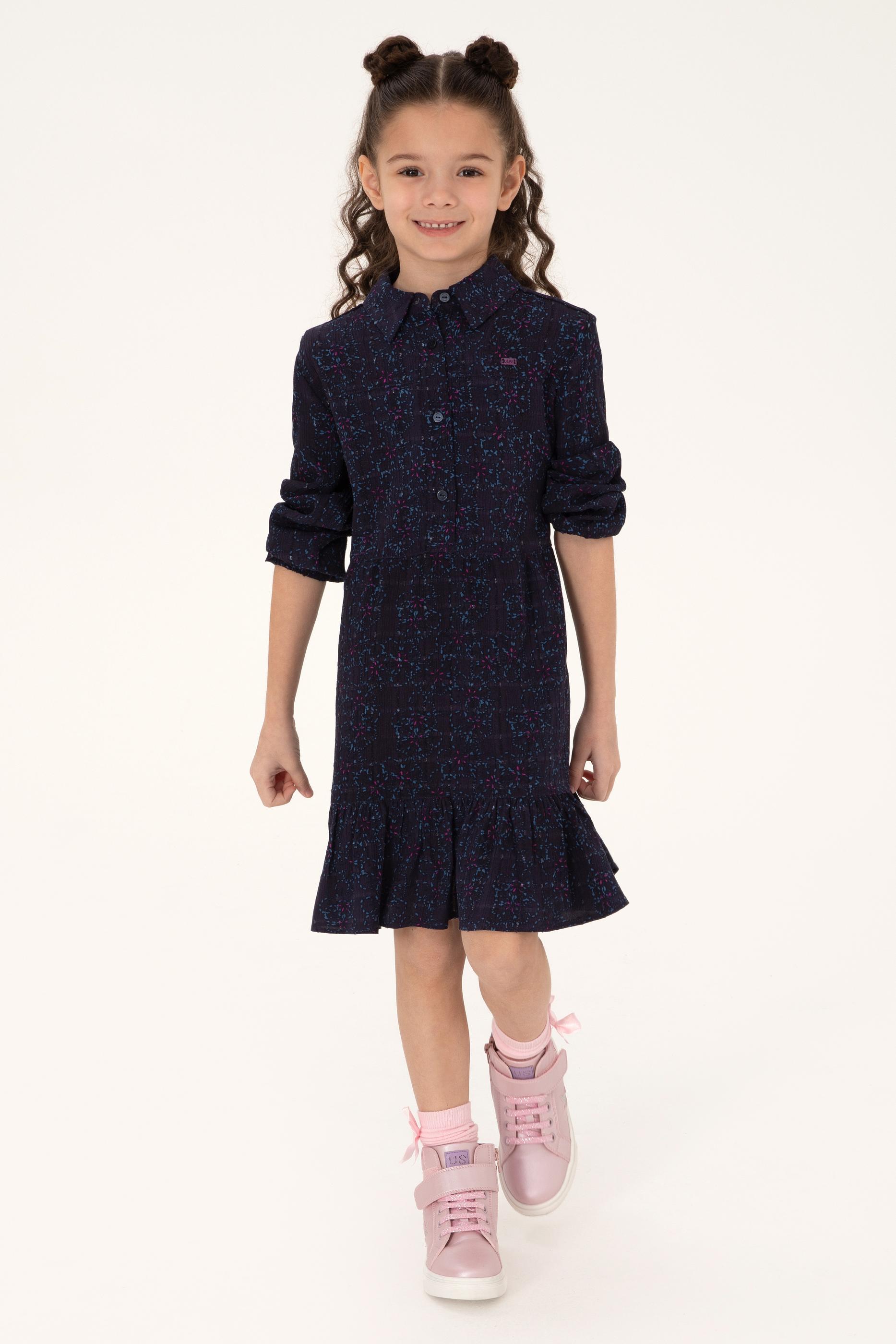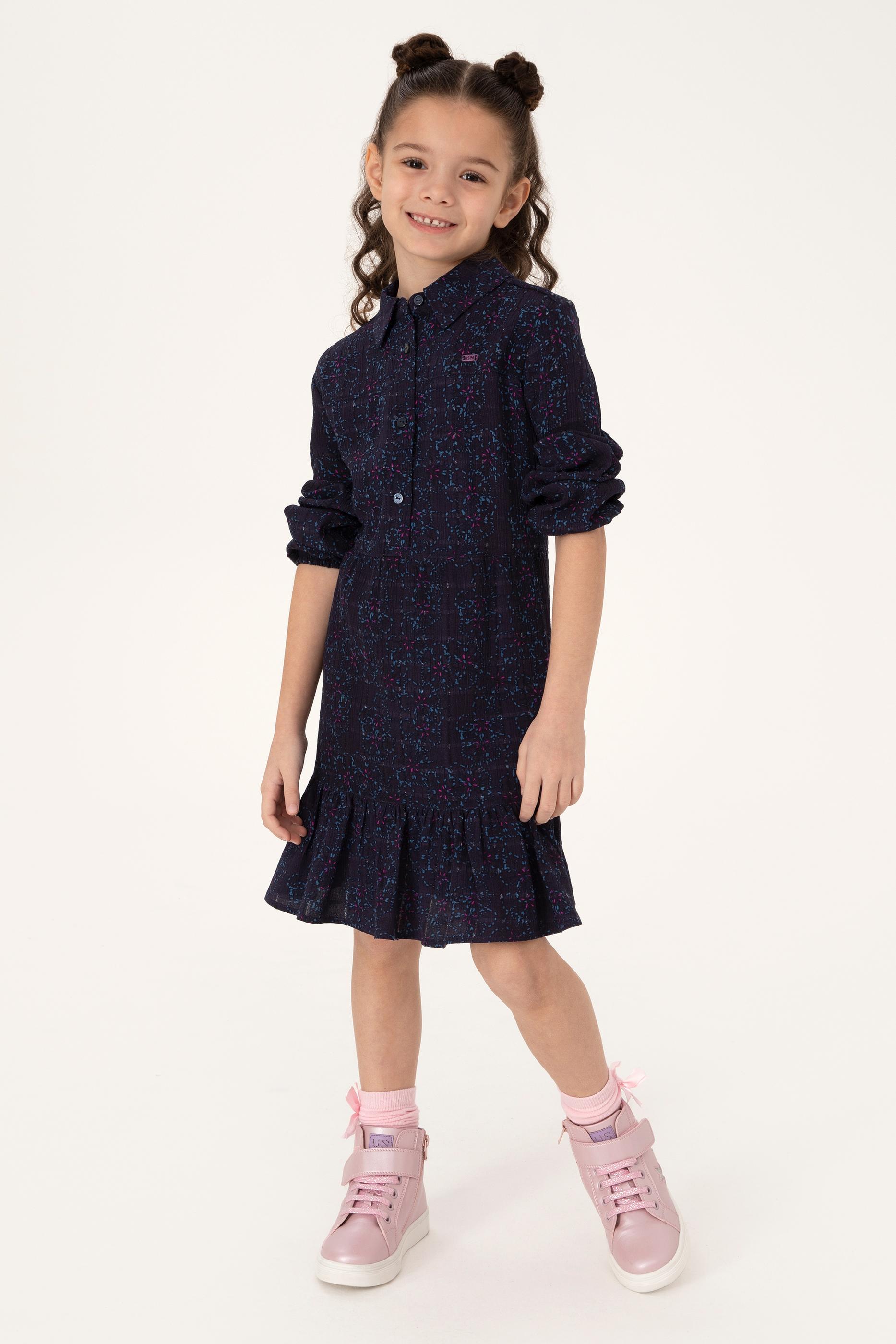 Kız Çocuk Lacivert Dokuma Elbise