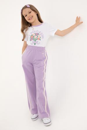 Kız Çocuk Lila Loose Fit Kenar Biyeli Eşofman Altı